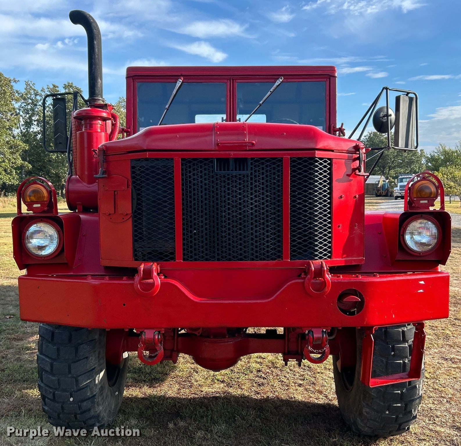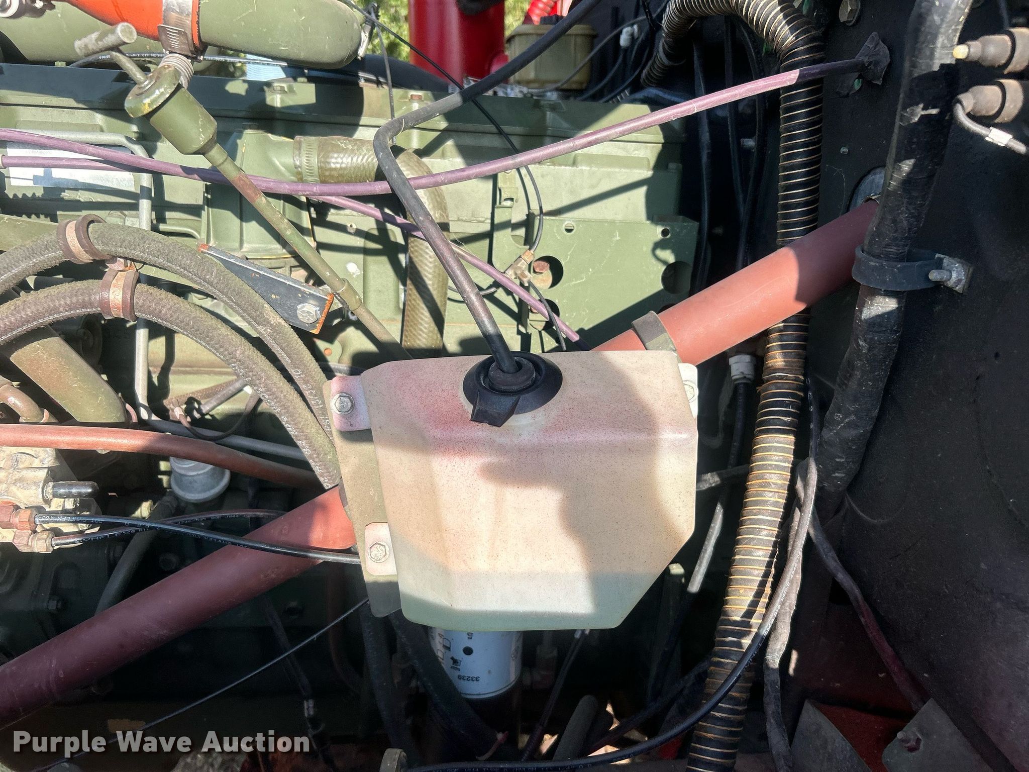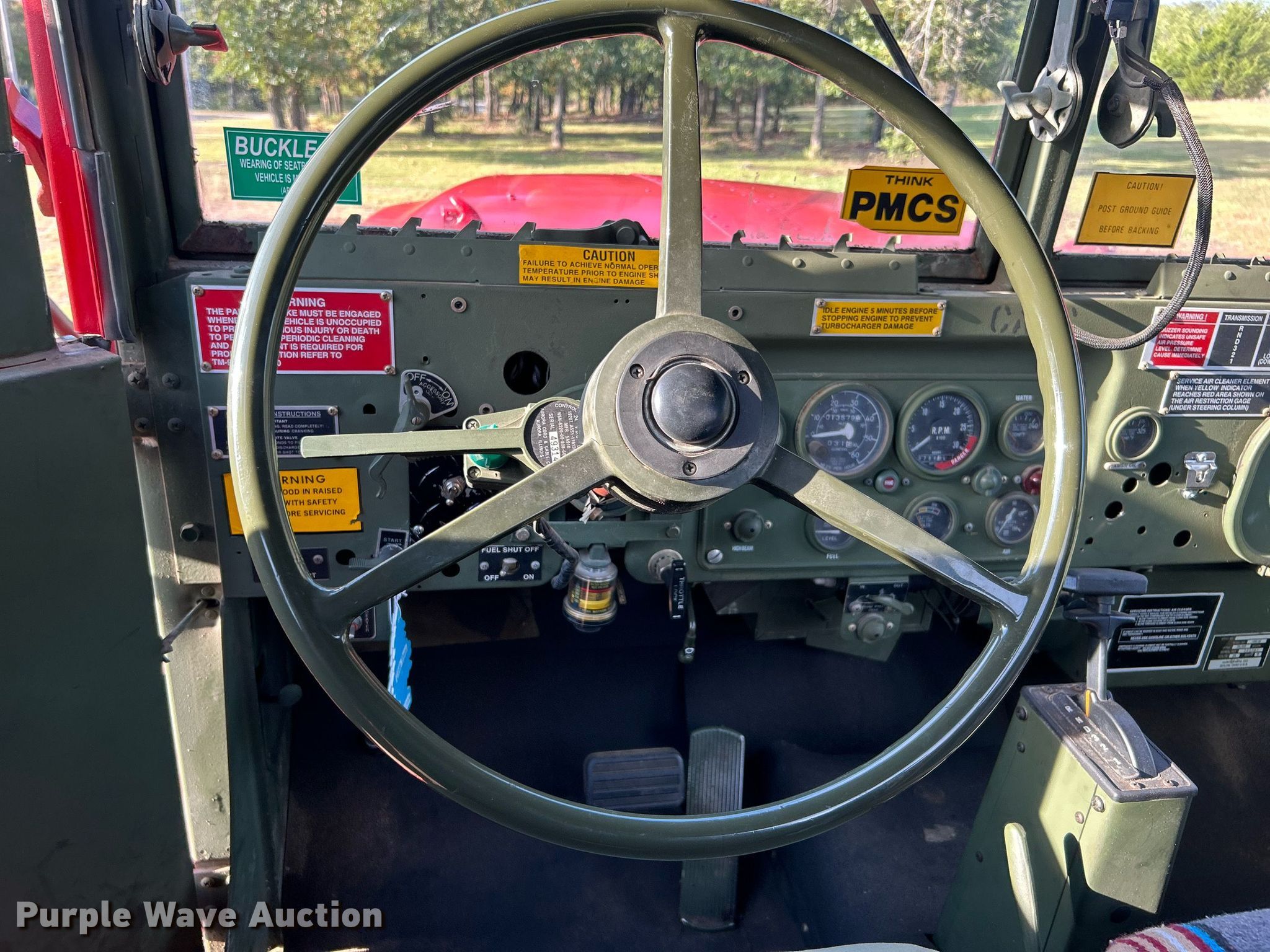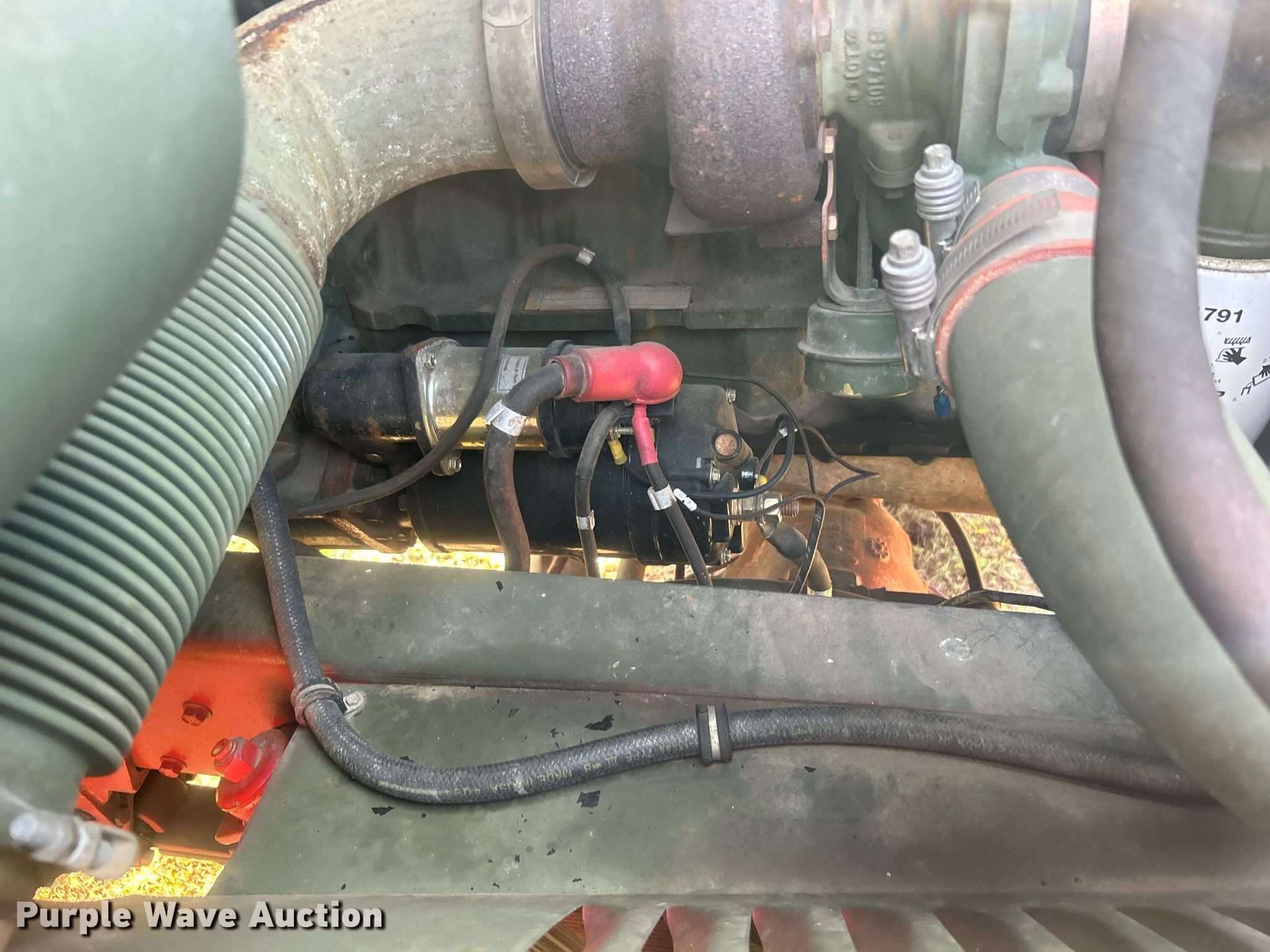 1999 AM General flatbed truck. Miles: 13,580 on odometer, Hours: 764 on meter, VIN: 501202. Engine Caterpillar 3116, Serial: 5RM01233, Displacement: 6.6L, Cylinders: 6, Fuel type: Diesel, kW: 127. Transmission Allison, Automatic. Chassis Six wheel drive, Axles: Tandem, Suspension: Spring, Brakes: Hydraulic. Interior Heat. Features Flatbed 12' 3" L x 95" W. Tires Size: 14.5R20. Oklahoma classic title. Merriman Trucking. Cleveland, OK 74020