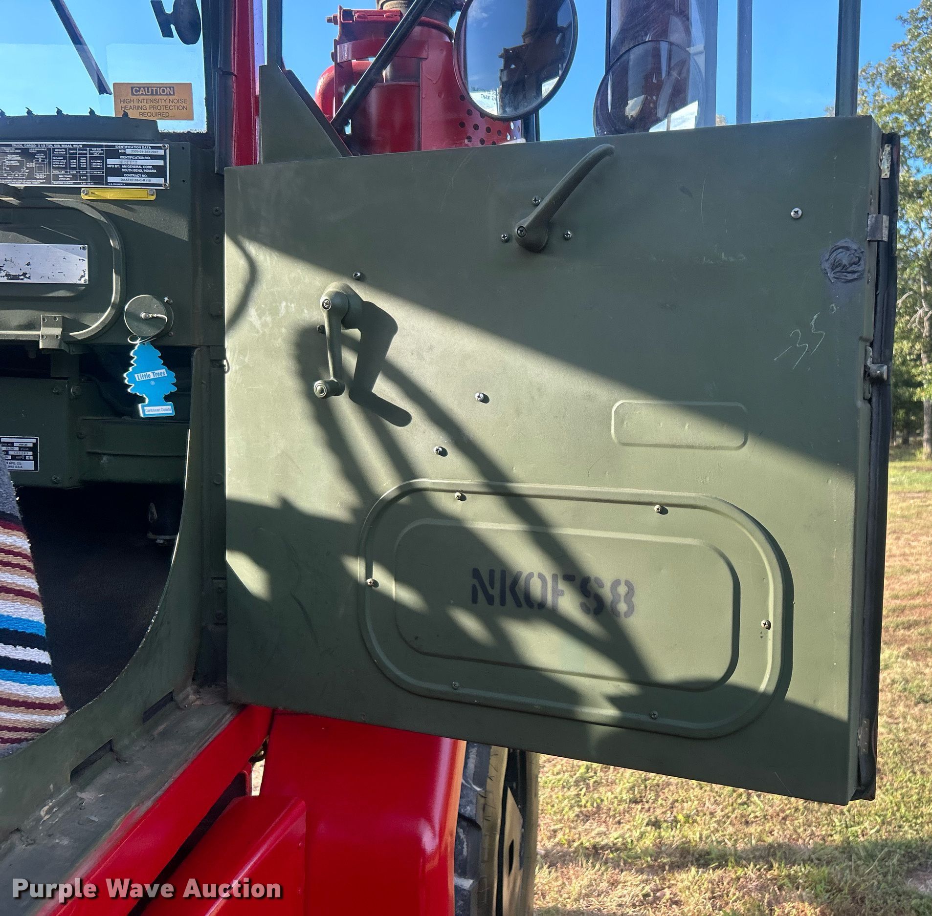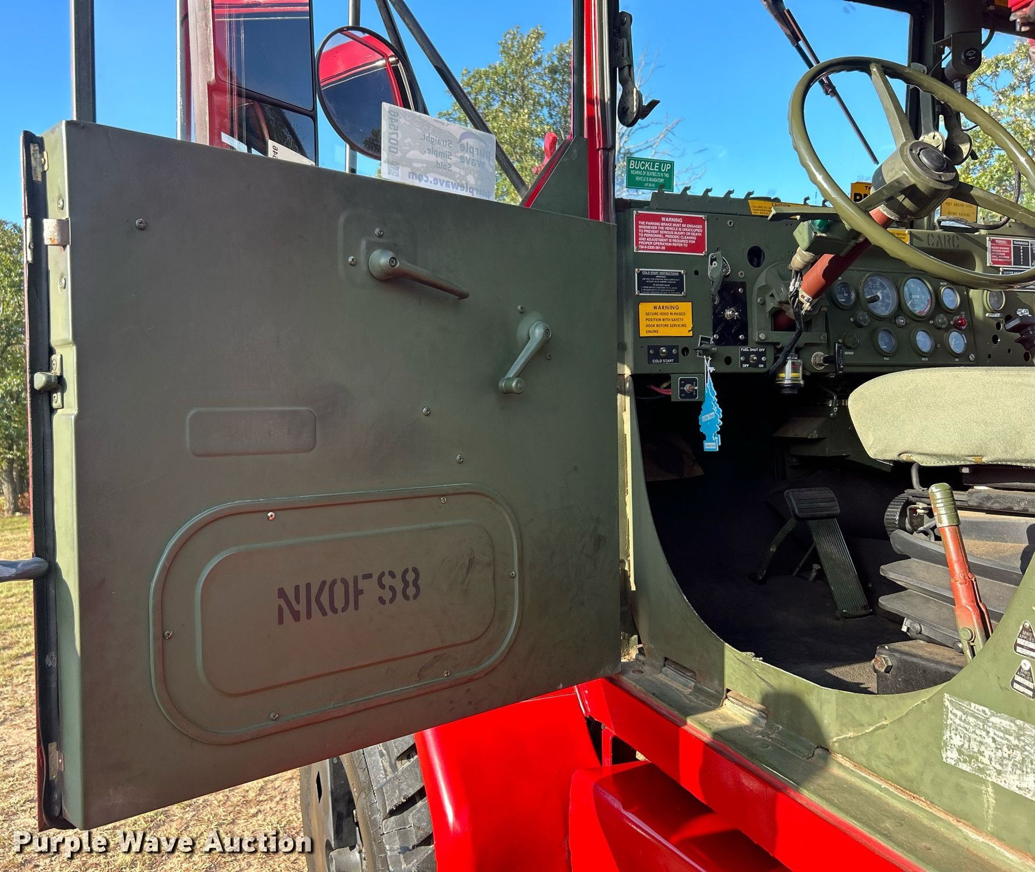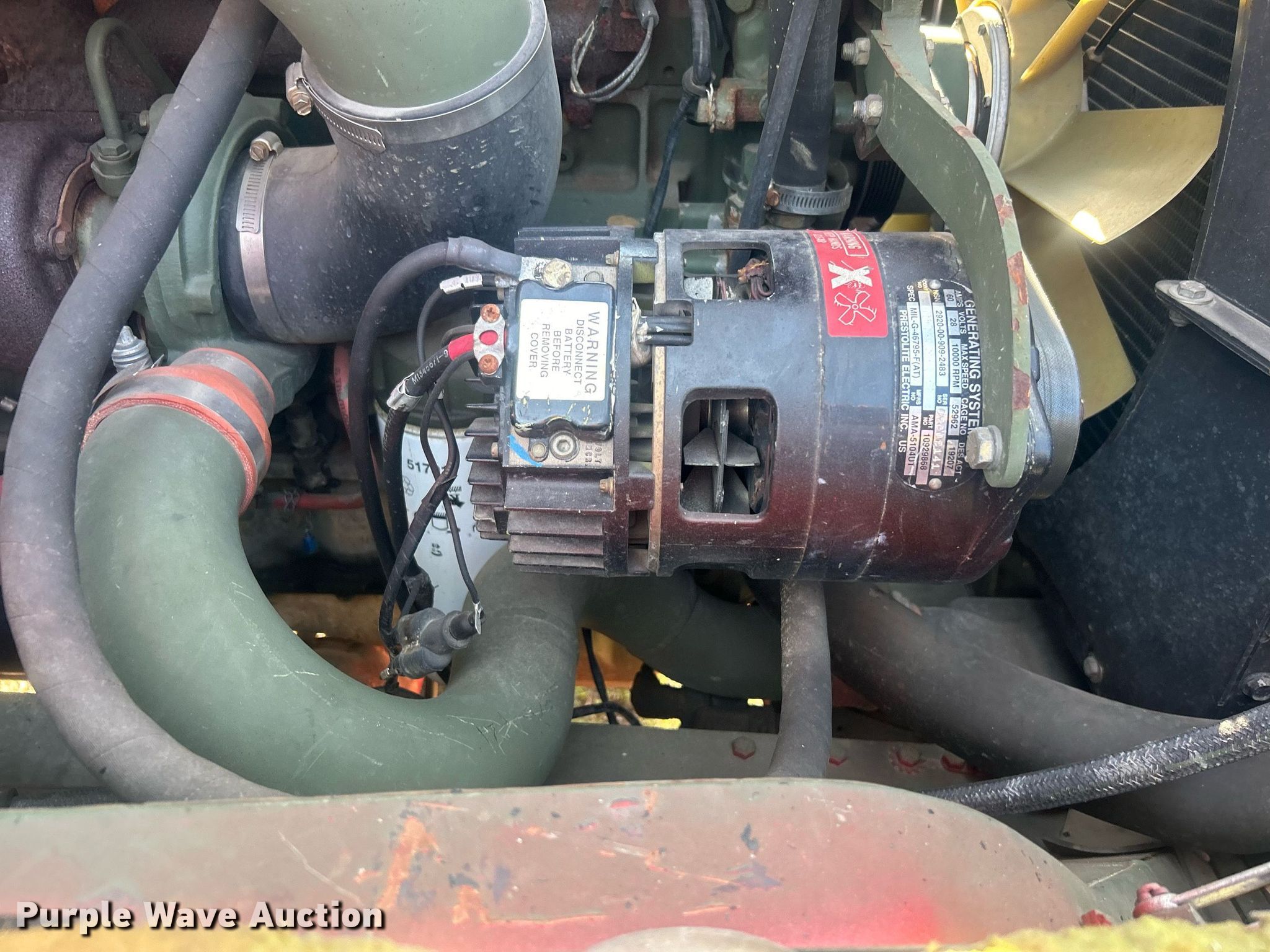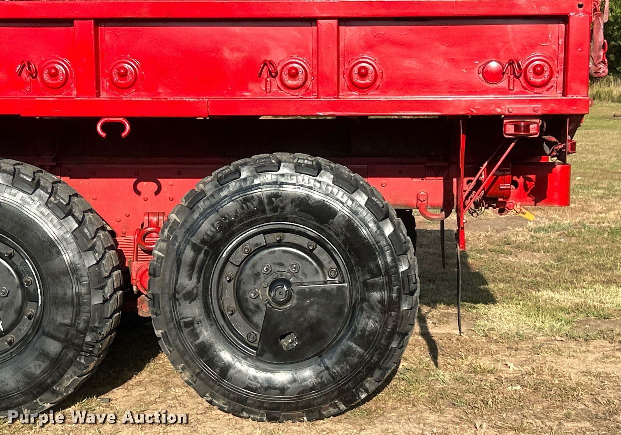 1999 AM General flatbed truck. Miles: 13,580 on odometer, Hours: 764 on meter, VIN: 501202. Engine Caterpillar 3116, Serial: 5RM01233, Displacement: 6.6L, Cylinders: 6, Fuel type: Diesel, kW: 127. Transmission Allison, Automatic. Chassis Six wheel drive, Axles: Tandem, Suspension: Spring, Brakes: Hydraulic. Interior Heat. Features Flatbed 12' 3" L x 95" W. Tires Size: 14.5R20. Oklahoma classic title. Merriman Trucking. Cleveland, OK 74020