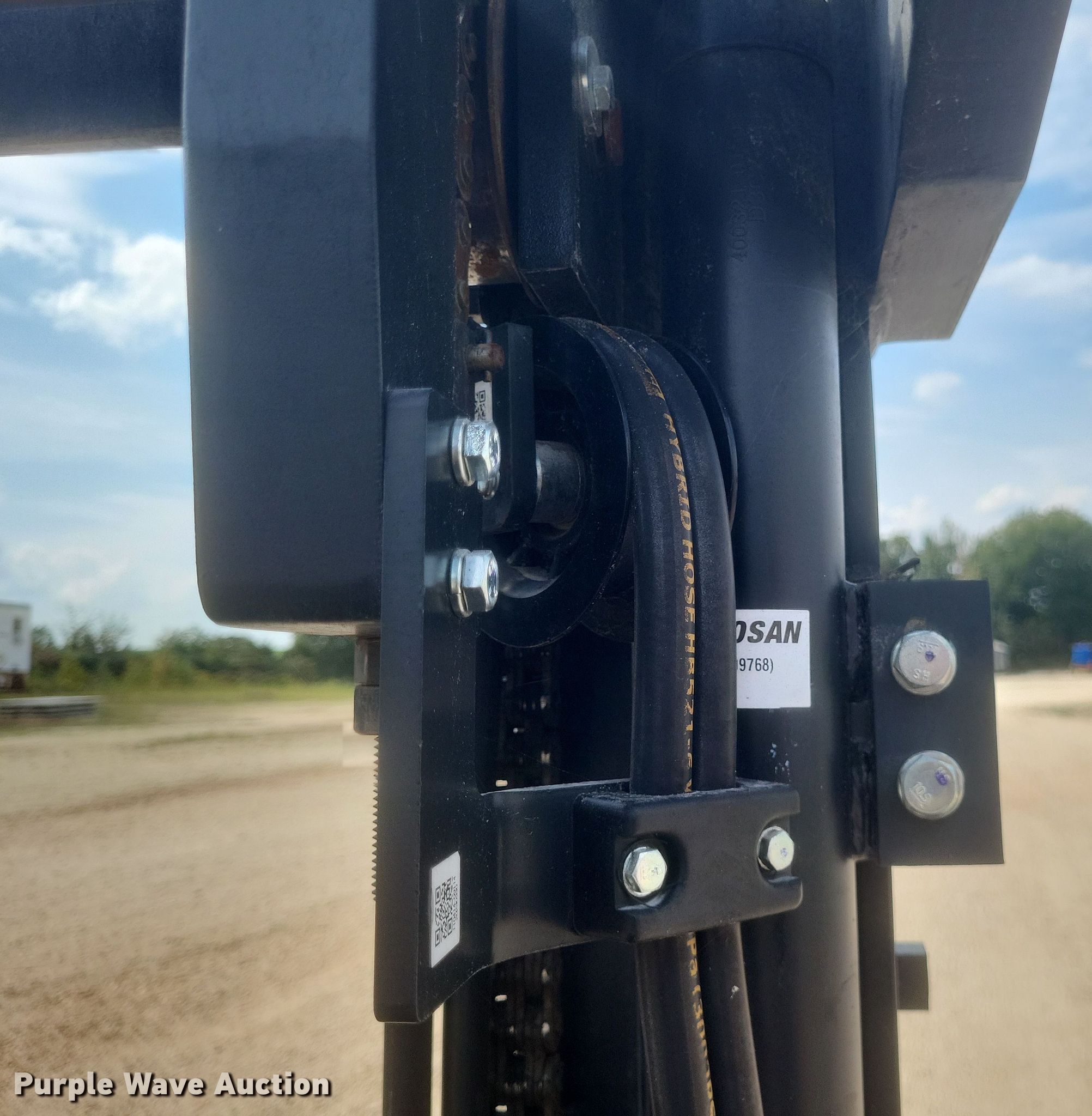 Doosan D25S-9 forklift. Hours: 170 on meter, Serial: FDA2B-5052-01115. Engine Doosan, Cylinders: 4, Fuel type: Diesel. Transmission Powershift. Operators station OROPS, Canopy. Features Maximum lift capacity: 4,600 lbs, Maximum lift height: 189", Mast stages: 3, Side shift, Mast tilt, Fork length: 47". Tires Front: 7.00-15, Rear: 6.50-10 5.00, Solid. Notes Maintenance records available upon request to [email protected]. Tosh Farms. Henry, TN 38231