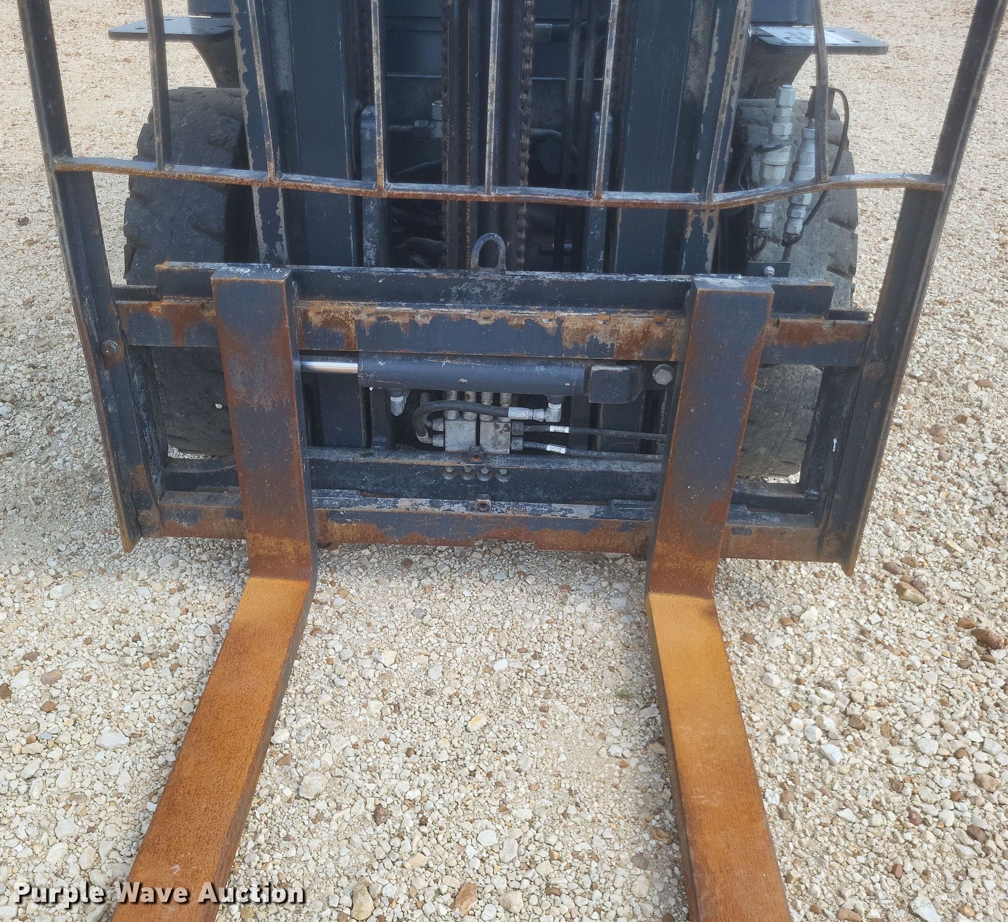 Doosan D25S-9 forklift. Hours: 4,490 on meter, Serial: FDA2B-5052-01077. Engine Doosan, Displacement: 2.4L, Cylinders: 4, Fuel type: Diesel. Transmission Powershift. Operators station OROPS, Canopy. Features Maximum lift capacity: 4,600 lbs, Maximum lift height: 189", Mast stages: 3, Side shift, Mast tilt, Fork length: 47". Tires Front: 7.00-15 5.50, Rear: 6.50-10 5.00F, Solid. Notes Maintenance records available upon request to [email protected]. Tosh Farms. Henry, TN 38231