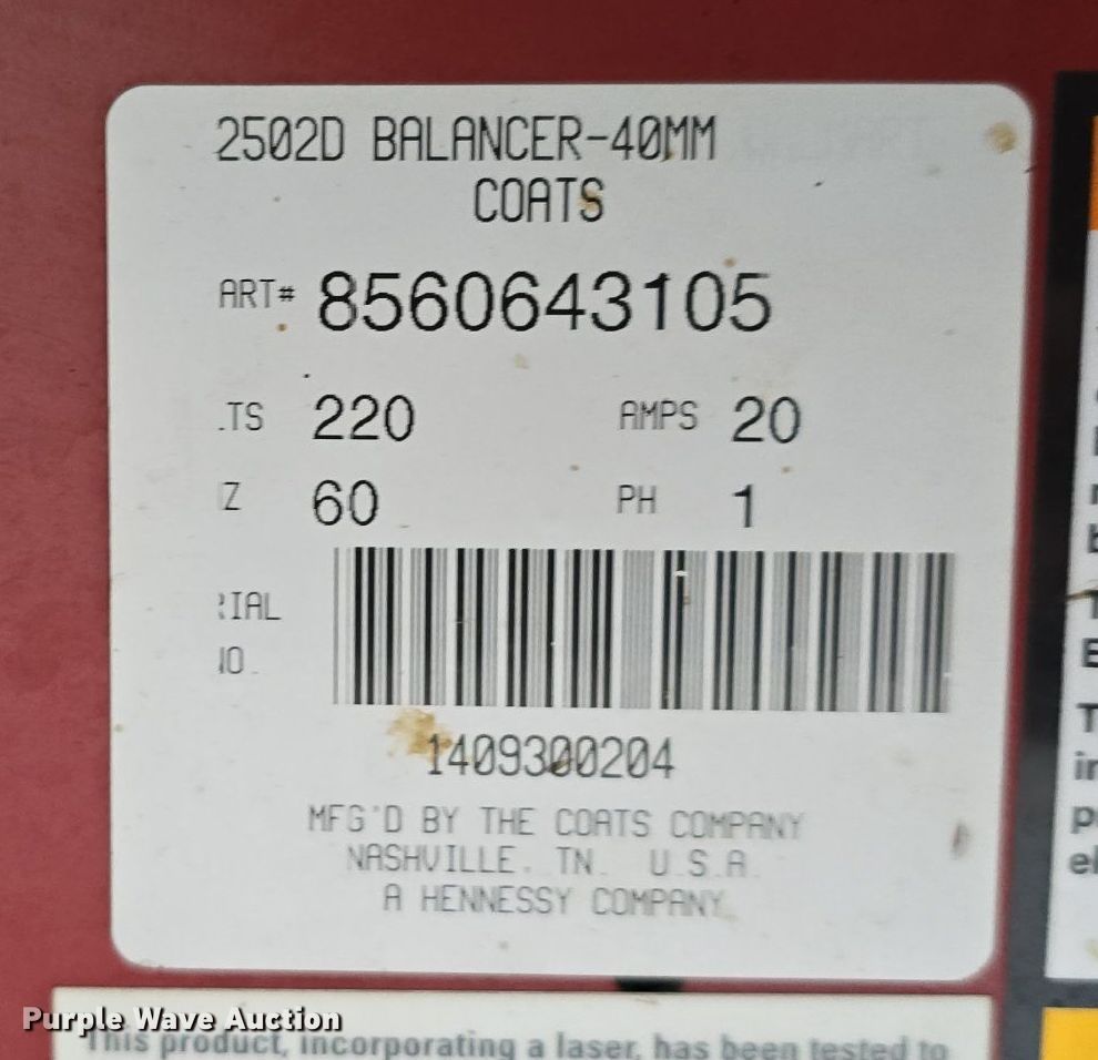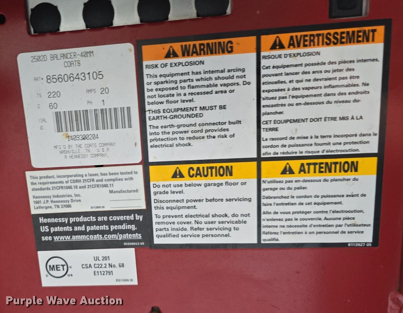 Purple Wave is selling a used Tools in Nebraska. This item is a Coats 1250 Direct Drive tire balancer with the following: Serial: 1409399204