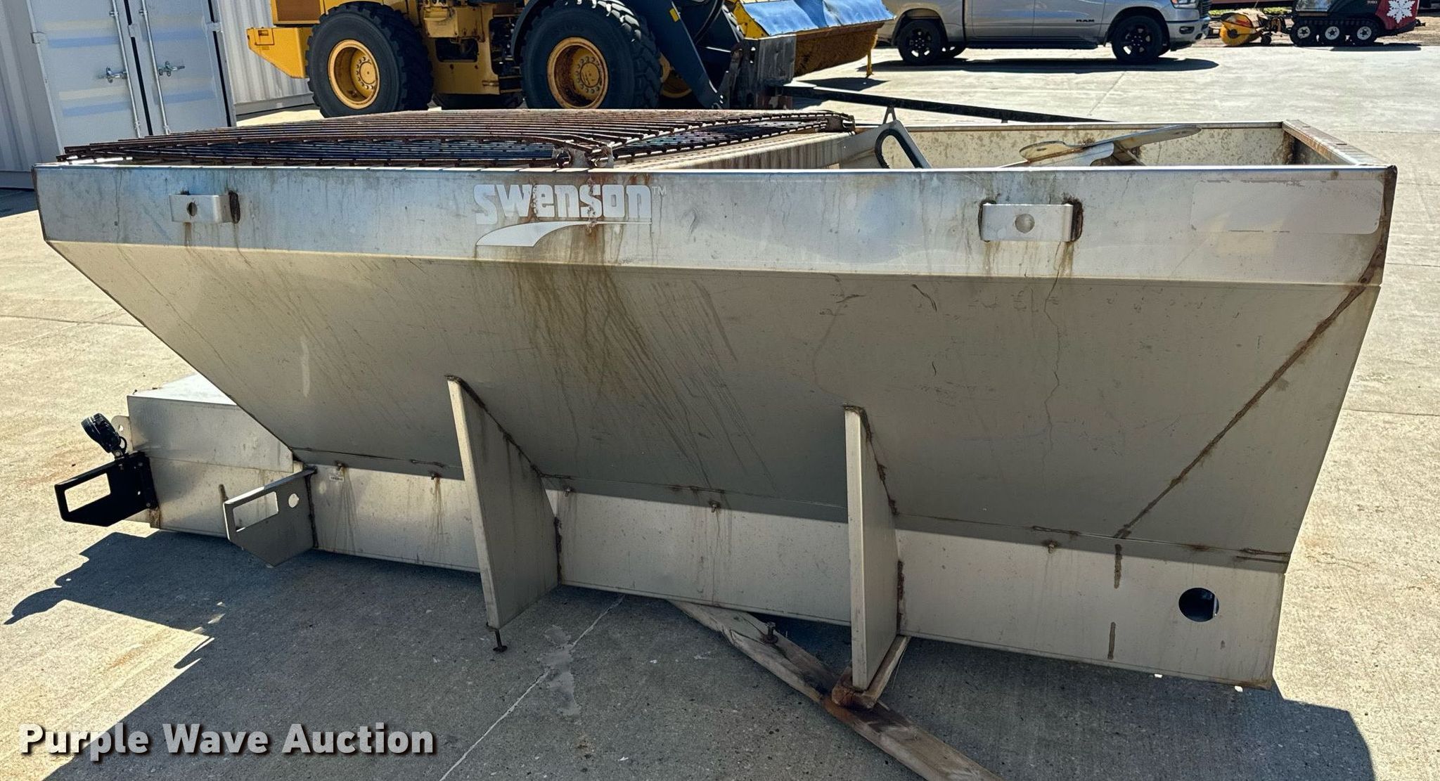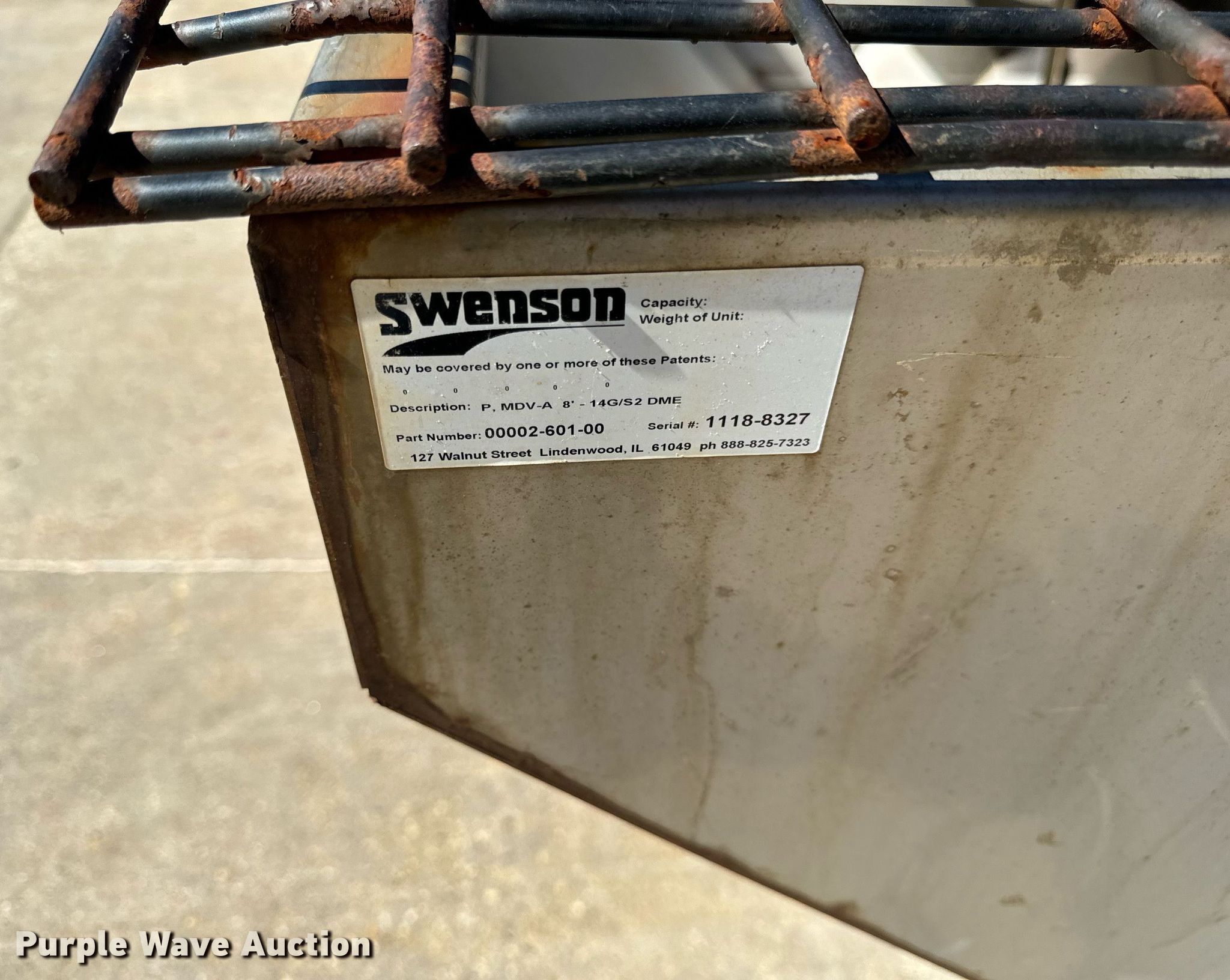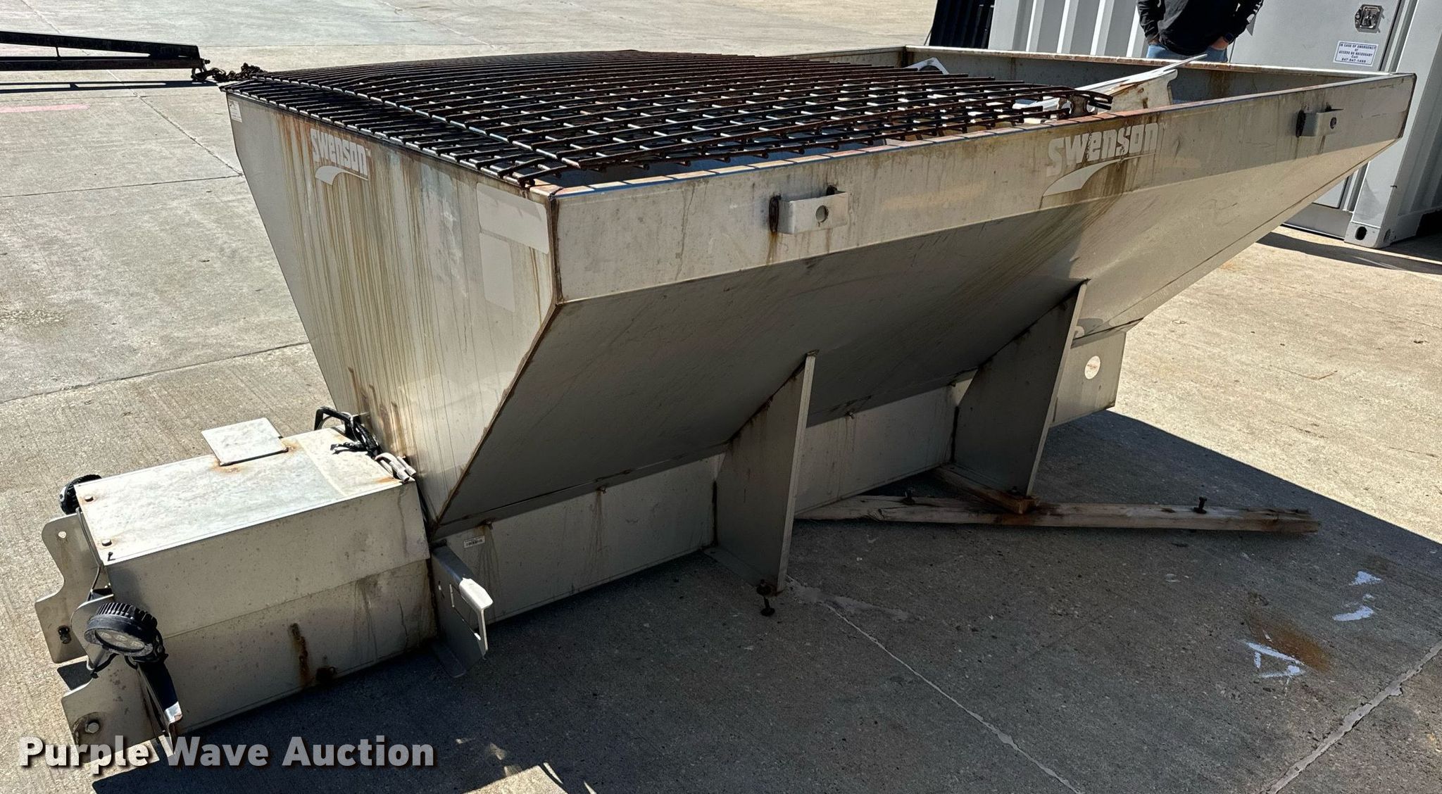 Purple Wave is selling a used Truck Part and Attach. in Illinois. This item is a Swenson spreader with the following: Serial: 1118-8327, Dimensions: 96" L x 70" W x 47" H, Body: Stainless steel