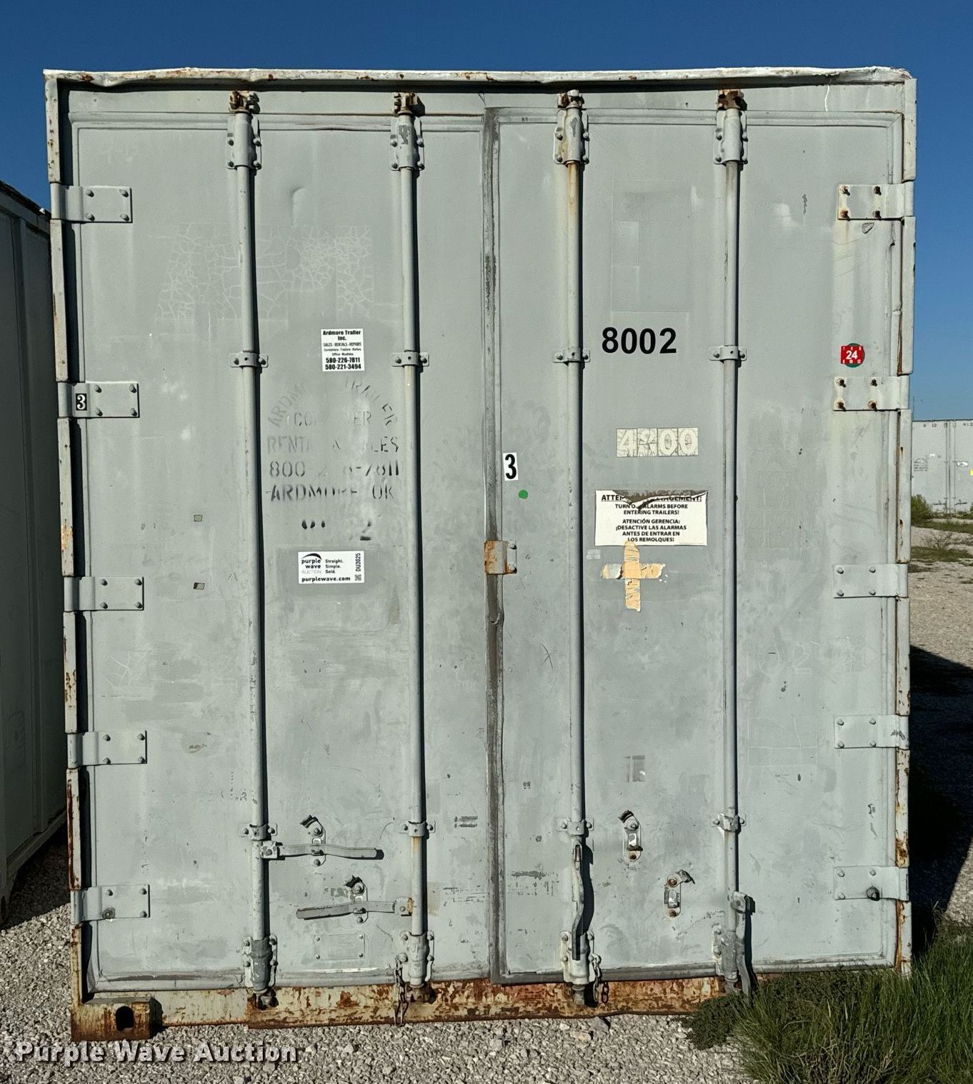 Shipping container has sold in Ardmore, Oklahoma for $1595. Item DU3025 sold on October 30th, 2024.