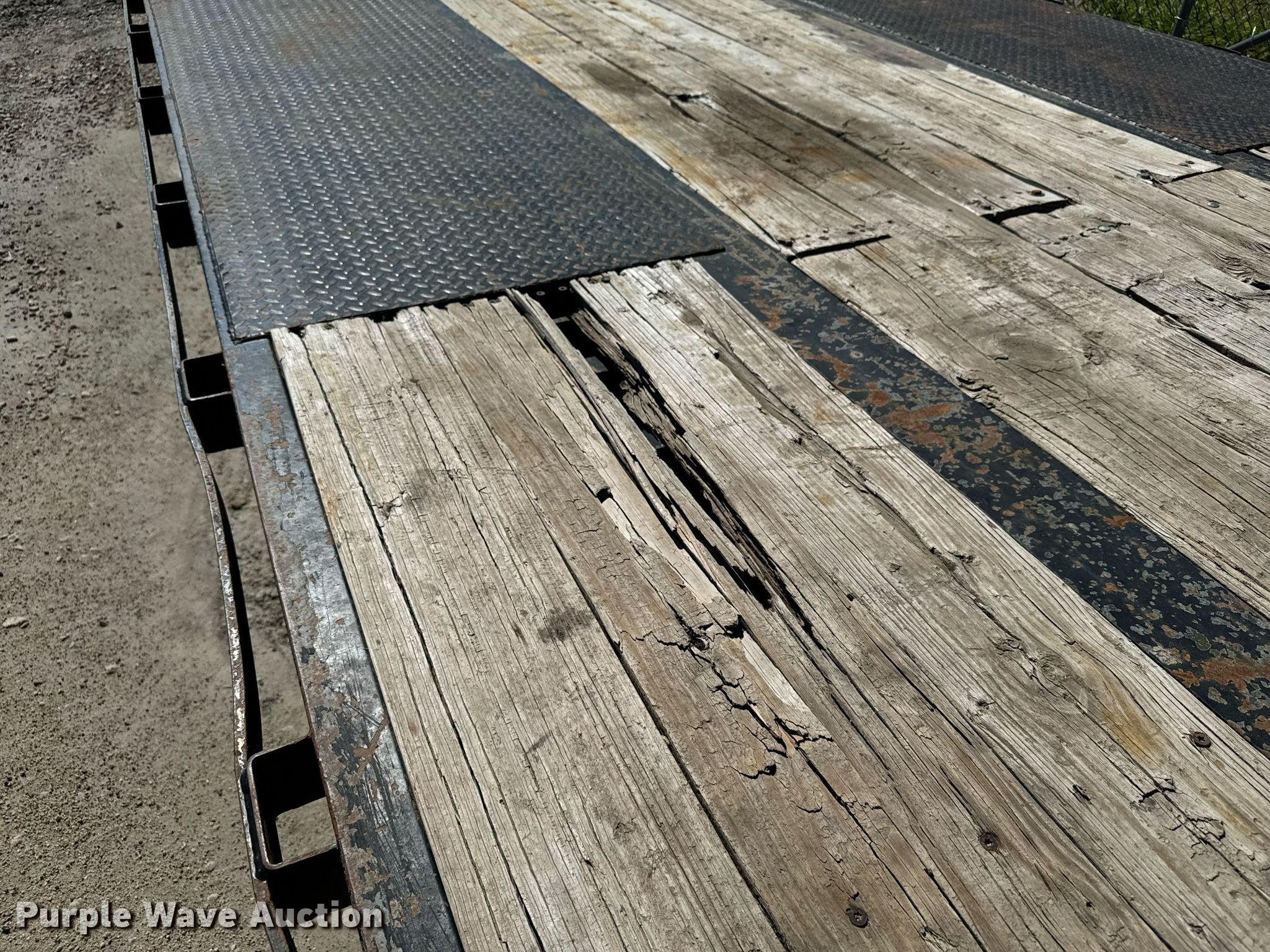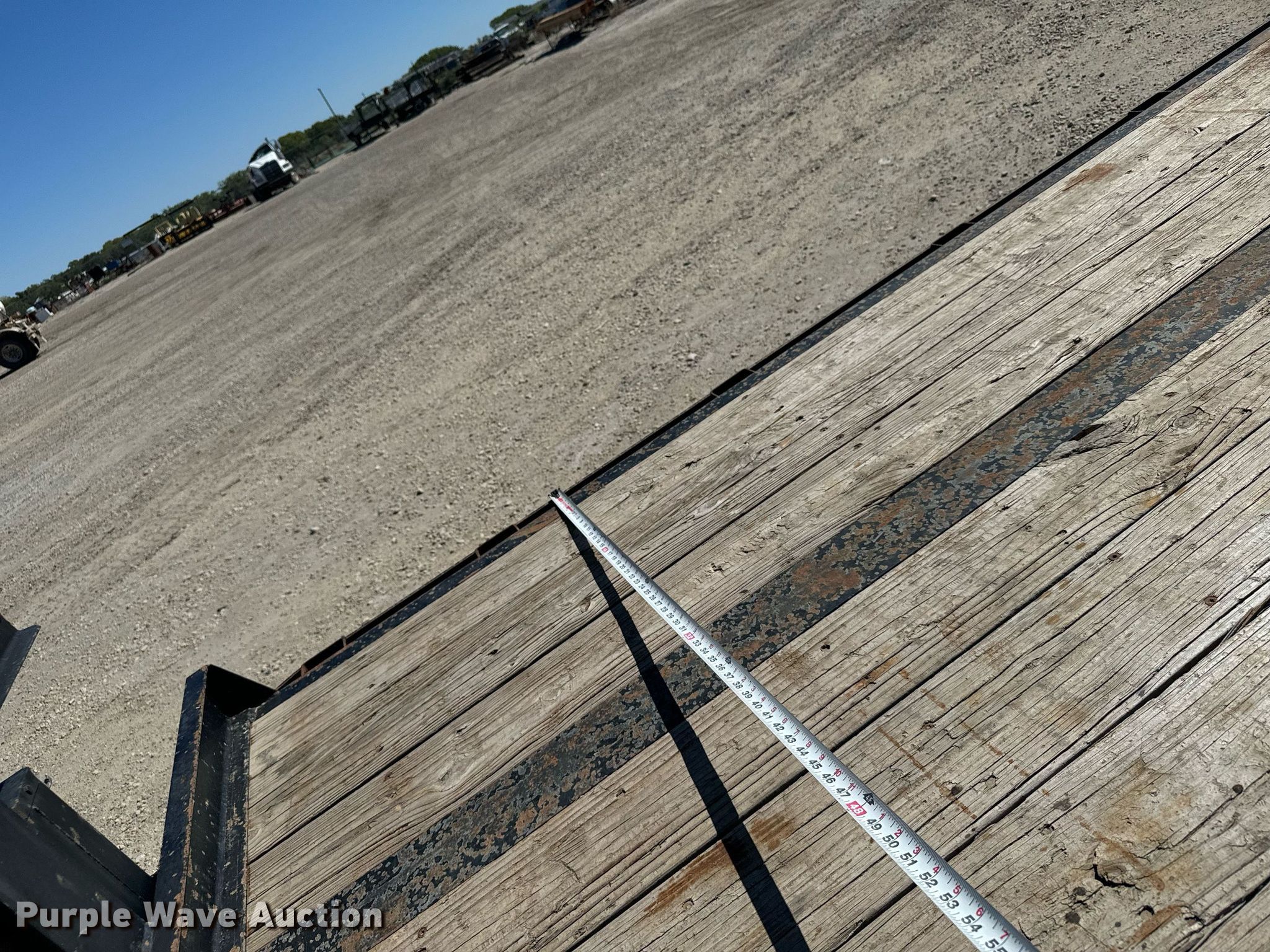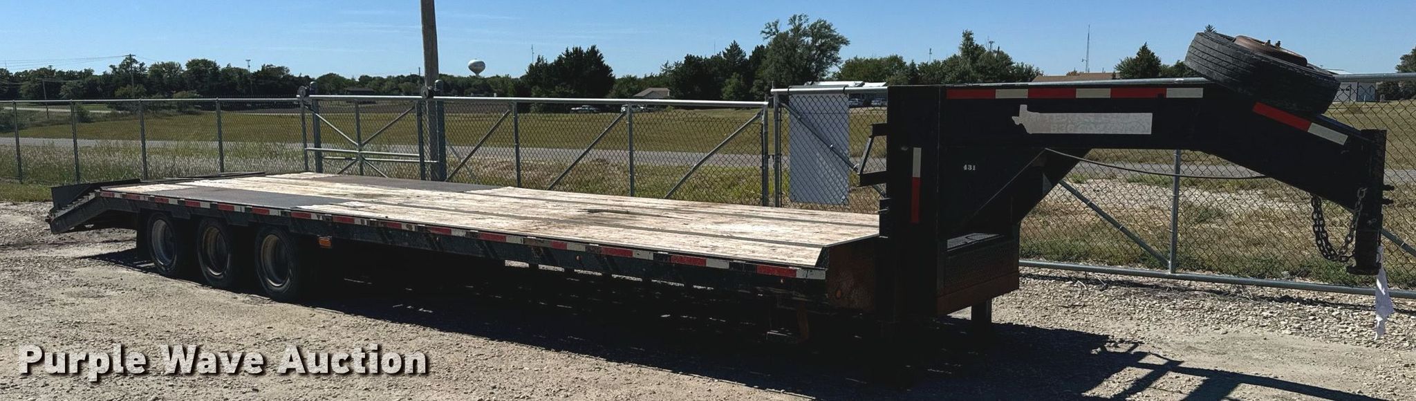 2014 Texas pride equipment trailer. VIN: 1B9R3NGT9EB624202. Dimensions Overall: 43' L x 102" W, Deck: 30' L x 97" W, Tail length: 5', Ramps: Manual Length: 48". Features Deck type: Wood. Chassis Hitch: Gooseneck, Landing gear: Dual, Suspension: Spring, Brakes: Hydraulic, Axles: Triple, GVWR: 45,000 lbs, GAWR: 15,000 lbs. Tires Steel wheels, Size: 215/75R17.5. Kansas title. Title distribution may be delayed up to 14 days from verification of funds. Hill City, KS 67642