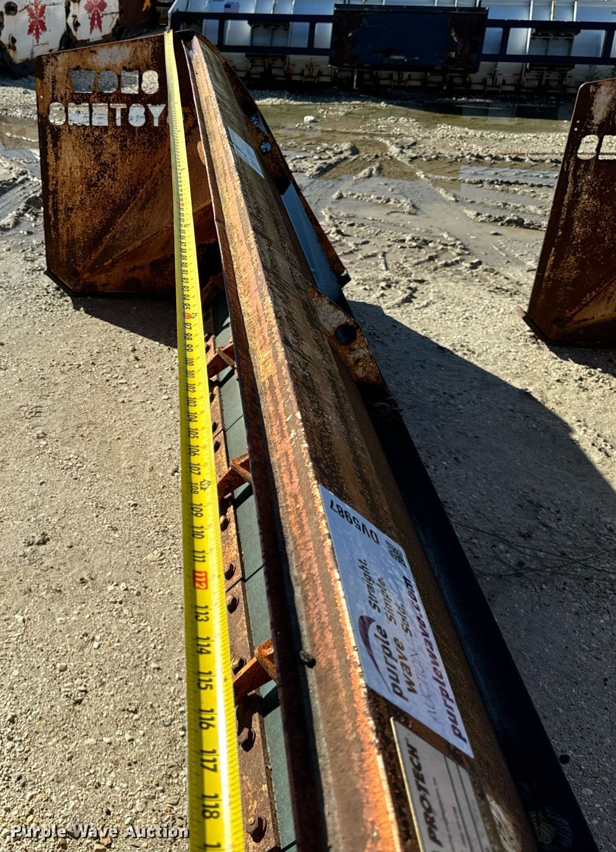 ProTech IS10S skid steer snow pusher. Serial: 47444, Unit #: 15333, Width: 120". Snow Management Equipment Auction. Hainesville, IL 60090