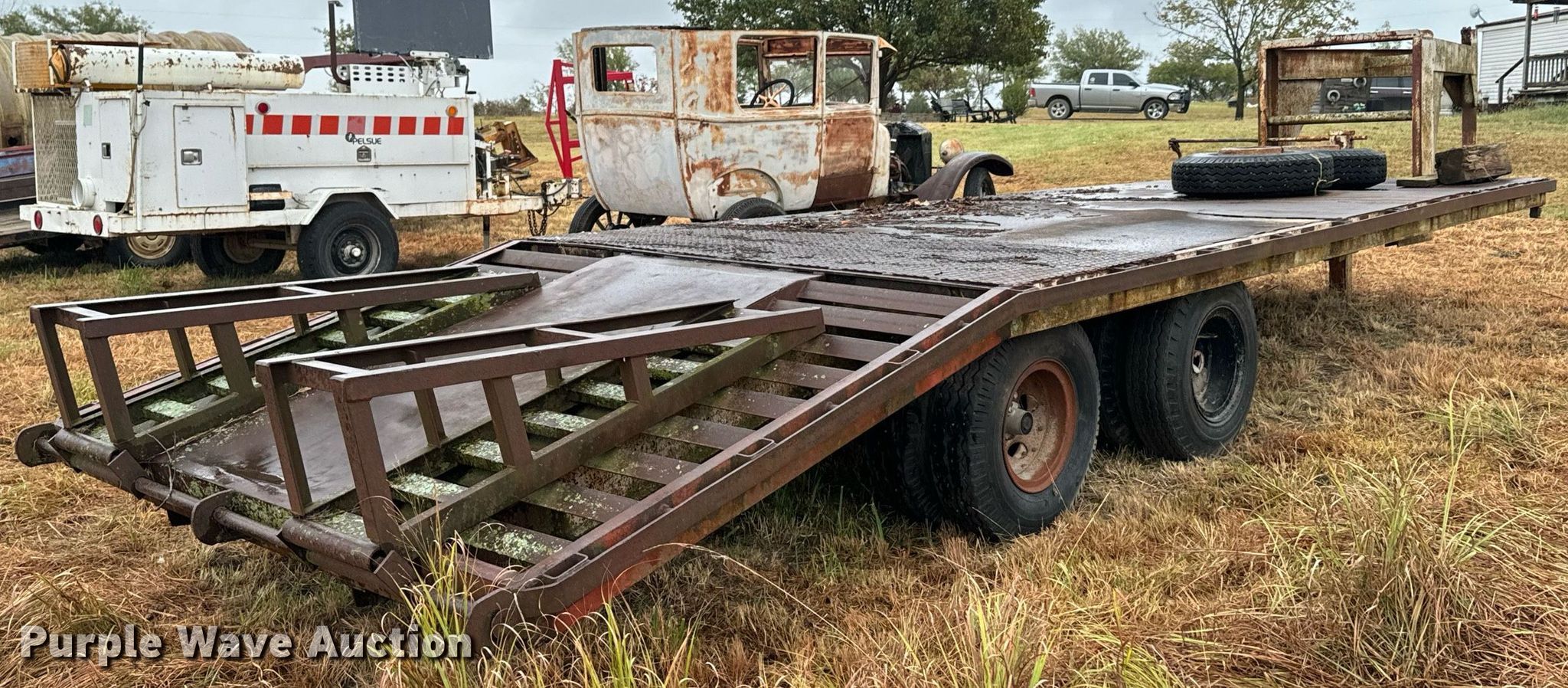 Purple Wave is selling a used Equip. Trailer in Oklahoma. This item is a Shop built equipment trailer with the following: Overall: 25' L x 96" W, Ramps: Manual, Length: 5'