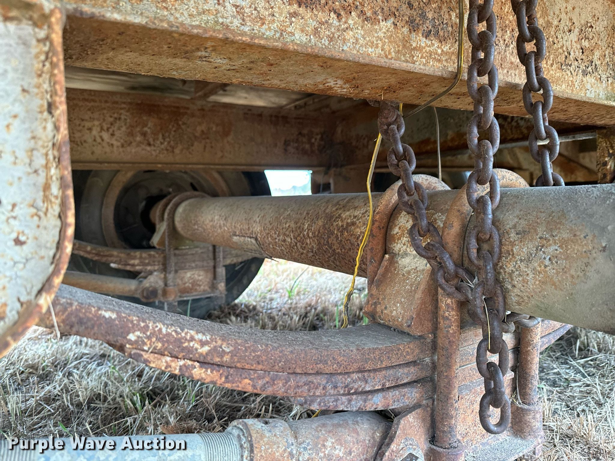 Shop built equipment trailer. Dimensions. Overall: 25' L x 96" W, Ramps: Manual Length: 5'. Features Deck type: Steel. Chassis Hitch: Gooseneck, Landing gear: Single, Suspension: Spring, Axles: Tandem. Tires Steel wheels, Size: 8.25-15. Notes Tires removed but included. Transfer of ownership documentation will be a bill of sale. Nowata, OK 74048