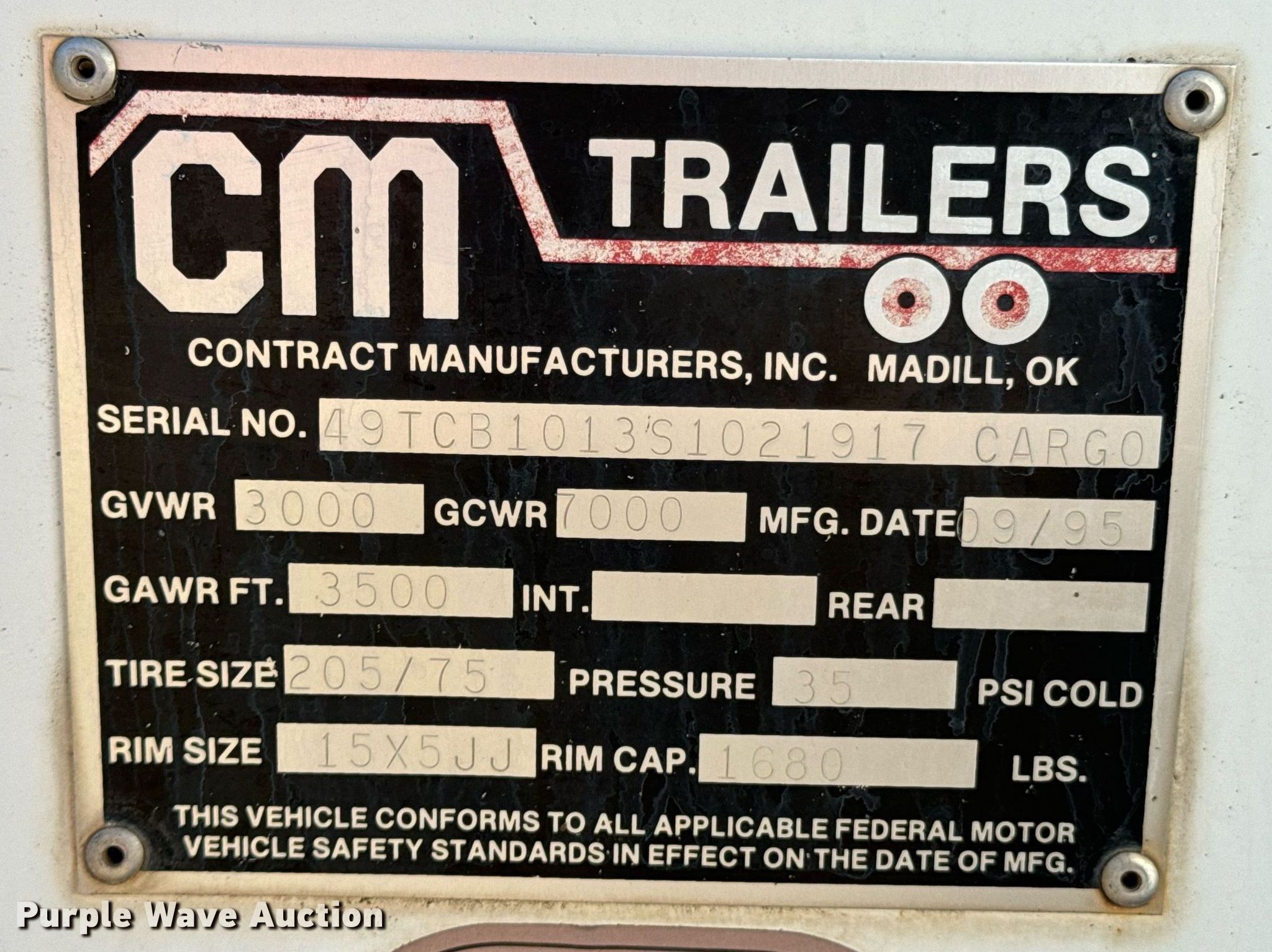 Purple Wave is selling a used Enclosed Cargo Trailer in Oklahoma. This item is a 1995 CM Trailers enclosed cargo trailer with the following: VIN: 49TCB1013S1021917