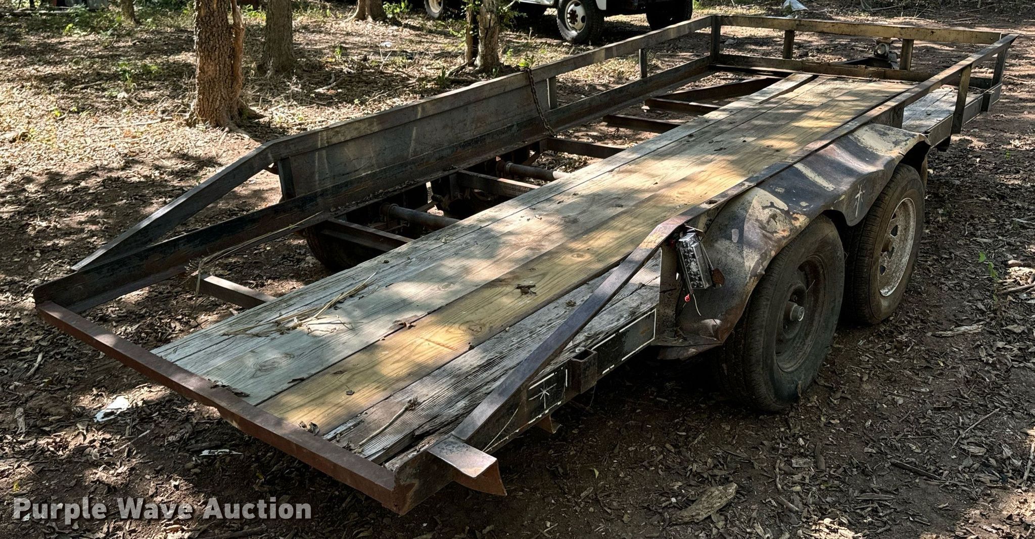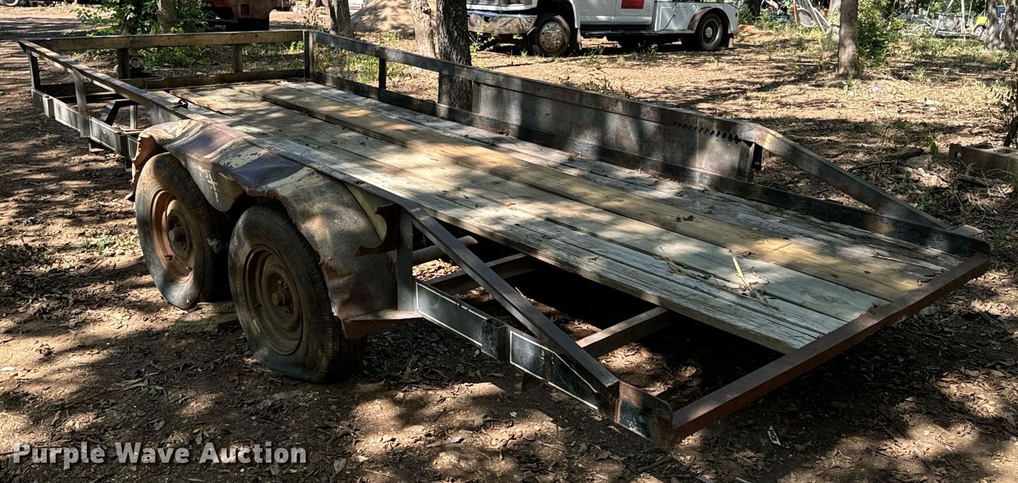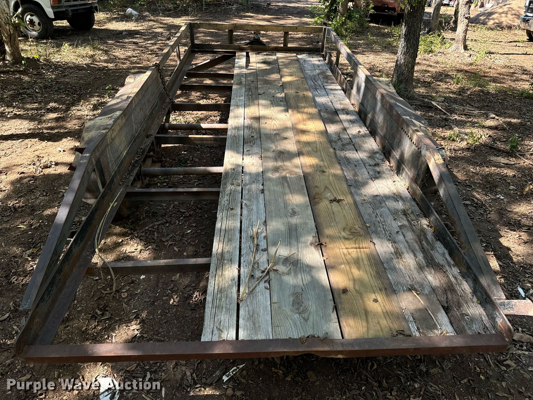 Shop Built utility trailer. VIN: CX3375192. Dimensions Overall: 20' L x 96" W, Deck: 16' L x 76" W. Features Deck type: Wood. Chassis Ball hitch: 2", Landing gear: Single, Suspension: Spring, Brakes: Electric, Axles: Tandem. Tires Steel wheels, Size: ST225/75R15. Notes Deck boards missing, Non-operational brakes. Transfer of ownership documentation will be a bill of sale. Fairfax, OK 74637