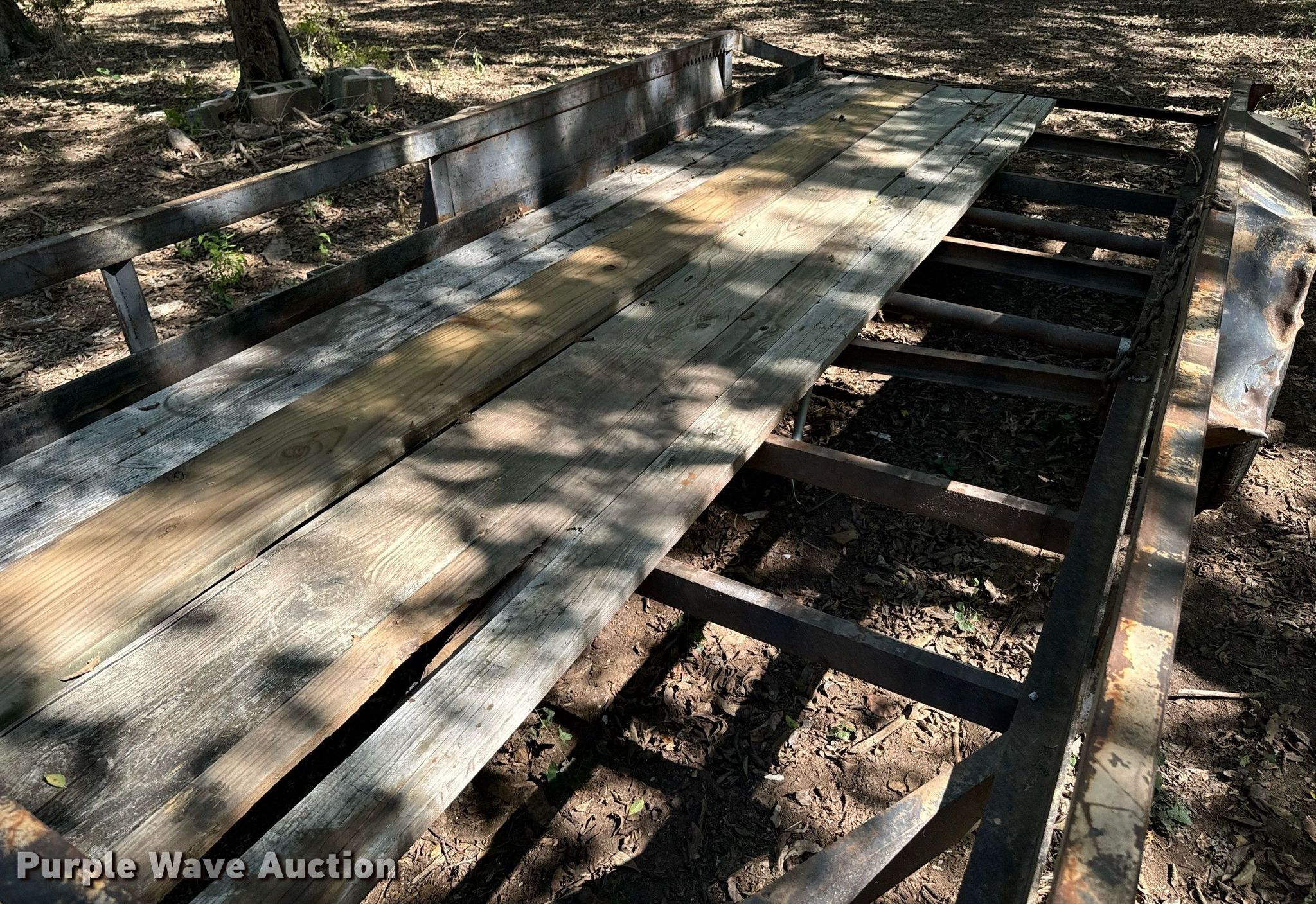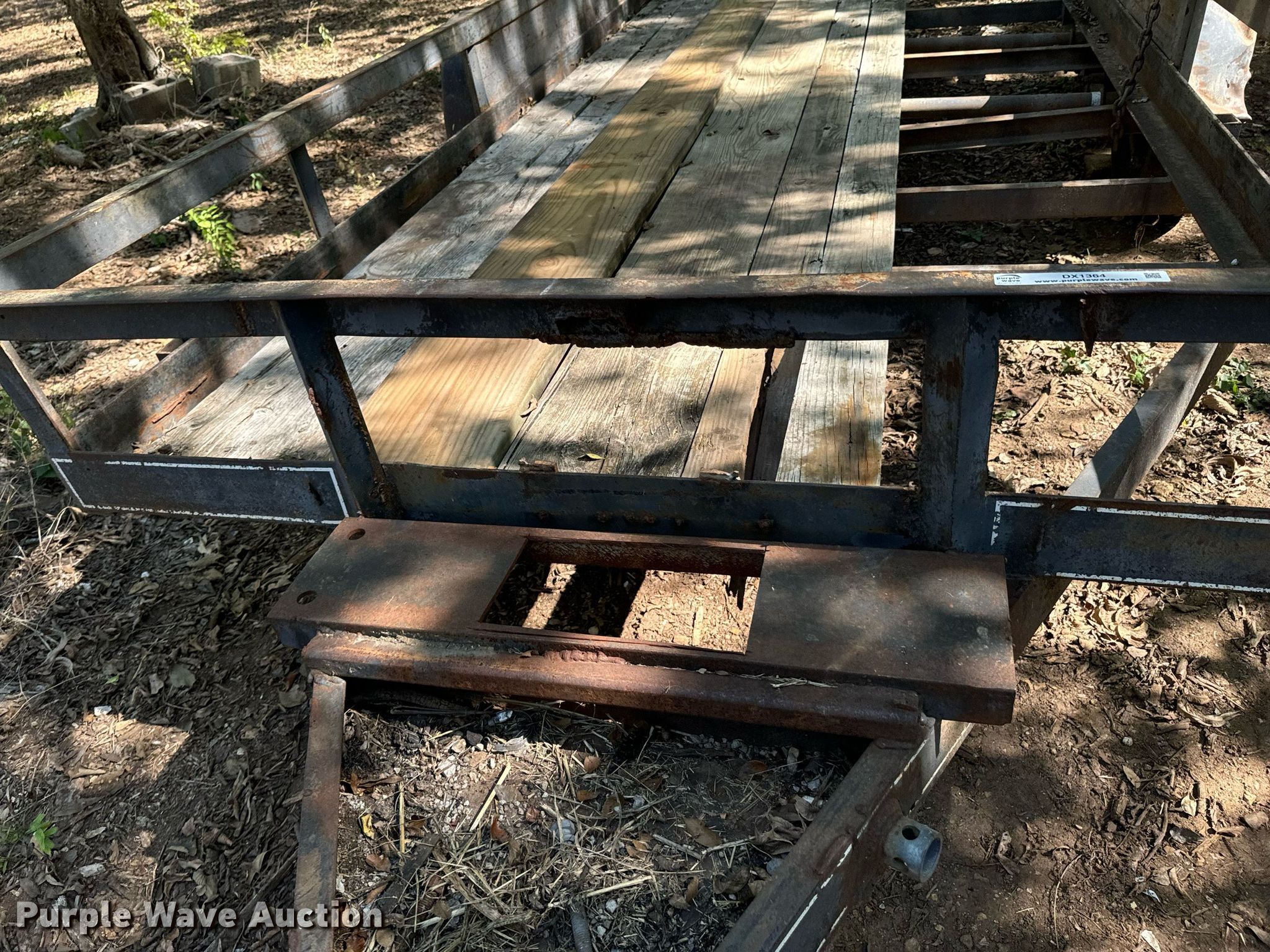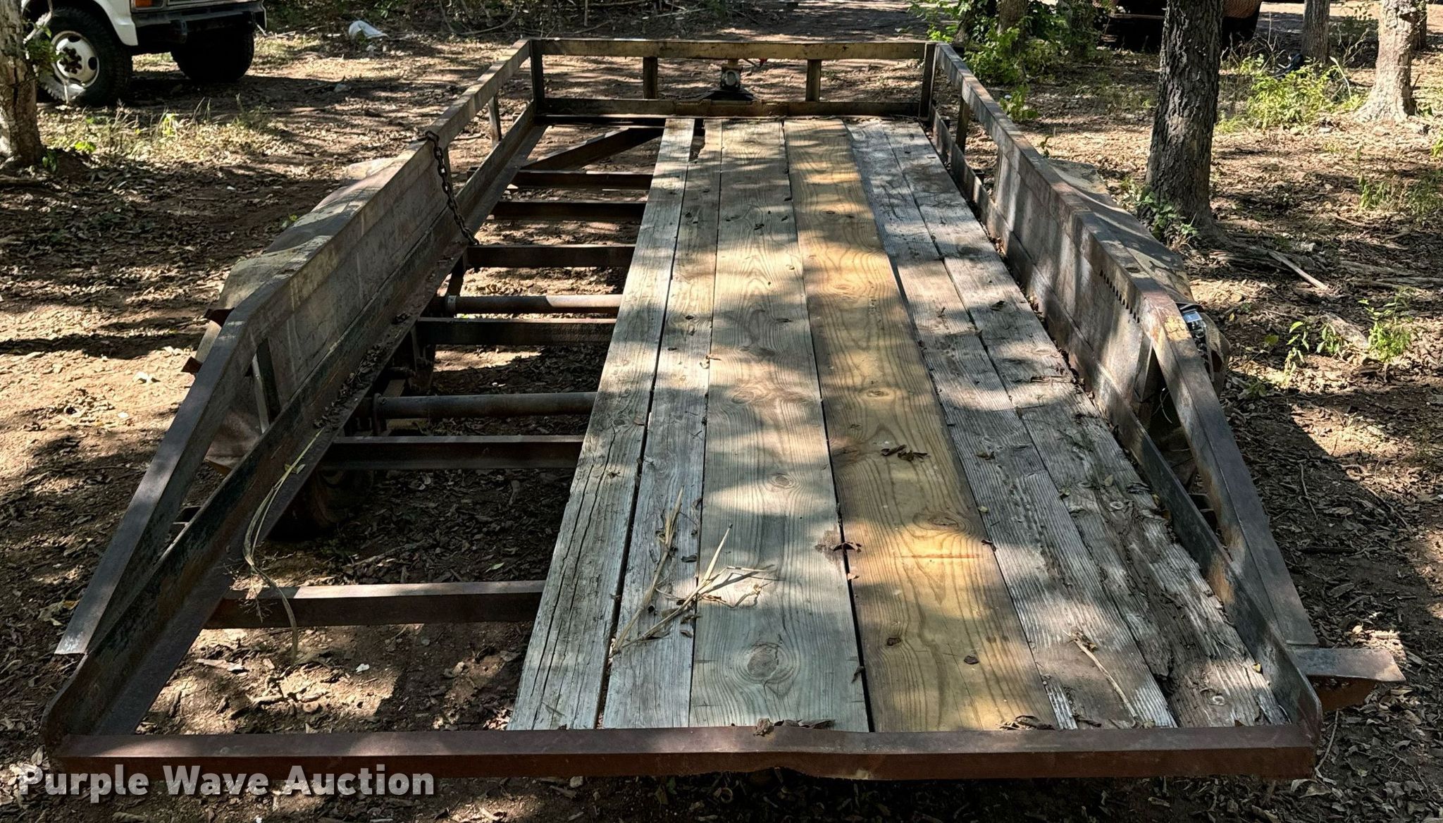 Shop Built utility trailer. VIN: CX3375192. Dimensions Overall: 20' L x 96" W, Deck: 16' L x 76" W. Features Deck type: Wood. Chassis Ball hitch: 2", Landing gear: Single, Suspension: Spring, Brakes: Electric, Axles: Tandem. Tires Steel wheels, Size: ST225/75R15. Notes Deck boards missing, Non-operational brakes. Transfer of ownership documentation will be a bill of sale. Fairfax, OK 74637