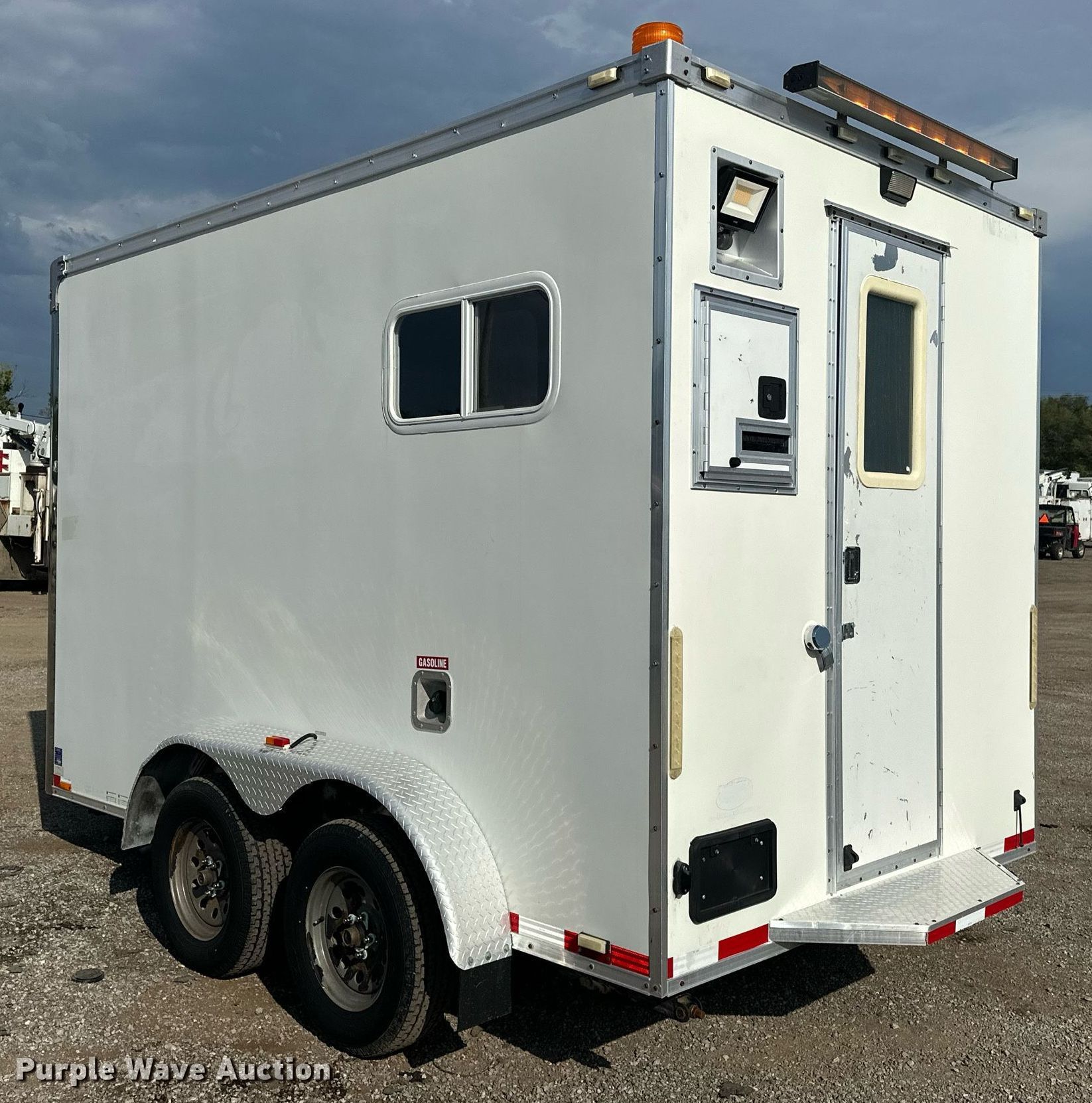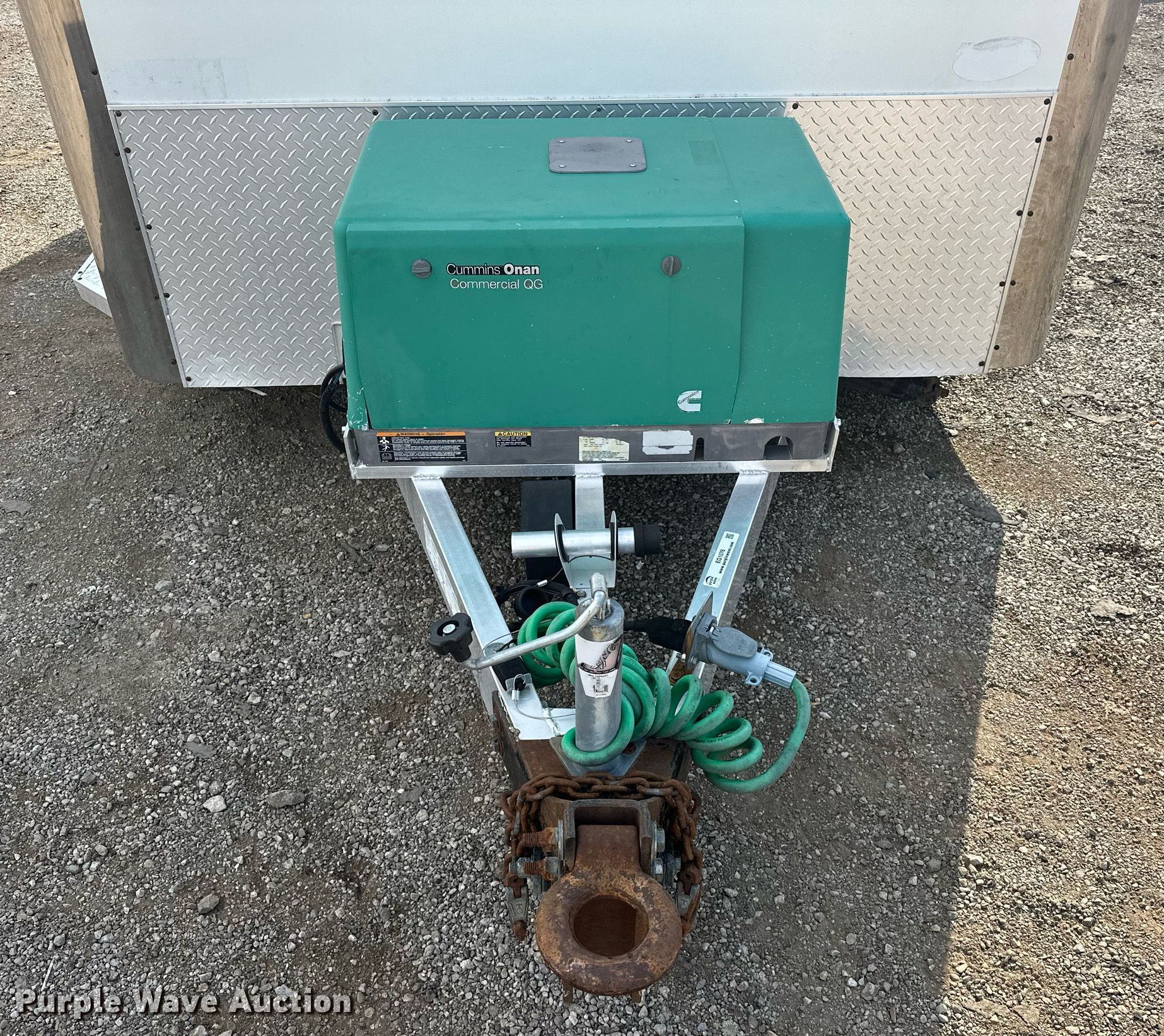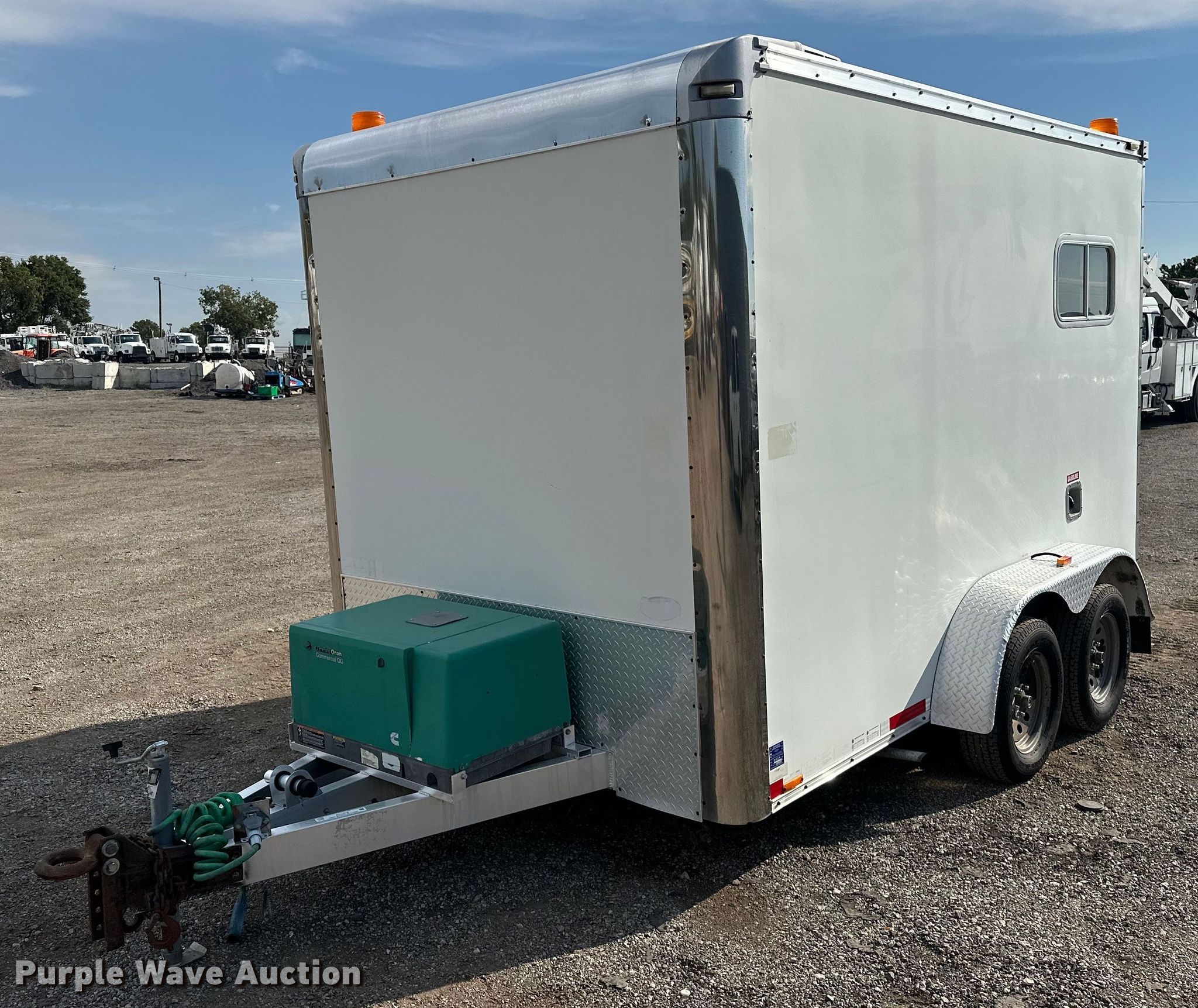 2010 Forest River fiber optic trailer. VIN: 5NHUJE228AN071216. Dimensions Overall: 17' L x 101" W, Body: 12' L x 84" W. Features Deck type: Wood, Cummins Onan Commercial QG generator Hours: 1,053 on meter, Fuel: Gas, Phase: Single, Amps: 23, Volts: 120/240, Hz: 60. Chassis Hitch: Pintle, Landing gear: Single, Suspension: Torsion, Brakes: Electric, Axles: Tandem, GVWR: 7,000 lbs, GAWR: 3,500 lbs. Tires Steel wheels, Size: ST205/75R15. Notes Dead battery, Unknown operating condition of climate controls. Oklahoma title. Collinsville, OK 74021