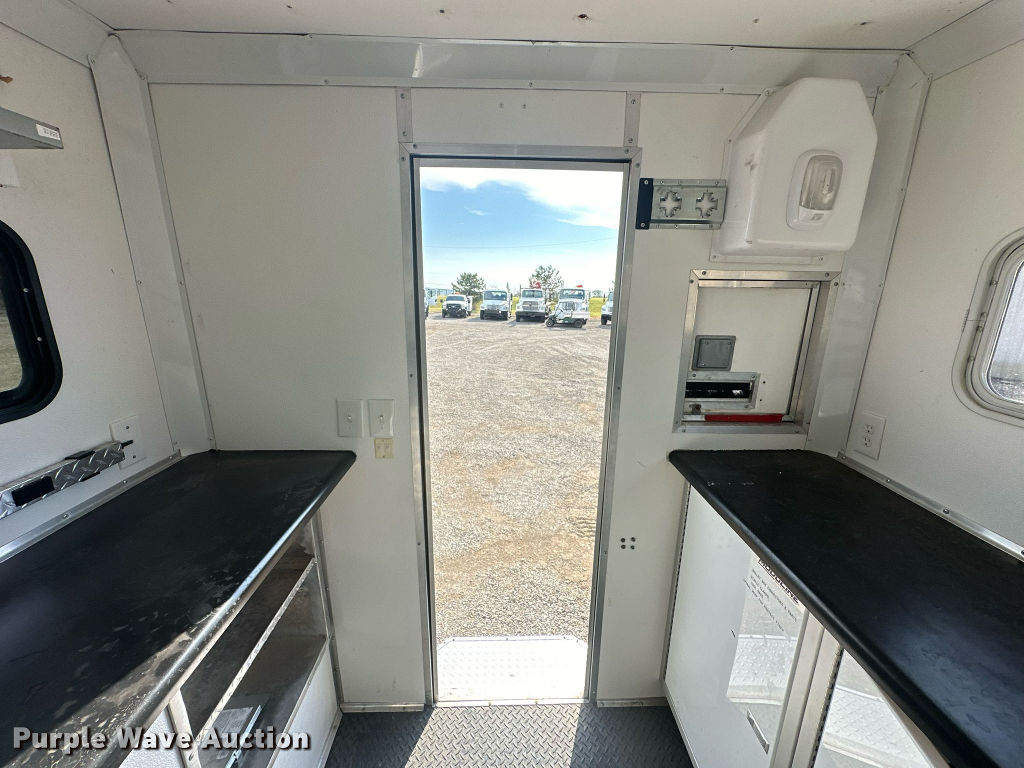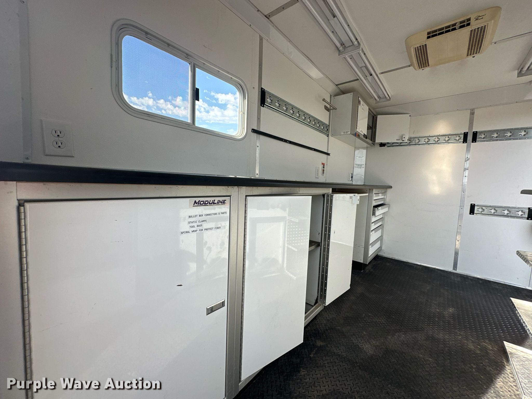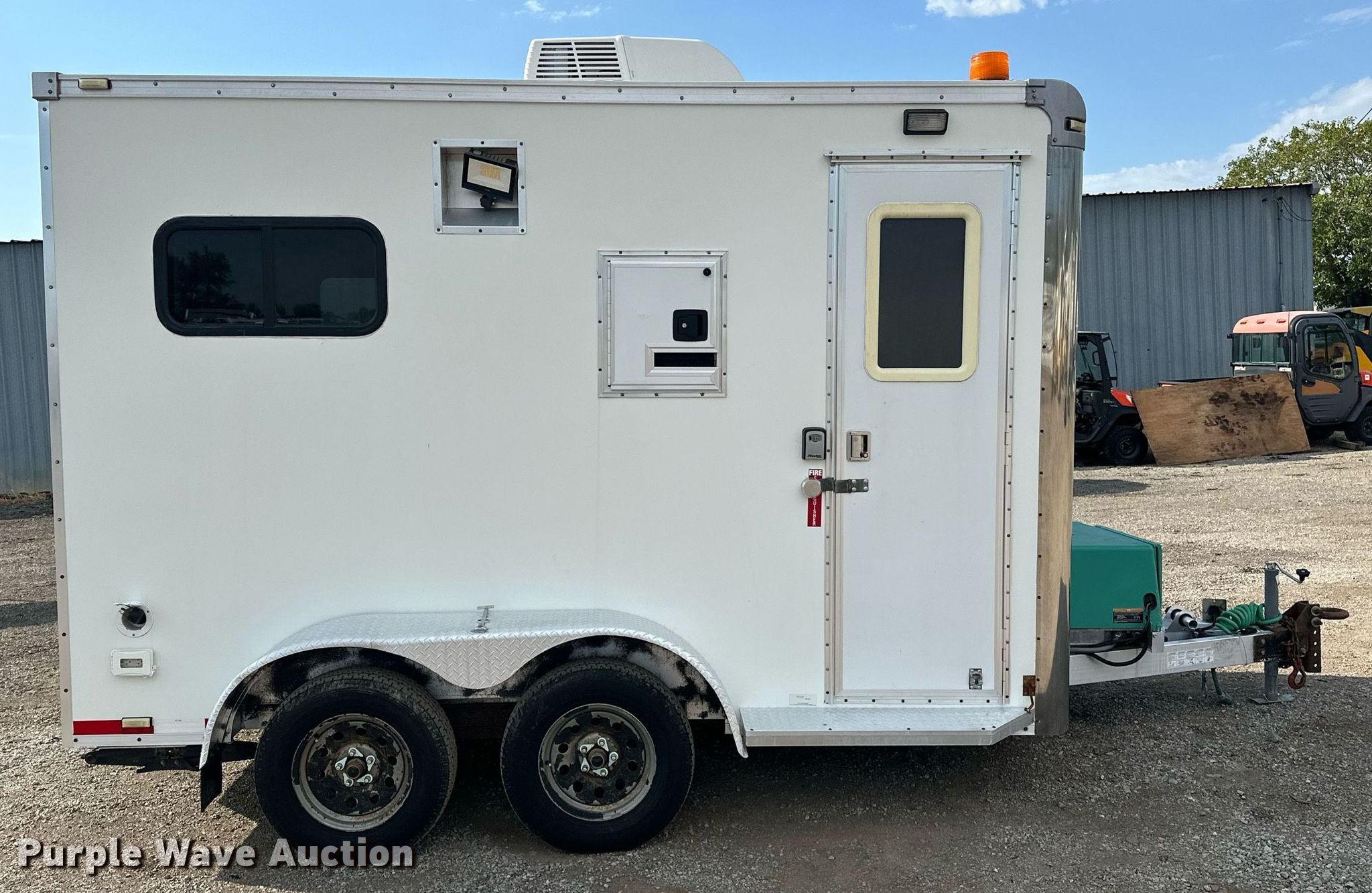 2010 Forest River fiber optic trailer. VIN: 5NHUJE228AN071216. Dimensions Overall: 17' L x 101" W, Body: 12' L x 84" W. Features Deck type: Wood, Cummins Onan Commercial QG generator Hours: 1,053 on meter, Fuel: Gas, Phase: Single, Amps: 23, Volts: 120/240, Hz: 60. Chassis Hitch: Pintle, Landing gear: Single, Suspension: Torsion, Brakes: Electric, Axles: Tandem, GVWR: 7,000 lbs, GAWR: 3,500 lbs. Tires Steel wheels, Size: ST205/75R15. Notes Dead battery, Unknown operating condition of climate controls. Oklahoma title. Collinsville, OK 74021