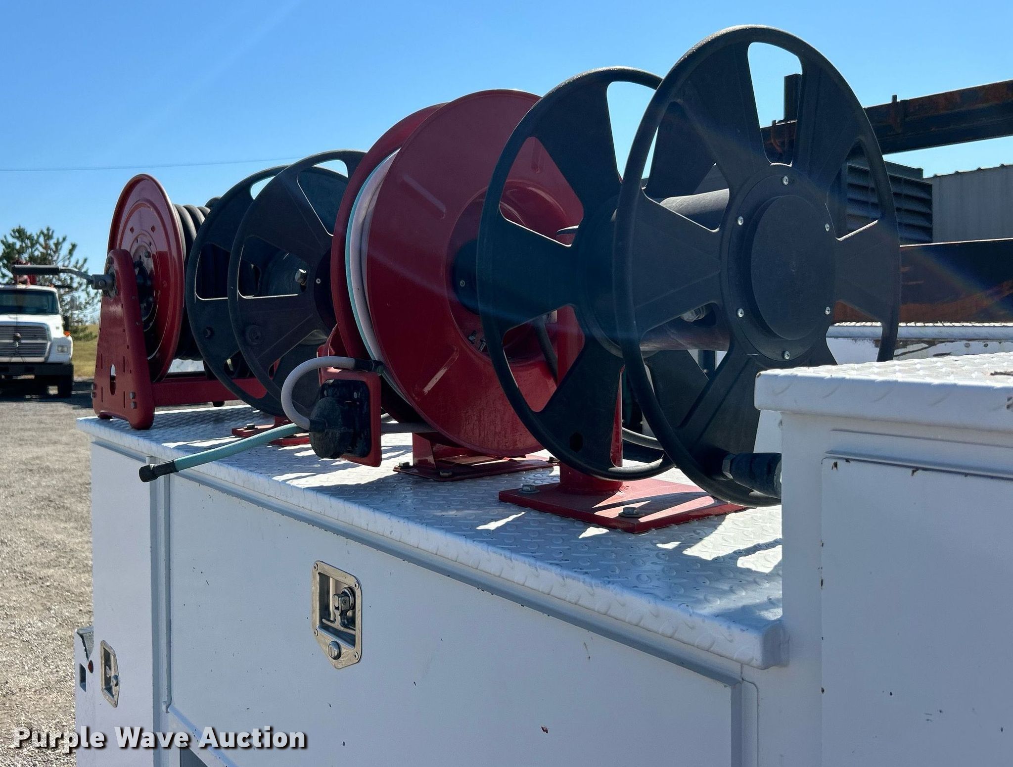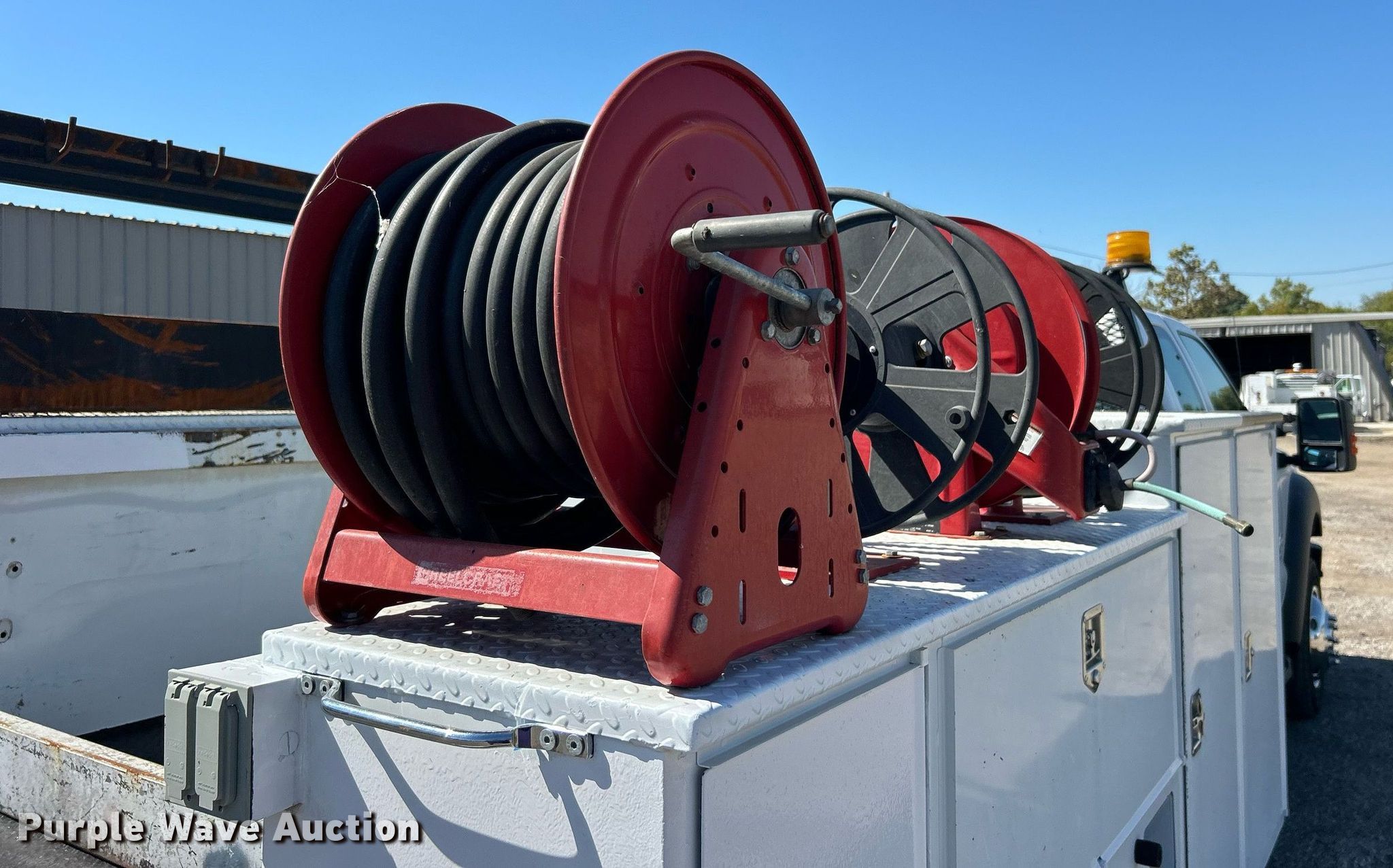 2012 Ford F550 Super Duty SuperCab utility/ service truck. Miles: 75,409 on odometer, VIN: 1FD0X5HT7CEA30025. Engine Displacement: 6.7L, Cylinders: 8, Fuel type: Diesel. Transmission Automatic, Four wheel drive. Interior AC, Heat, Heated mirrors, Power windows, Power locks, Cruise control, Auxiliary controls, Brake controller. Features Bed Dakota Bodies 129-LB, 9' 3" L x 96" W, Hose reels. Tires Size: 225/70R19.5. Oklahoma title. Title distribution may be delayed up to 14 days from verification of funds. Collinsville, OK 74021