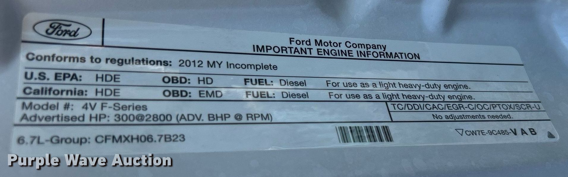 Purple Wave is selling a used Service Truck in Oklahoma. This item is a 2012 Ford F550 Super Duty SuperCab utility/ service truck with the following: Miles: 75,409 on odometer, VIN: 1FD0X5HT7CEA30025