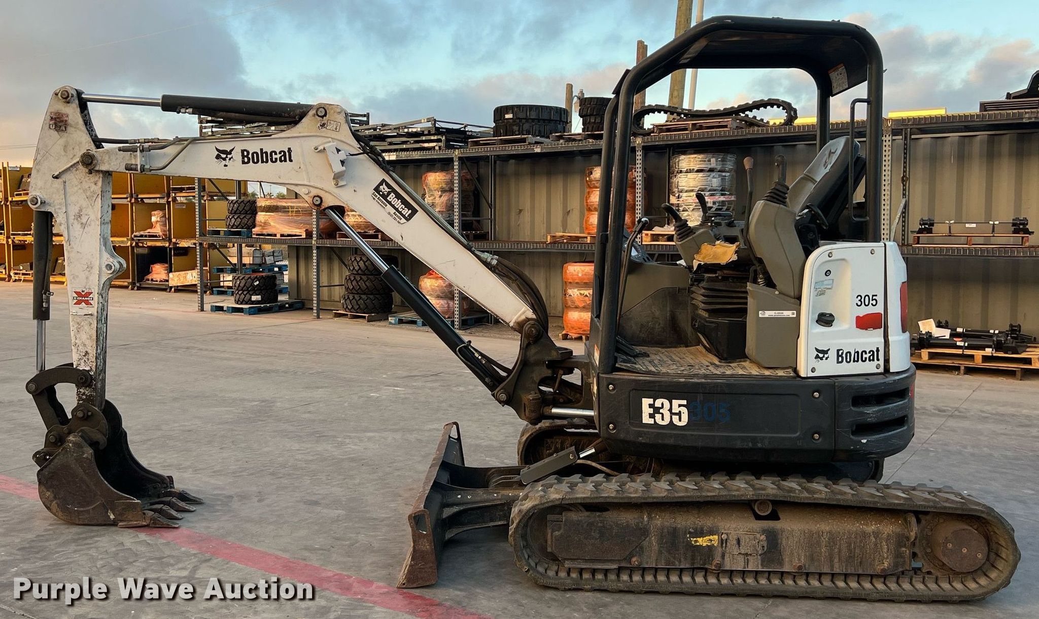 Purple Wave is selling a used Mini Excavator in Texas. This item is a 2016 Bobcat E35 mini excavator with the following: Hours: 4,539 on meter, Serial: AR1K12792, Unit #: 305