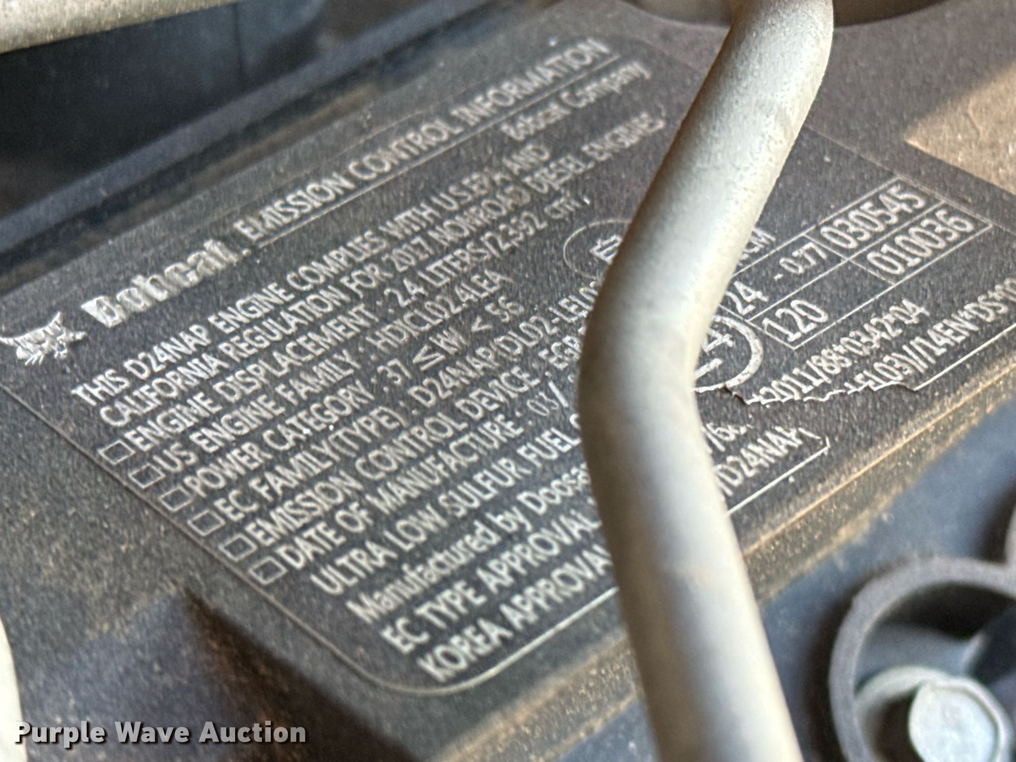 2017 Bobcat T650 tracked skid steer loader. Hours: 4,265 on meter, Serial: ALJG22618, Unit #: 2096038. Engine Doosan D24NAP, Displacement: 2.4L, Cylinders: 4, Fuel type: Diesel. Transmission Hydrostatic, Two speed travel. Operators station Bucket control: Foot. Features Auxiliary hydraulics, Quick coupler: Hydraulic, Bucket Bobcat 80 heavy duty, Width: 80", Cutting edge: Weld-on. Tracks Width: 17.5". Vermeer Equipment of Texas. San Antonio, TX 78233