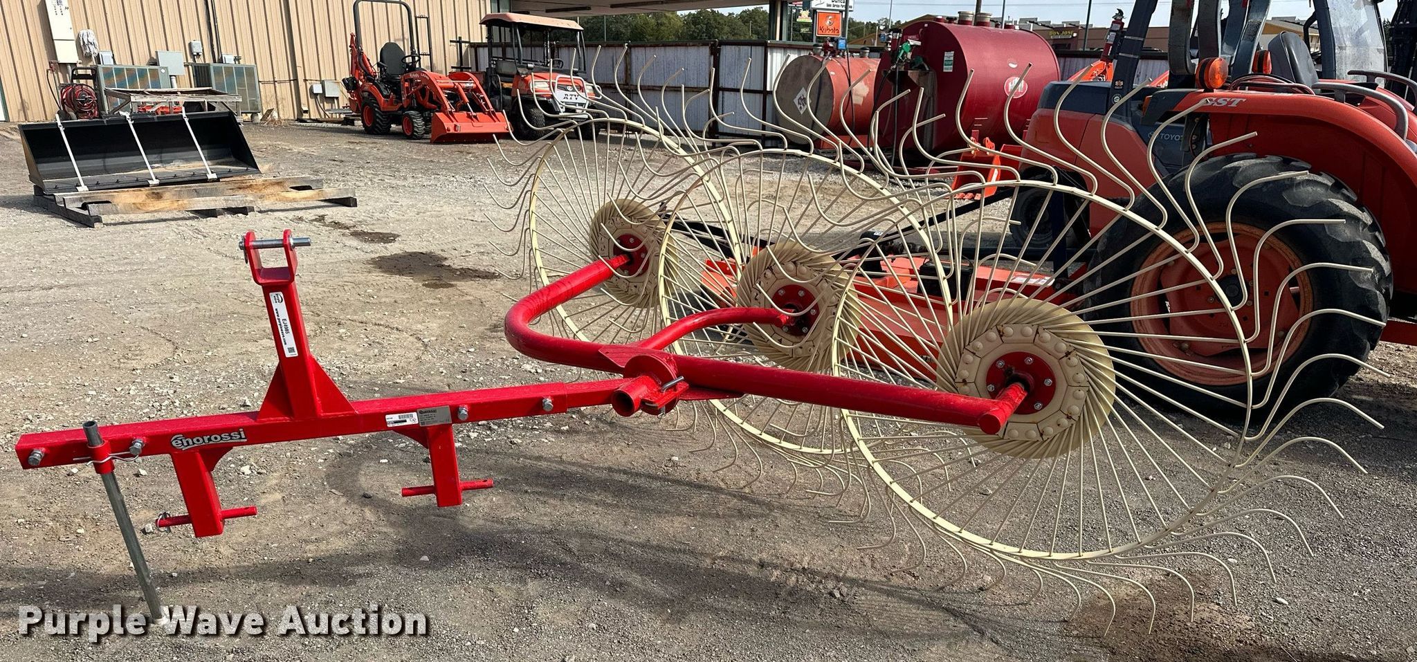 Purple Wave is selling a used Hay Rake in Oklahoma. This item is a 2021 Enorossi RO-3C hay rake with the following: Serial: N17590R10-03