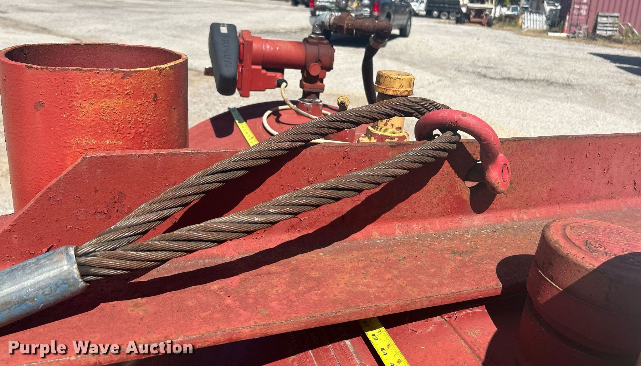 Purple Wave is selling a used Fuel and Lube in Missouri. This item is a Fuel tank with the following: Fill-Rite pump, GPM: 20, Volts: 12, Hose and nozzle, Dimension: 73" L x 48" H, Capacity: 500 gallons, Double walled