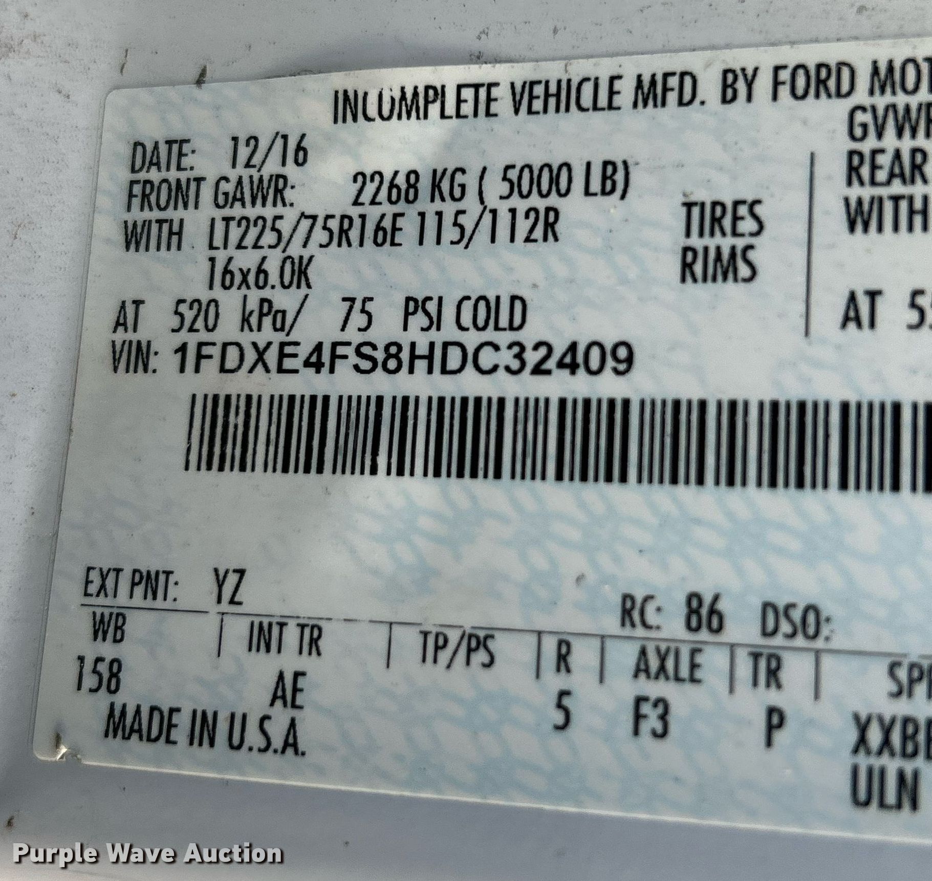• EK3457 image for item EK3457 2017 Ford E450 Super Duty utility van