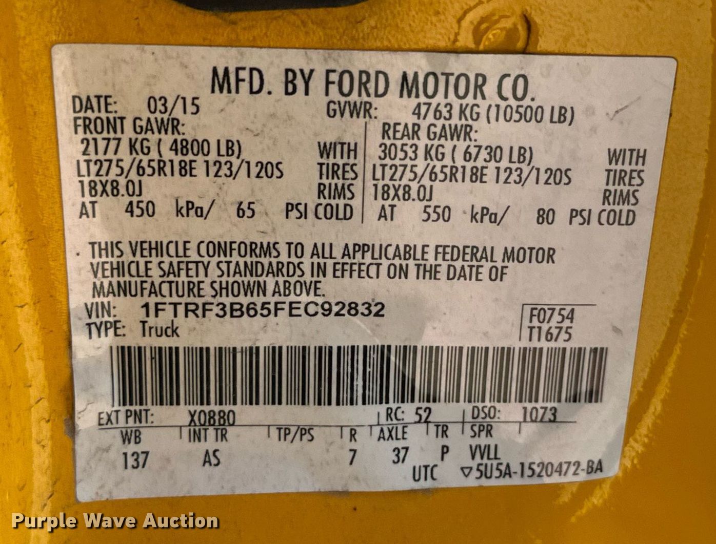 Purple Wave is selling a used 3/4 or 1 Ton Pickup or Van in Oklahoma. This item is a 2015 Ford F350 Super Duty utility bed pickup truck with the following: Miles: 212,281 on odometer, VIN: 1FTRF3B65FEC92832