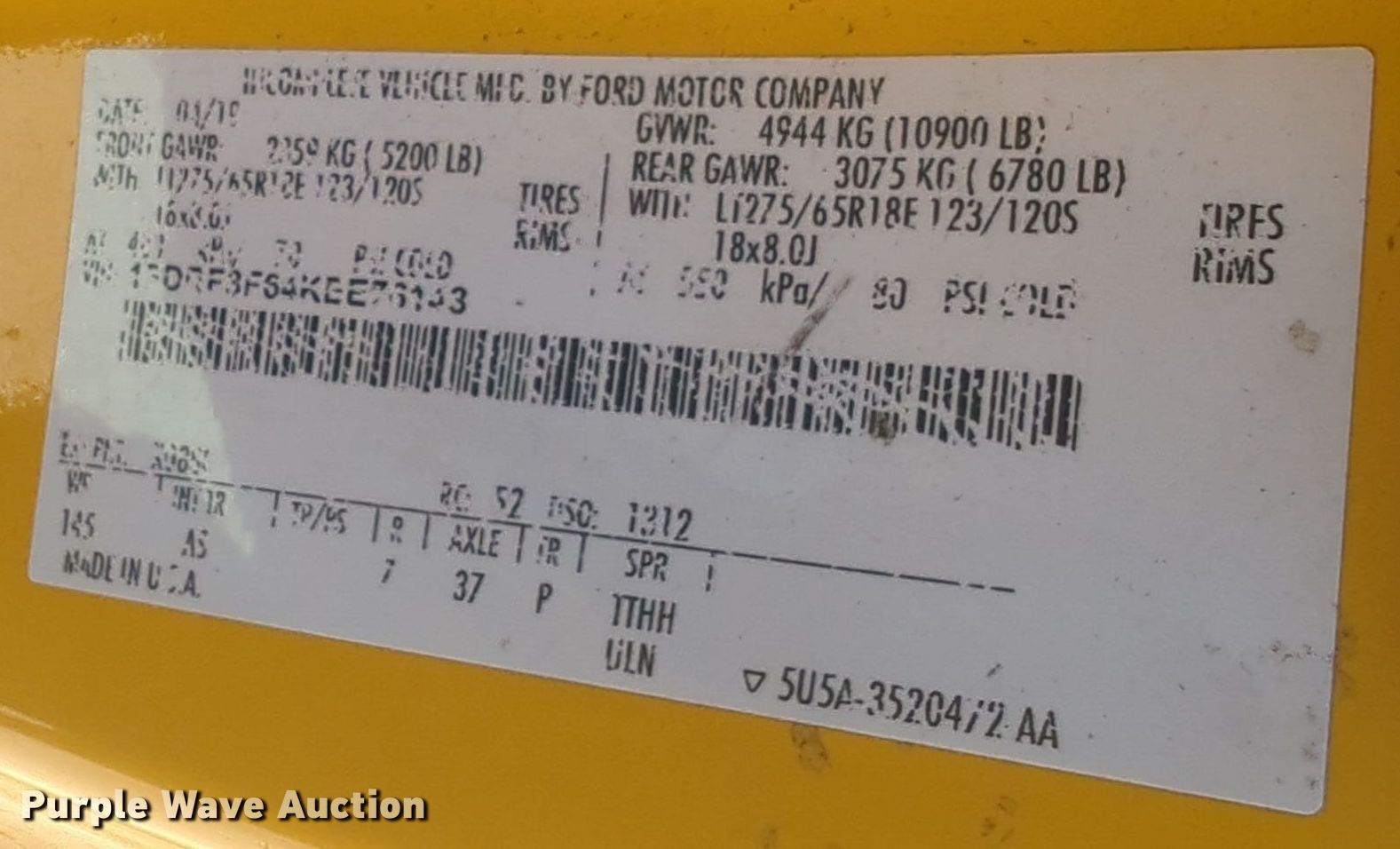 - VIN: 1FDRF3F64KEE76143