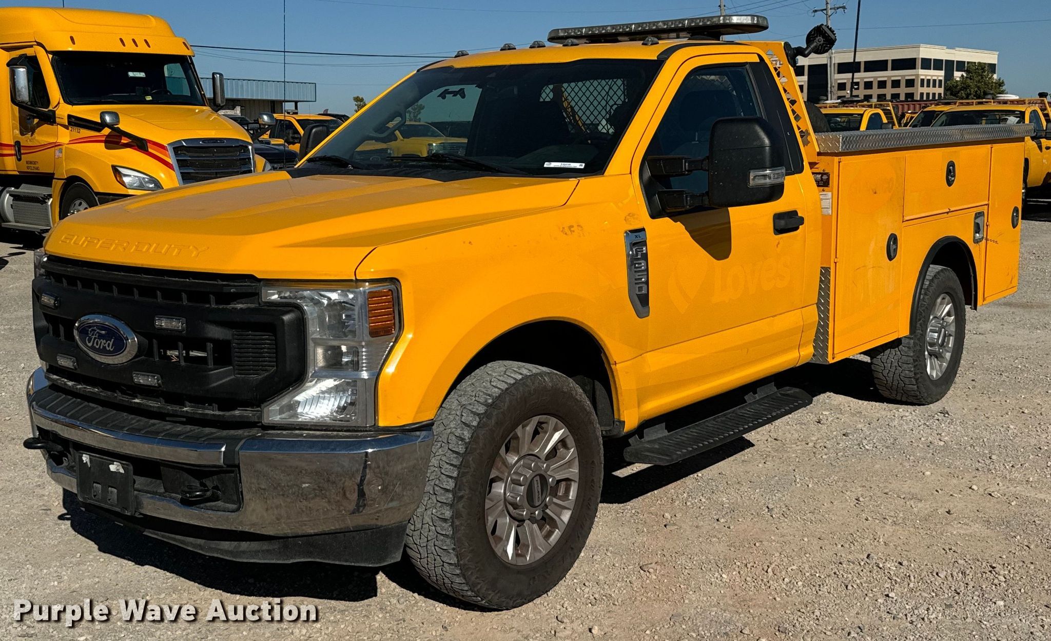 This 2020 Ford F350 Super Duty utility bed pickup truck will sell to the highest bidder regardless of price.