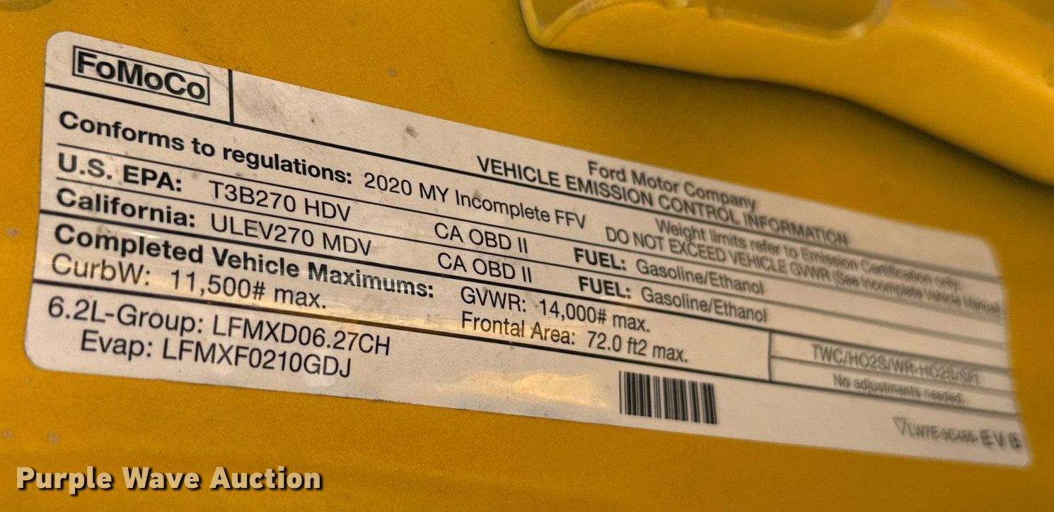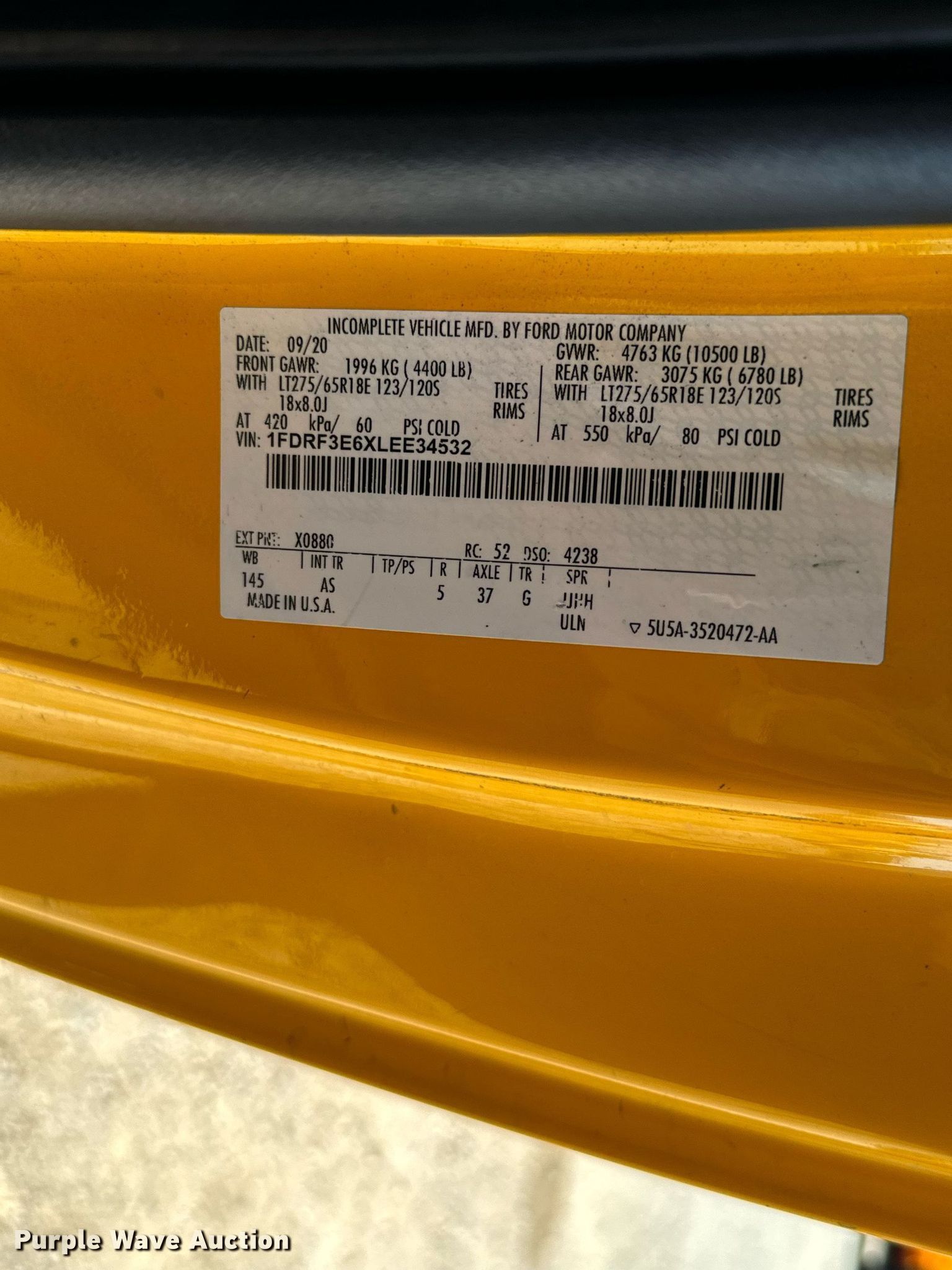 2020 Ford F350 Super Duty utility bed pickup truck. Miles: 118,974 on odometer, VIN: 1FDRF3E6XLEE34532. Engine Displacement: 6.2L V8 OHV, Cylinders: 8, Fuel type: Gas. Transmission Automatic. Interior AC, Heat, Heated mirrors, Power windows, Power locks, Cruise control. Features Utility bed 8' L x 80" W, Lift gate, Air compressor. Tires Size: LT275/65R18. Notes Driver side window glass cracked. Oklahoma title. Title distribution may be delayed up to 30 days from verification of funds. Gemini Motor Transport. Oklahoma City, OK 73127