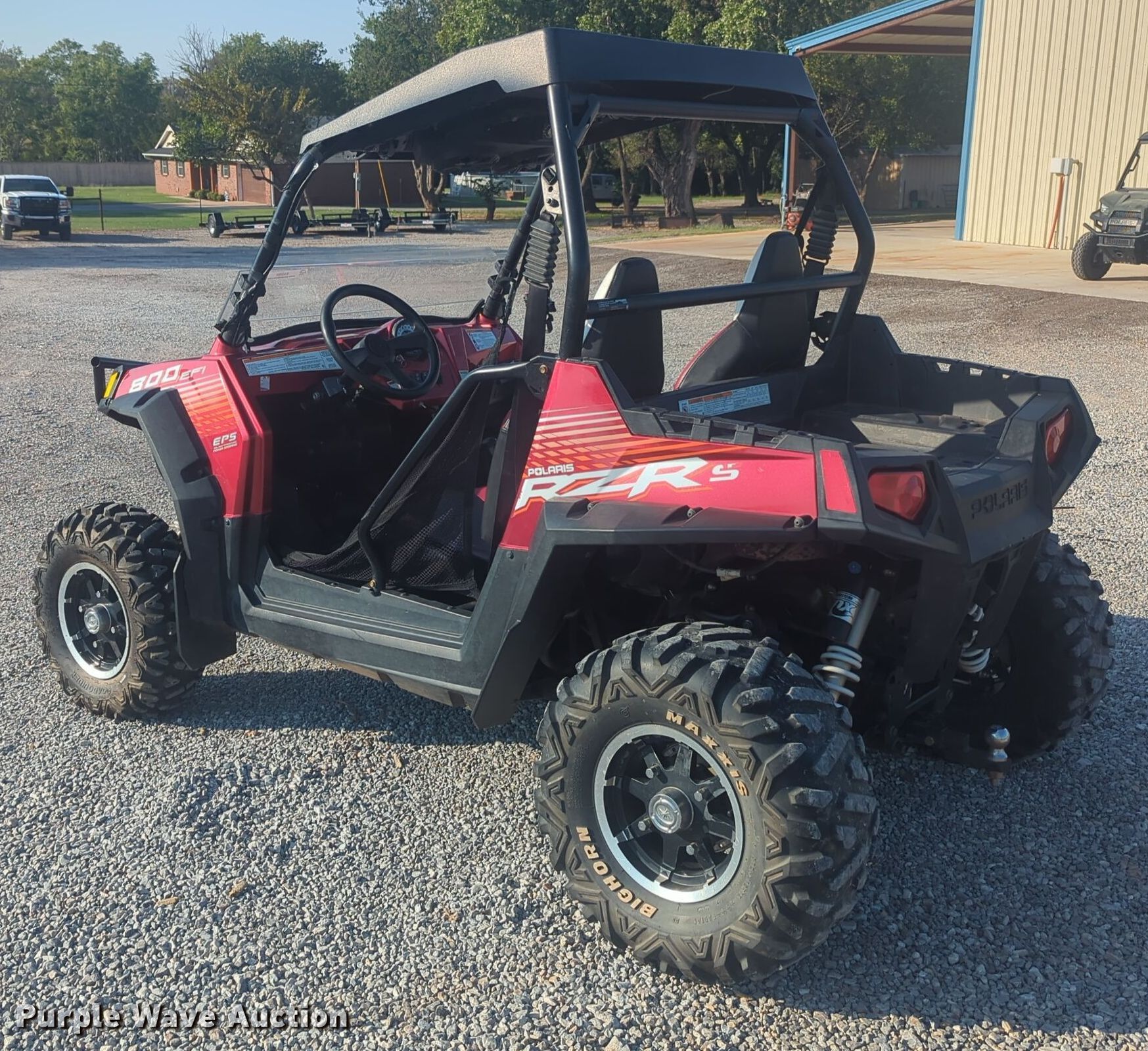 Purple Wave is selling a used Utility Vehicle in Oklahoma. This item is a 2013 Polaris RZR 800 utility vehicle with the following: Miles: 4,528 on odometer, Hours: 334 on meter, VIN: 4XAVE7EA8DB157147