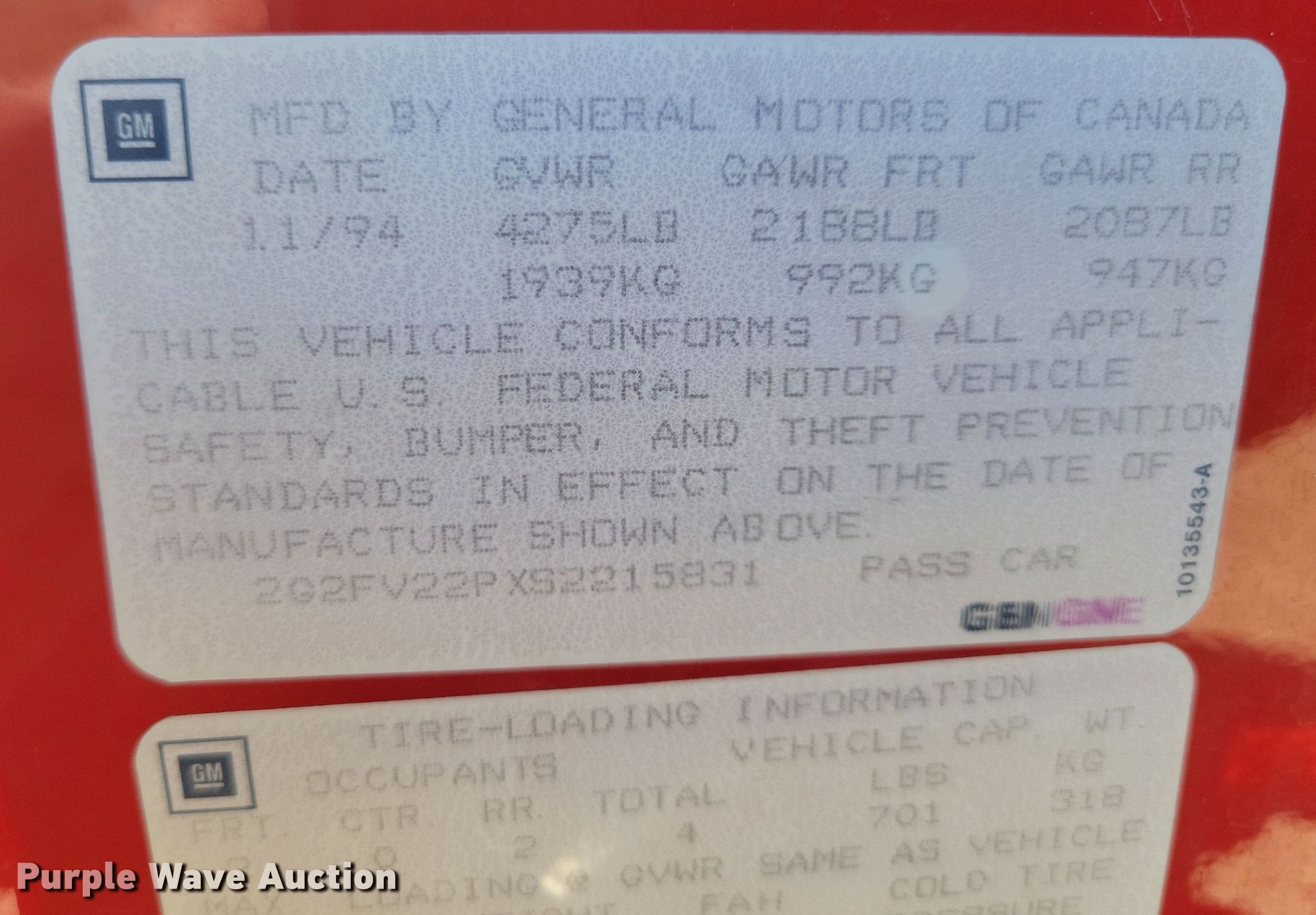 - VIN: 2G2FV22PXS2215831