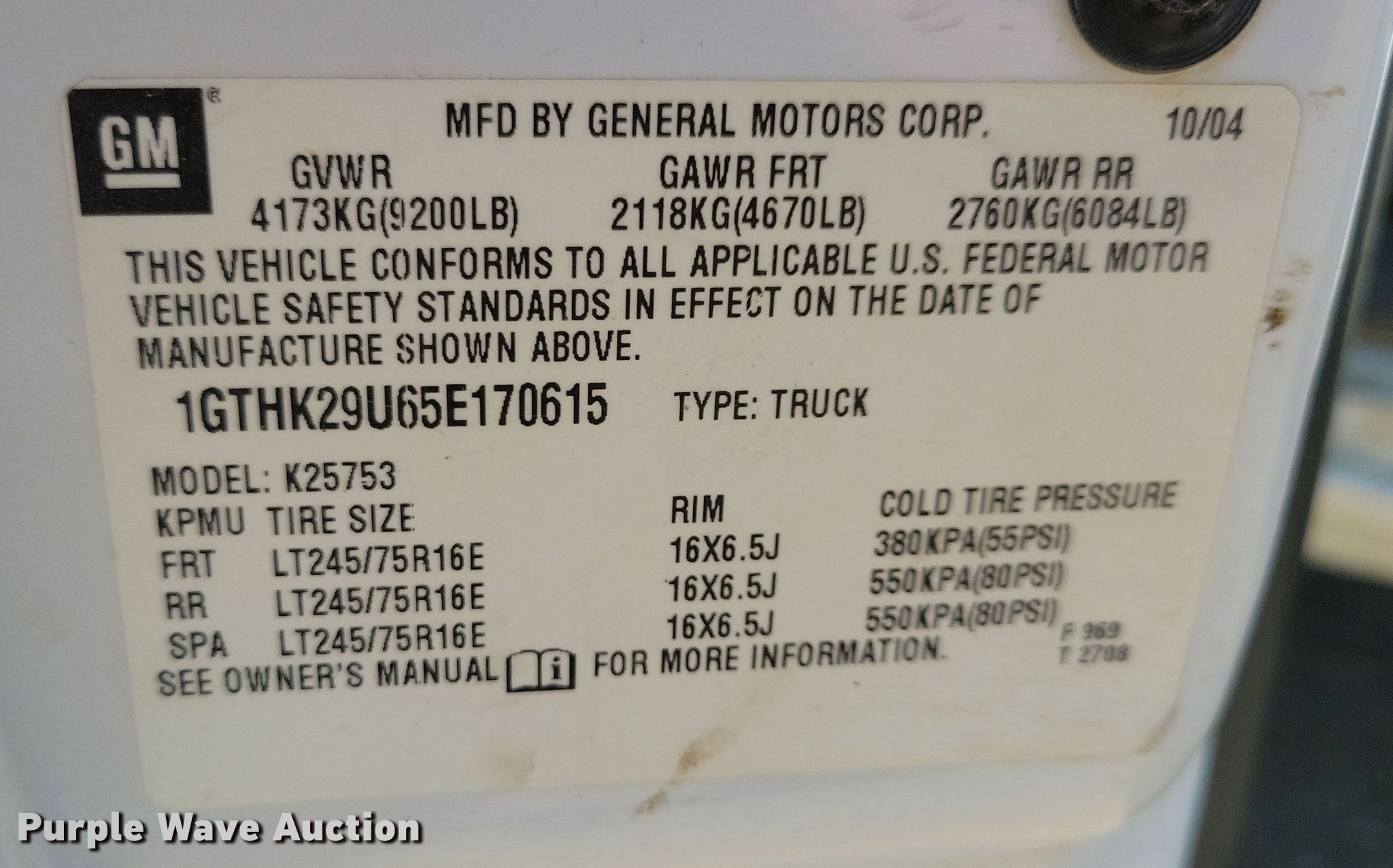 - VIN: 1GTHK29U65E170615