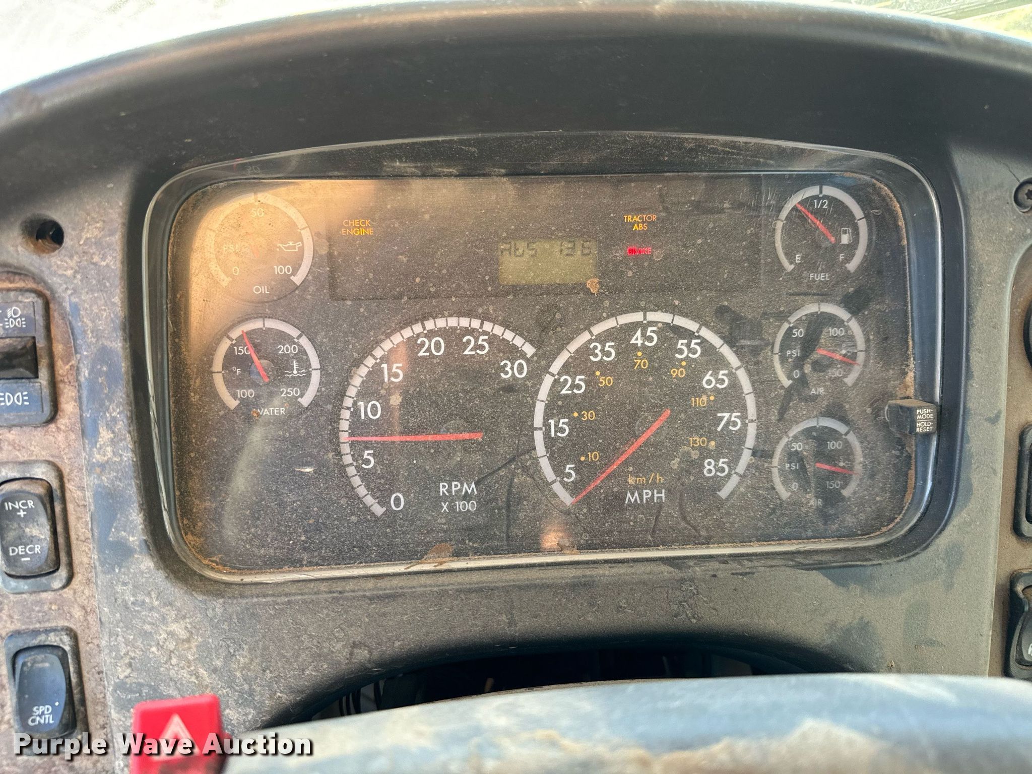 2005 Freightliner Business Class M2 flatbed truck. Miles: 222,157 on odometer, Hours: 9,370 on meter, VIN: 1FVHCYDJ15HV37887. Engine Mercedes-Benz, Displacement: 7.2L, Cylinders: 6, Fuel type: Diesel. Transmission Manual, Speed: 9. Chassis Axles: Tandem, Suspension: Air, Brakes: Air, PTO, GVWR: 54,000 lbs. Interior AC, Heat, Heated mirrors, Cruise control. Features Flatbed 26' L x 102" W. Tires Front: 315/80R22.5, Rear: 11R22.5. Notes Dash warning indicator: Check engine, Tractor ABS, Brake, Non-operational cruise control, Non-operational dump valves, Odometer disconnected, Deck board damaged, Antifreeze leak, Differential lock issues, Parking brake issues, Rust damage, Brake issues , Former liquid protein truck Plumbing components have been removed/disconnected. Kansas title. Title distribution may be delayed up to 14 days from verification of funds. Maize, KS 67101