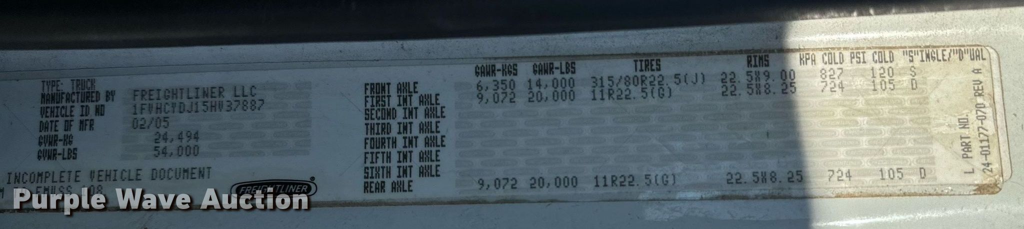 Purple Wave is selling a used Flat Bed Truck in Kansas. This item is a 2005 Freightliner Business Class M2 flatbed truck with the following: Miles: 222,157 on odometer, Hours: 9,370 on meter, VIN: 1FVHCYDJ15HV37887