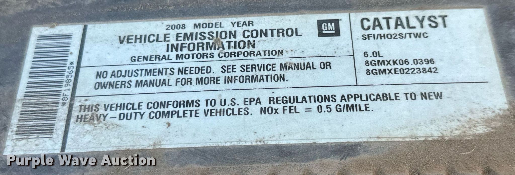 2008 Chevrolet Silverado 3500HD Crew Cab flatbed pickup truck. Miles: 165,340 on odometer, VIN: 1GCJK33K78F198565. Engine Displacement: 6.0L V8 OHV, Cylinders: 8, Fuel type: Gas. Transmission Automatic, Four wheel drive. Interior AC, Heat, Seat: Heated, Power driver, Power passenger, Power windows, Power locks, Cruise control, Powered sunroof. Features Flatbed 9' L x 92" W, Hitch: Gooseneck. Tires Size: 225/75R17. Notes Dash warning indicator: Check engine, Transmission issues, needs replaced. Kansas title. Title distribution may be delayed up to 14 days from verification of funds. Maize, KS 67101