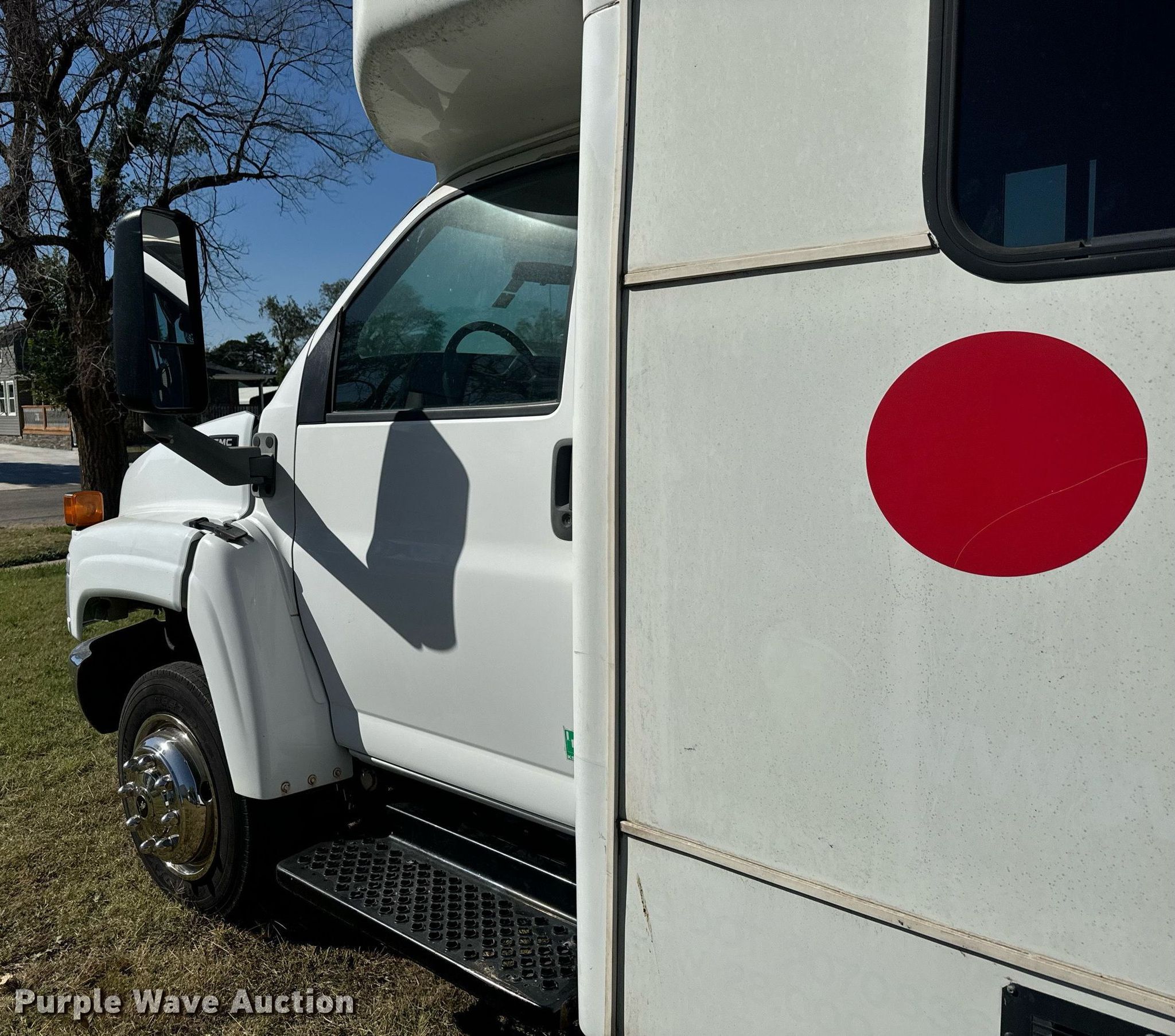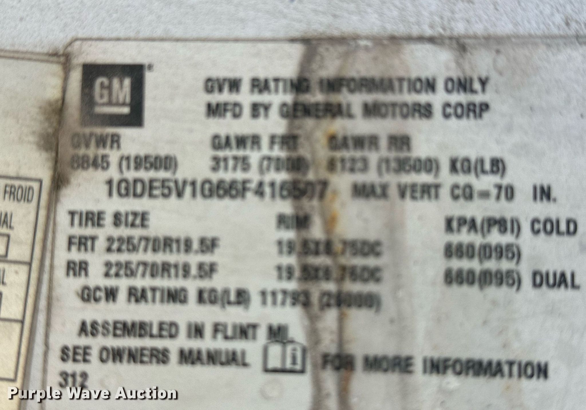 2006 GMC C5500 shuttle bus. Miles: 149,371 on odometer, Hours: 8,160 on meter, VIN: 1GDE5V1G66F416507. Engine Displacement: 8.1L, Cylinders: 8, Fuel type: Gas. Transmission Automatic. Chassis Axles: Single, Suspension: Spring, Brakes: Hydraulic, GVWR: 28,000 lbs. Interior AC, Heat, Heated mirrors, Cruise control, Auxiliary controls, Electric passenger sliding door, Passengers: 28. Tires Size: 225/70R19.5. Notes Electric door issues, disconnected, Rear ac cover will be installed prior to auction, Battery issues, electrical drain. Kansas title. Title distribution may be delayed up to 14 days from verification of funds. Riverside Baptist Church. Hutchinson, KS 67501