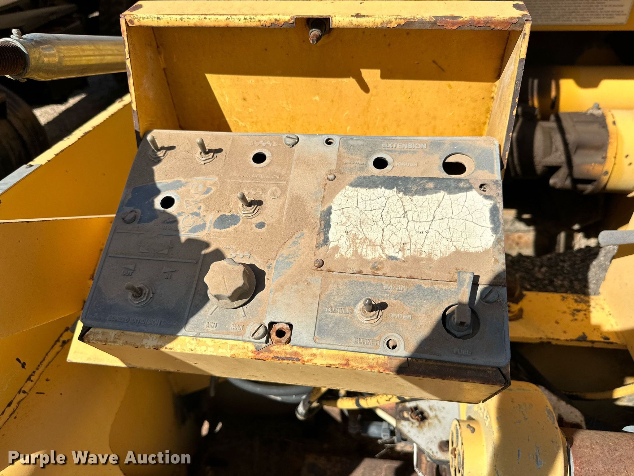 1996 Blaw Knox PF-161 paver. Hours: 5,392 on meter, Serial: 16108-08. Engine Cylinders: 4, Fuel type: Diesel. Transmission Hydrostatic. Features Screed Blaw Knox 2.5/5B HSE, Serial: 12414-04, Paving width: 8', Screed heater: Electric, Front spread hopper width: 10', Material conveyor Width: 54", Ground level remote. Tires Front: 20", Rear: 164/160R22. Notes Non-operational unit. Holmes Construction. Amarillo, TX 79124