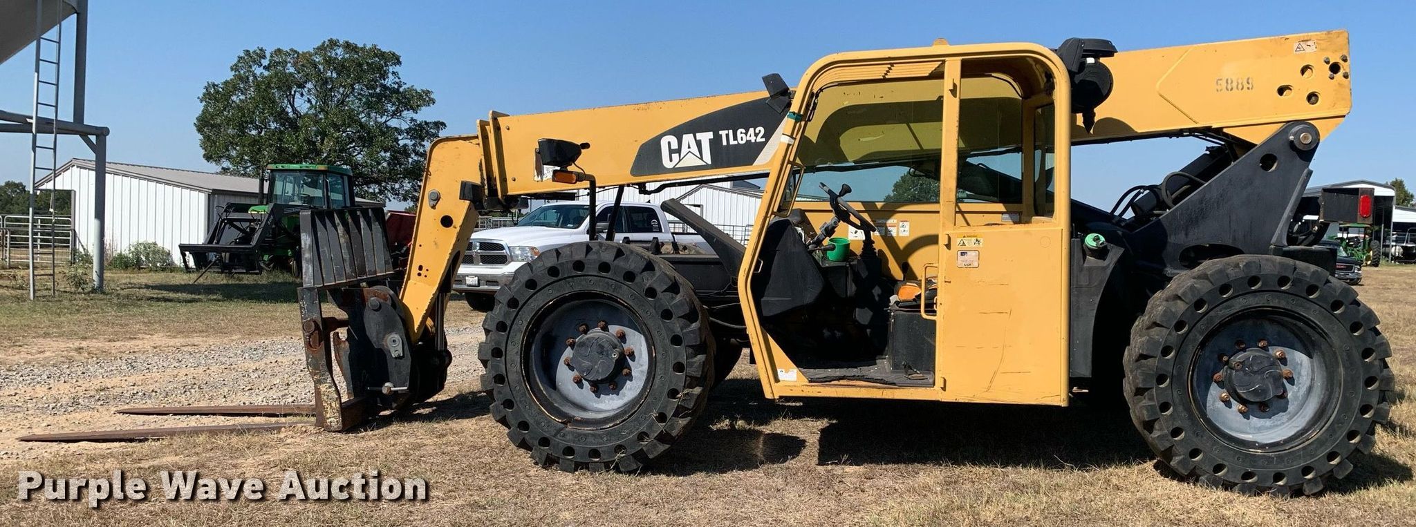 Purple Wave is selling a used Telehandler in Oklahoma. This item is a 2007 Caterpillar TL642 telehandler with the following: Hours: 4,687 on meter, Serial: TBK00530