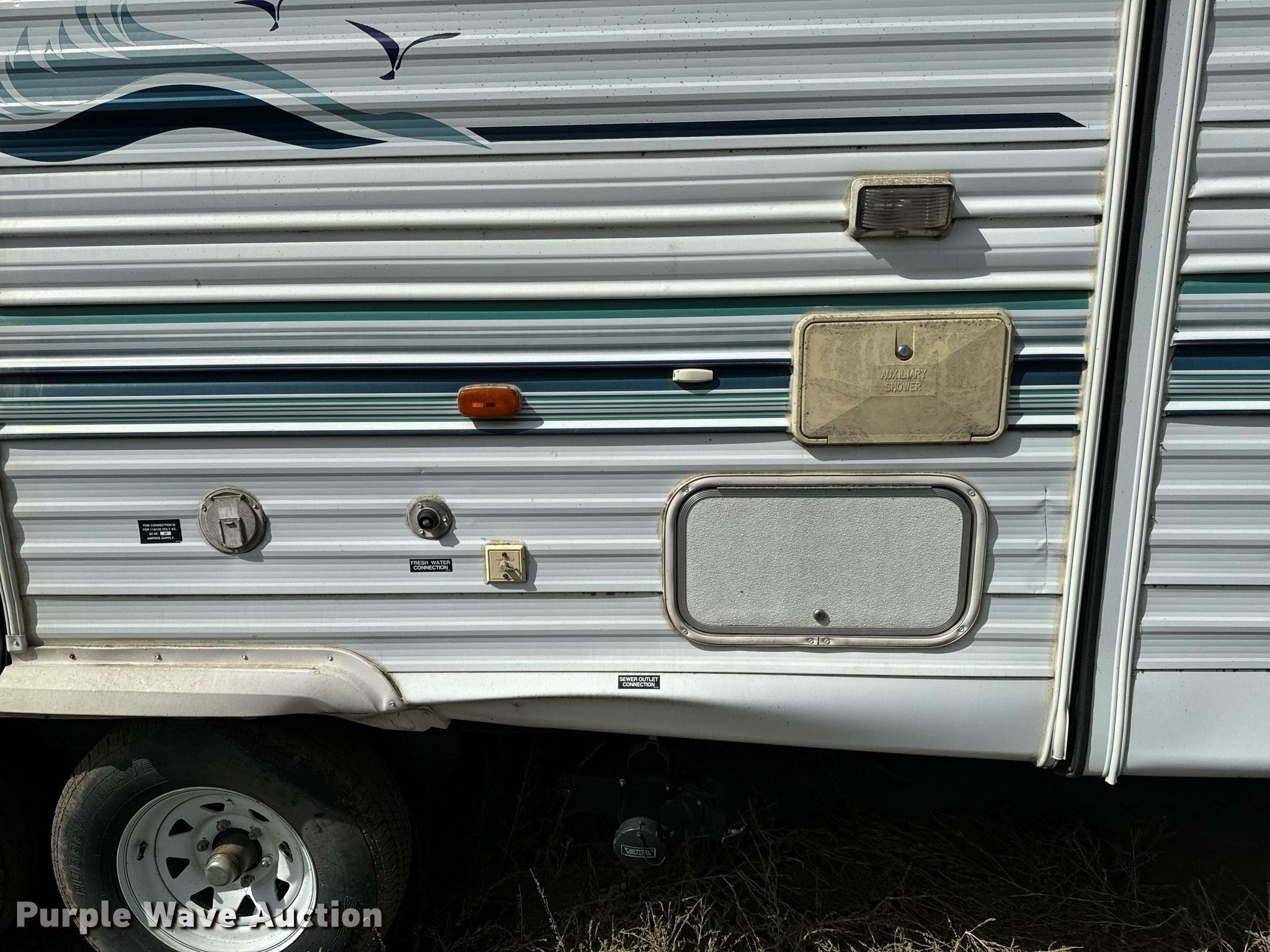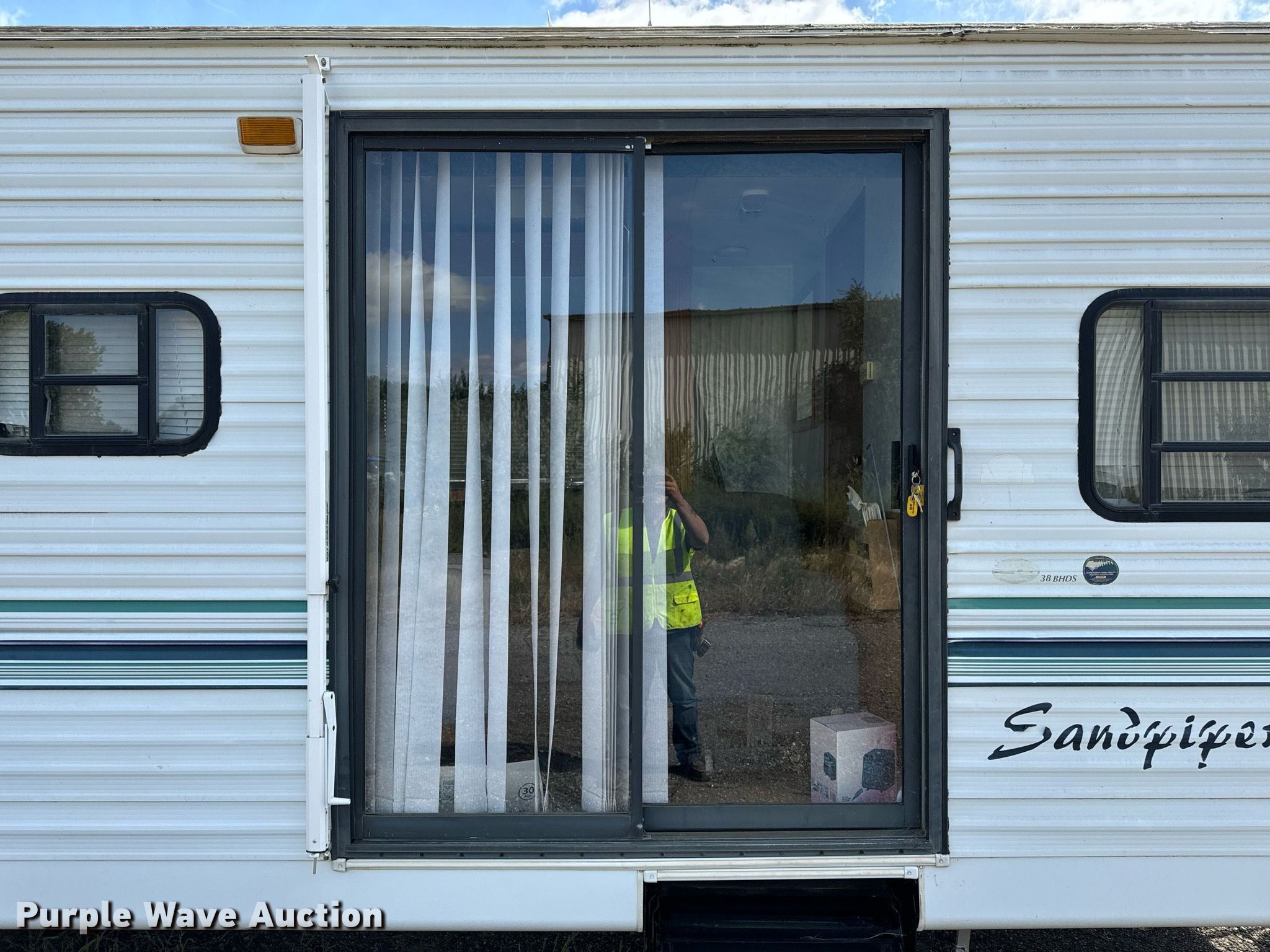 2001 Forrest River Sandpiper 38BHDS camper. Camper length: 39', VIN: 4C4TSAP231A014677. Chassis Axles: Tandem, Suspension: Spring, Brakes: Electric. Interior Kitchen: Sink, Refrigerator, Freezer, Microwave, Oven, Stove: Propane, Living room: Table, Couch, Bathroom, Bed type: Double, Sound system, Heater, AC units: 1. Features Slide outs: 2, Ball hitch: 2 5/16". Tires Size: ST225/75R15. Notes Hail damage, Dead battery. North Dakota title. Knife River Corporation. Bismarck, ND 58504