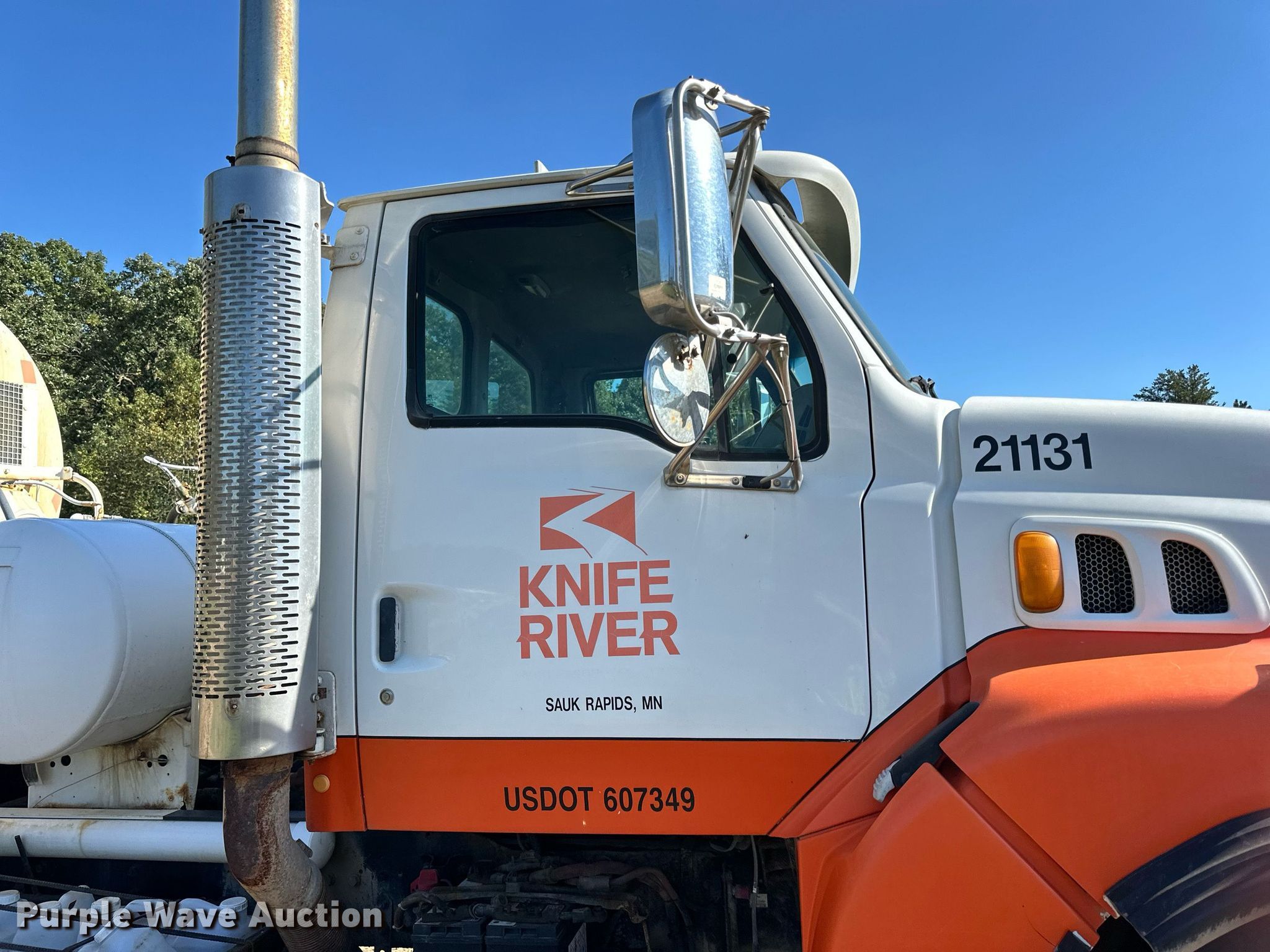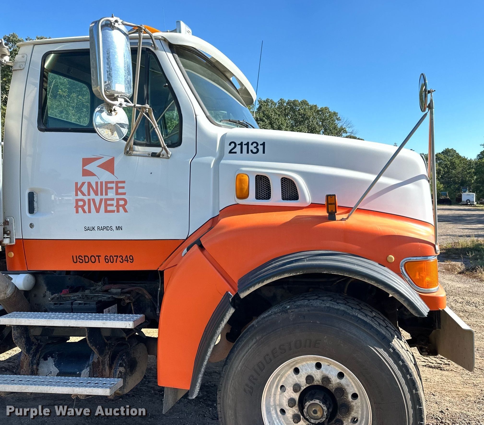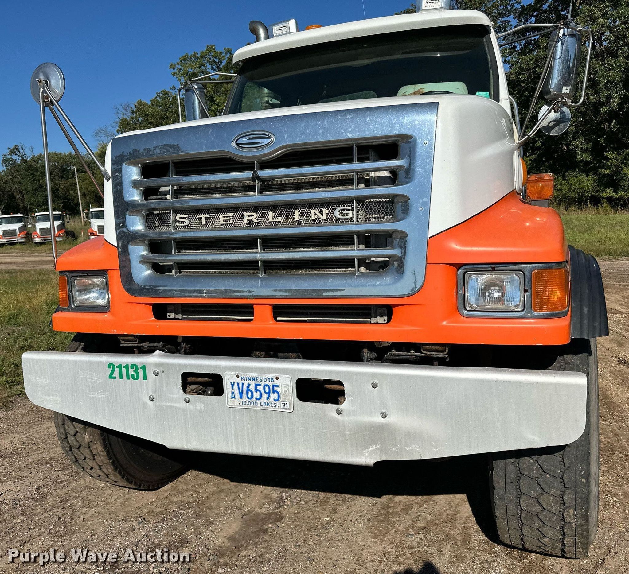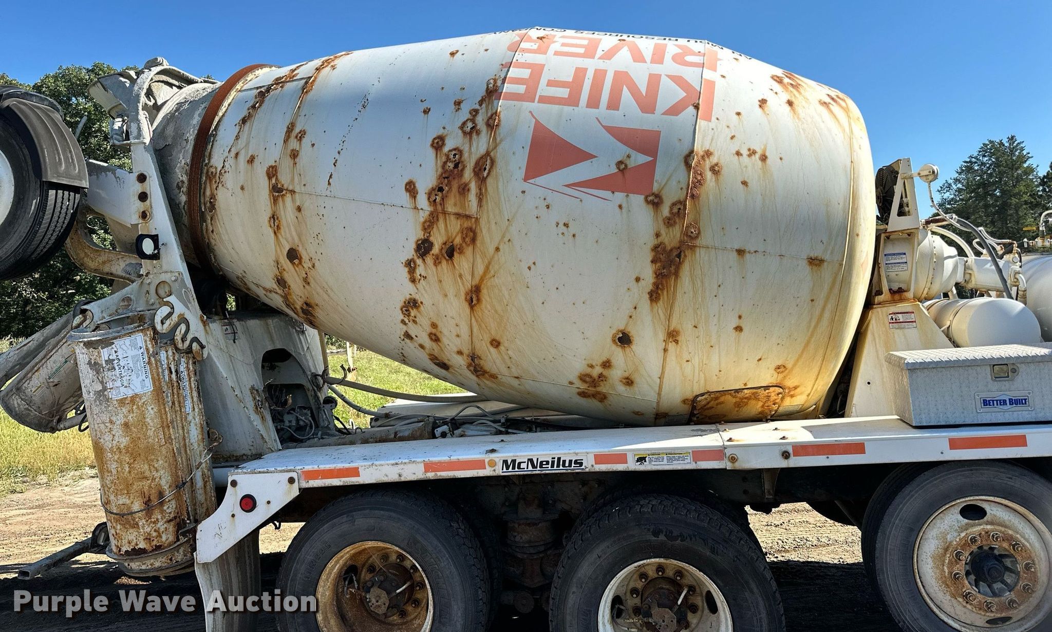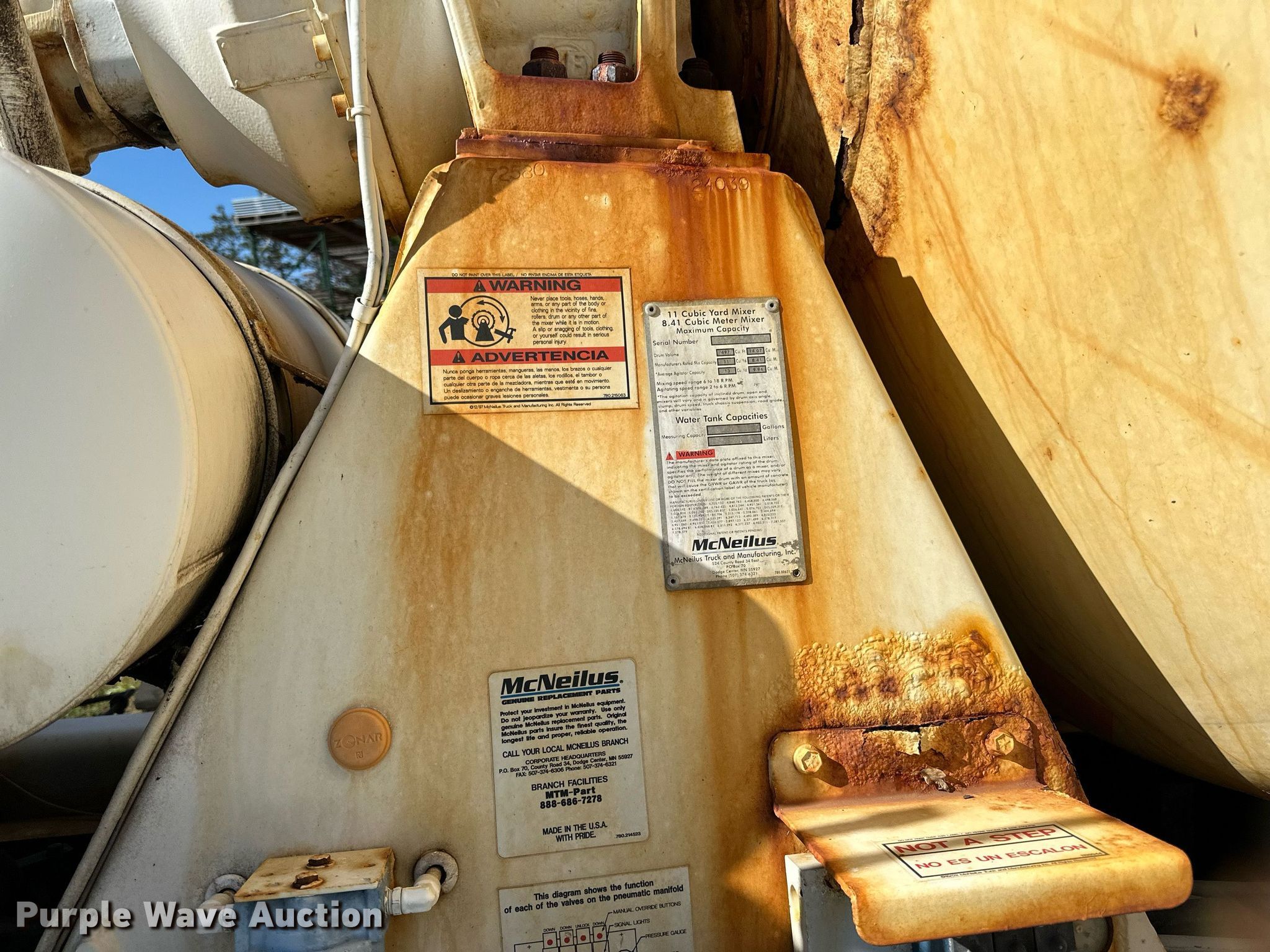 2004 Sterling L9500 ready mix truck. Miles: 289,048 on odometer, Hours: 23,767 on meter, VIN: 2FZMAZAS44AM87963. Engine Caterpillar C12, Displacement: 12.0L, Cylinders: 6, Fuel type: Diesel, HP: 380. Transmission Eaton Fuller Roadranger RTO9, Manual, Speed: 11. Chassis Axles: 4, Pusher axle Steerable, Tag axle Steerable, Differential lock: Full, Suspension: Spring over walking beam, Brakes: Air, PTO, GVWR: 80,000 lbs FAWR: 20,000 lbs, IAWR: 23,000 lbs, RAWR: 23,000 lbs, Lift axle GAWR: 11,020 lbs. Interior AC, Heat, Heated mirrors, Cruise control. Features Mixer Mcneilus, Capacity: 11 cu.yd., Discharge: Rear, In-cab controls, Rear drum controls, Water tank capacity: 150 gallons, Chute Extensions: 3, Chute type: Steel.. Tires Front: 425/65R22.5, Rear: 11R22.5, Lift axle: 255/70R22.5. Minnesota title. Title distribution may be delayed up to 14 days from verification of funds. Knife River Co.. Sauk Rapids, MN 56379