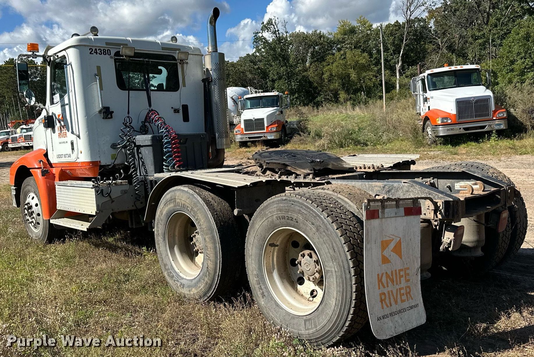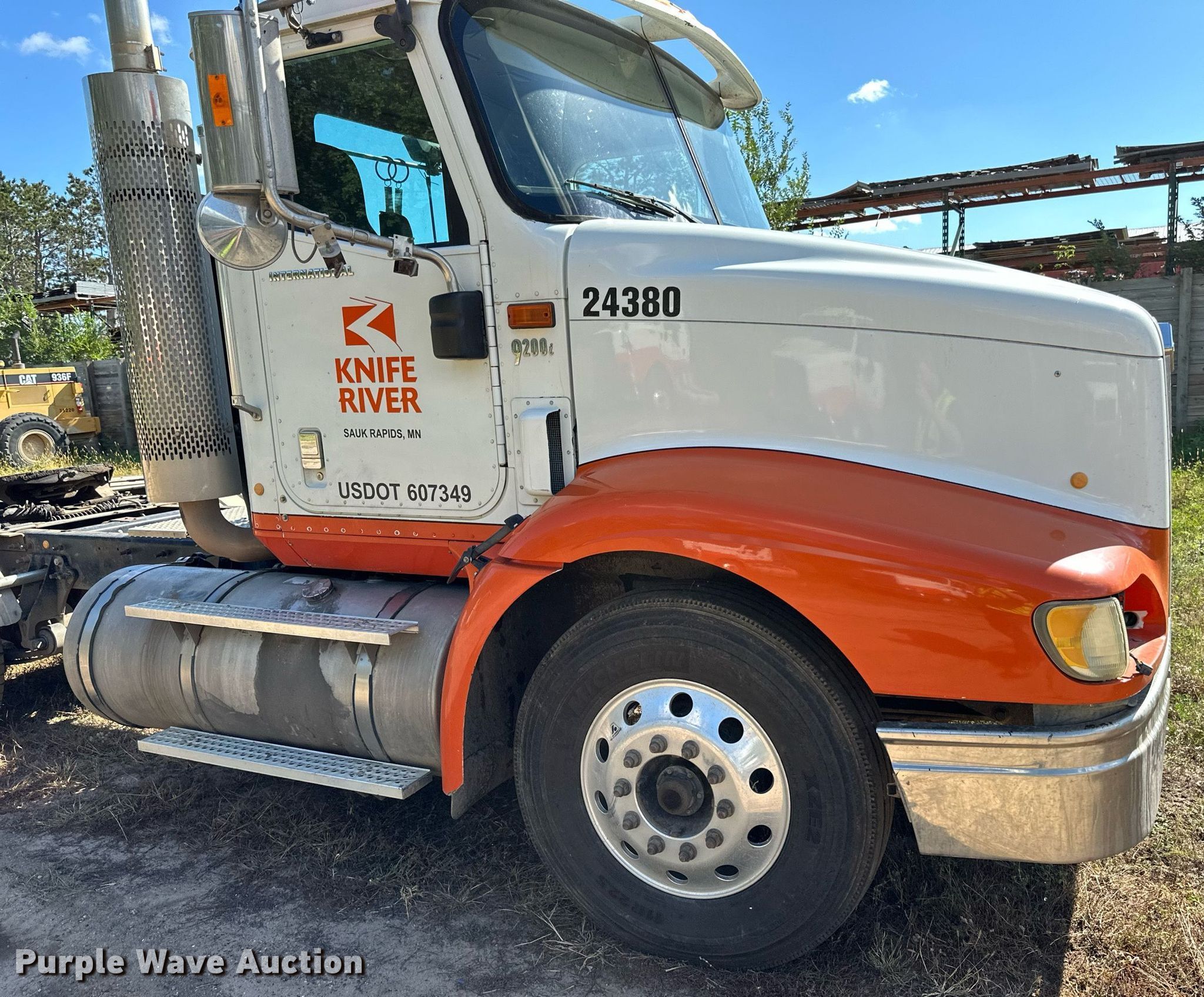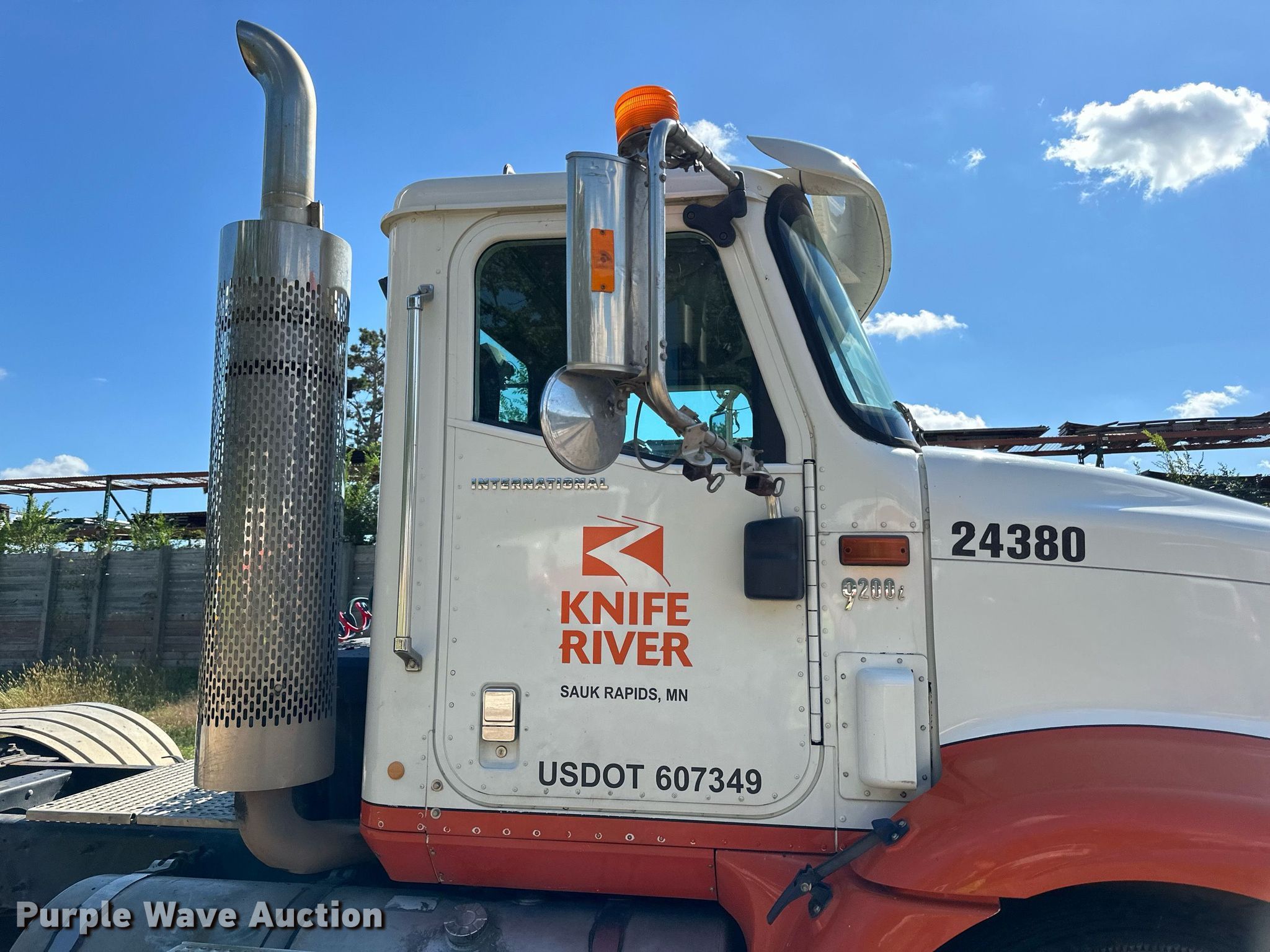 2007 International 9200i semi truck. Miles: 878,587 on odometer, Hours: 27,122 on meter, VIN: 2HSCEAPR67C453638. Engine Cummins, Displacement: 14.9L, Cylinders: 6, Fuel type: Diesel, Engine brake. Transmission Eaton Fuller, Manual, Speed: 10. Chassis Axles: Tandem, Differential lock: Inter-axle, Suspension: Air Dump valves, Brakes: Air, GVWR: 52,000 lbs FAWR: 12,000 lbs, RAWR: 20,000 lbs. Interior AC, Heat, Heated mirrors, Power windows, Cruise control. Features Deck plate: Aluminum, Fifth wheel type: Air operated, Sliding, Fuel tank: Single. Tires Size: 11R22.5. Notes Dash warning indicator: Low air, Contents not included. Minnesota title. Title distribution may be delayed up to 14 days from verification of funds. Knife River Co.. Sauk Rapids, MN 56379