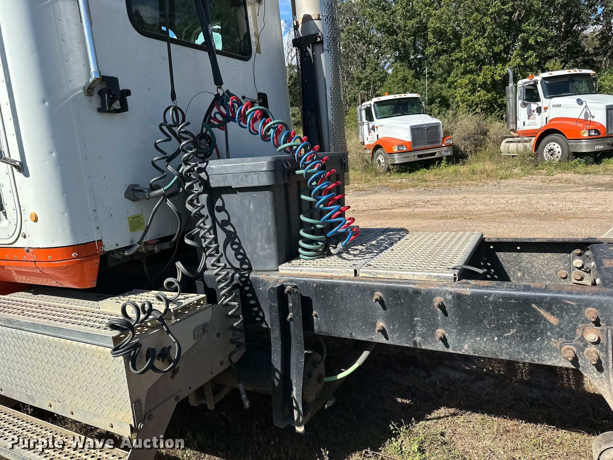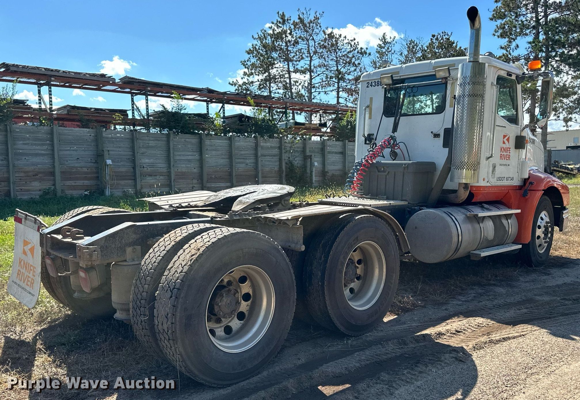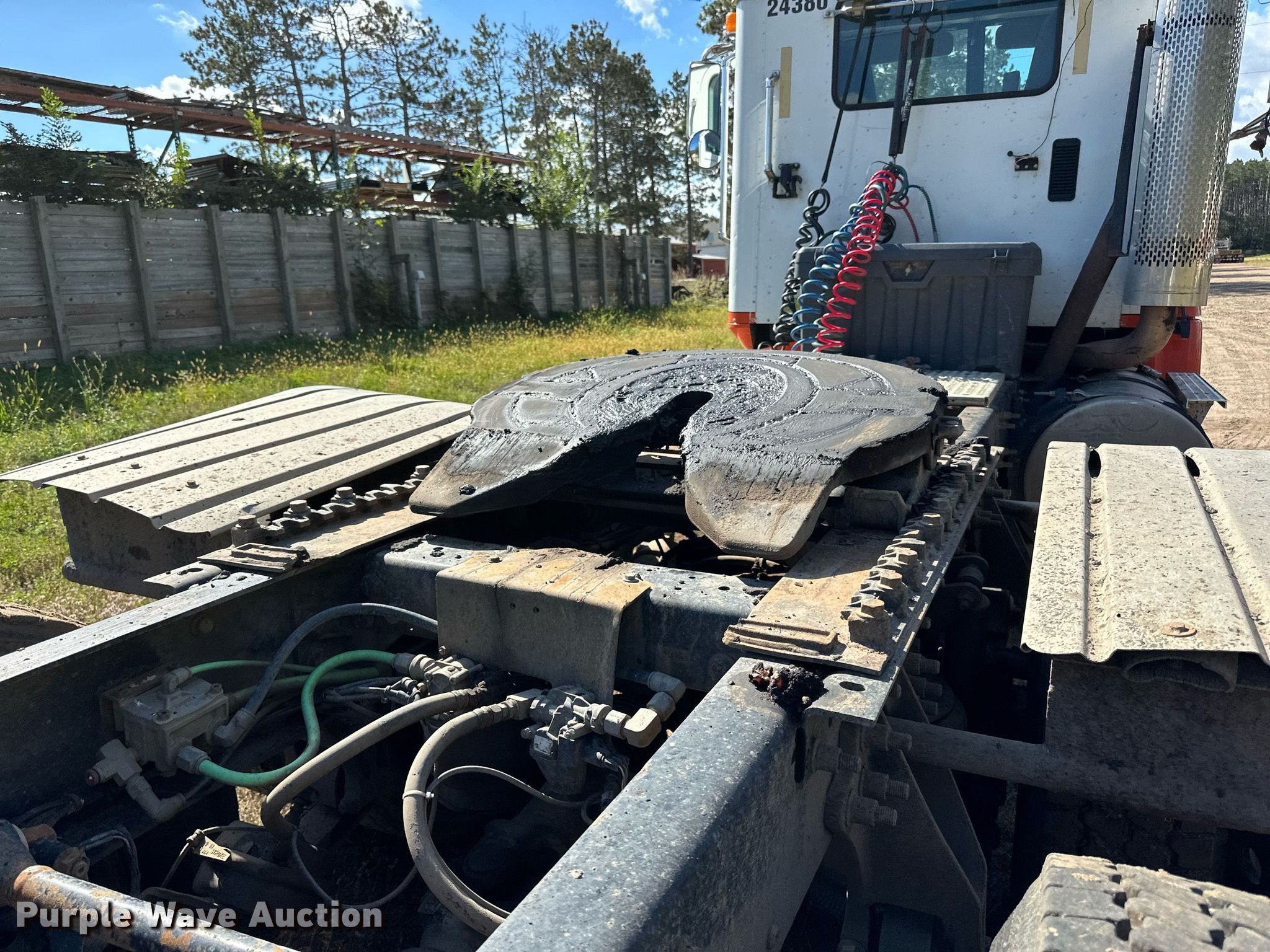 2007 International 9200i semi truck. Miles: 878,587 on odometer, Hours: 27,122 on meter, VIN: 2HSCEAPR67C453638. Engine Cummins, Displacement: 14.9L, Cylinders: 6, Fuel type: Diesel, Engine brake. Transmission Eaton Fuller, Manual, Speed: 10. Chassis Axles: Tandem, Differential lock: Inter-axle, Suspension: Air Dump valves, Brakes: Air, GVWR: 52,000 lbs FAWR: 12,000 lbs, RAWR: 20,000 lbs. Interior AC, Heat, Heated mirrors, Power windows, Cruise control. Features Deck plate: Aluminum, Fifth wheel type: Air operated, Sliding, Fuel tank: Single. Tires Size: 11R22.5. Notes Dash warning indicator: Low air, Contents not included. Minnesota title. Title distribution may be delayed up to 14 days from verification of funds. Knife River Co.. Sauk Rapids, MN 56379