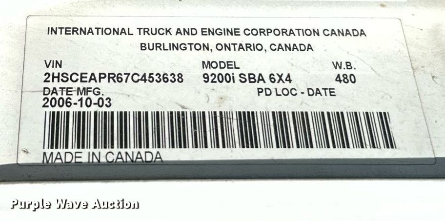 Purple Wave is selling a used Truck Tractor in Minnesota. This item is a 2007 International 9200i semi truck with the following: Miles: 878,587 on odometer, Hours: 27,122 on meter, VIN: 2HSCEAPR67C453638