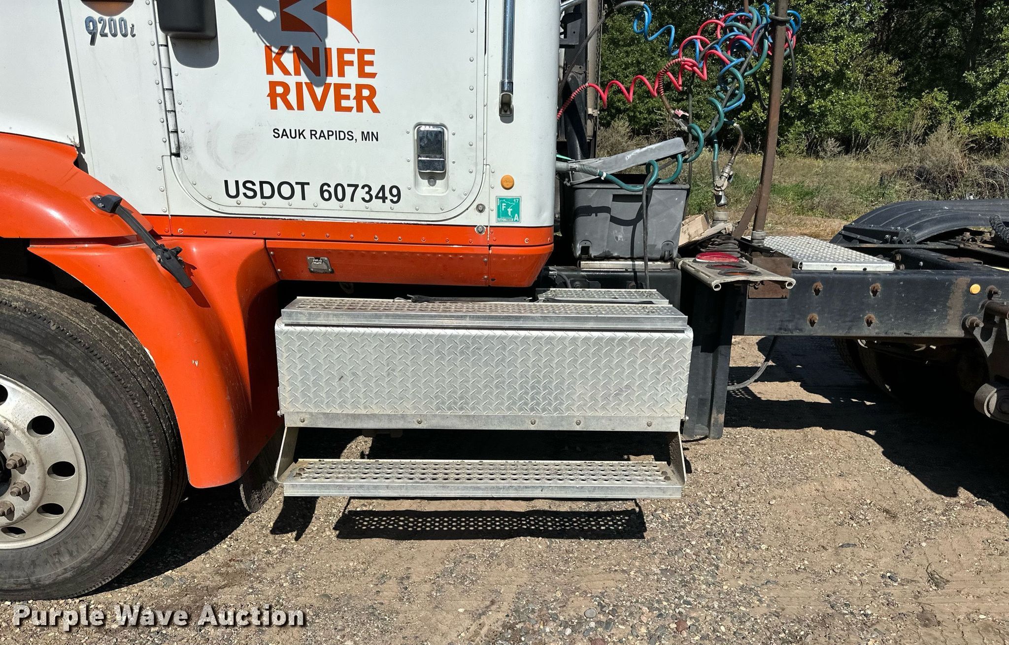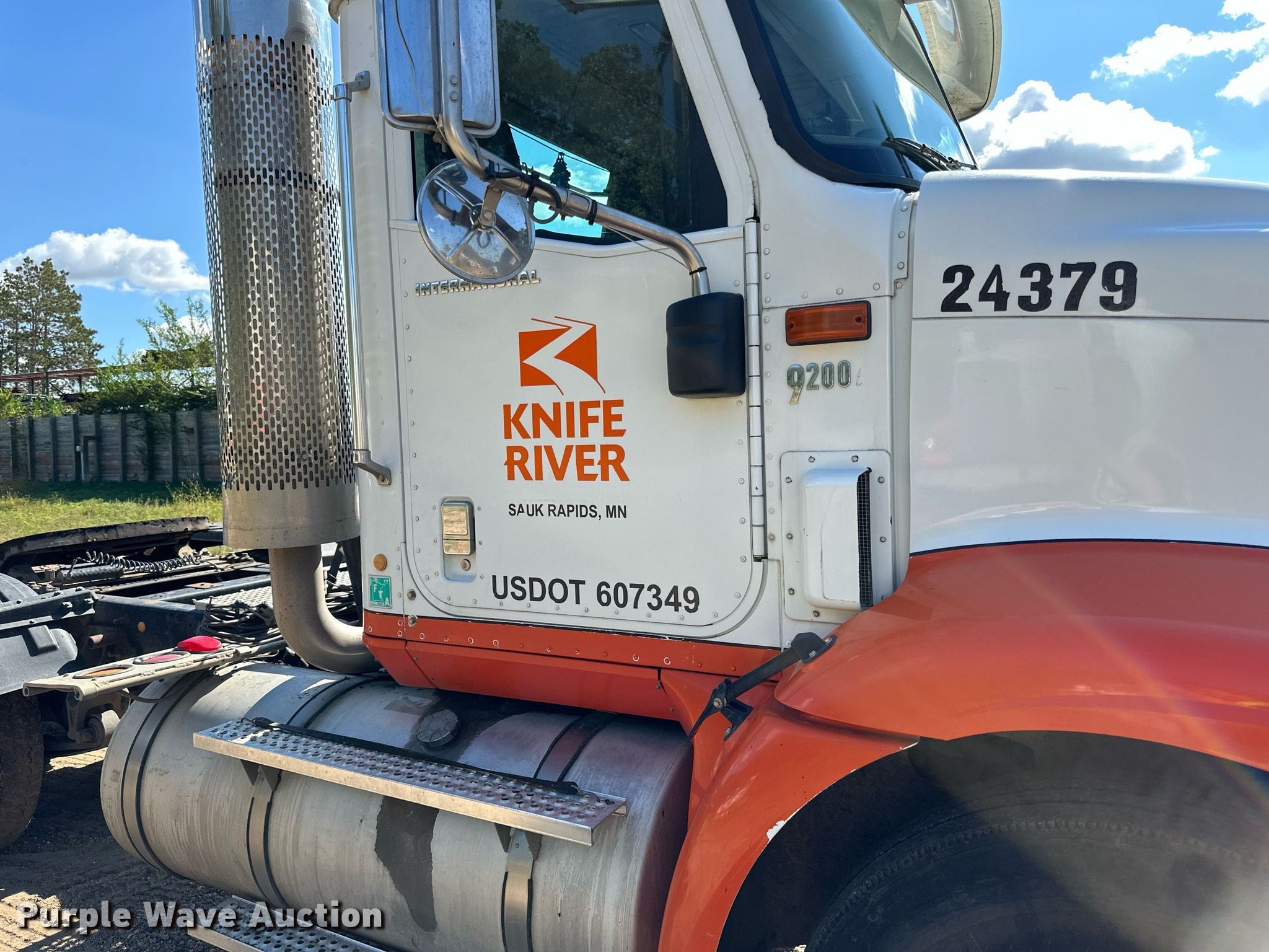 2007 International 9200i semi truck. Miles: 806,523 on odometer, Hours: 27,752 on meter, VIN: 2HSCEAPR47C453637. Engine Cummins ISX435XT, Displacement: 15.0L, Cylinders: 6, Fuel type: Diesel, HP: 435, Engine brake. Transmission Eaton Fuller, Manual, Speed: 10. Chassis Axles: Tandem, Differential lock: Inter-axle, Suspension: Air Dump valves, Brakes: Air, PTO, Wet kit, GVWR: 52,000 lbs FAWR: 12,000 lbs, RAWR: 20,000 lbs. Interior AC, Heat, Heated mirrors, Power passenger window, Cruise control. Features Deck plate: Aluminum, Fifth wheel type: Air operated, Sliding, Fuel tank: Single. Tires Size: 11R22.5. Notes Contents not included, Possible engine issues, low oil pressure. Minnesota title. Title distribution may be delayed up to 14 days from verification of funds. Knife River Co.. Sauk Rapids, MN 56379