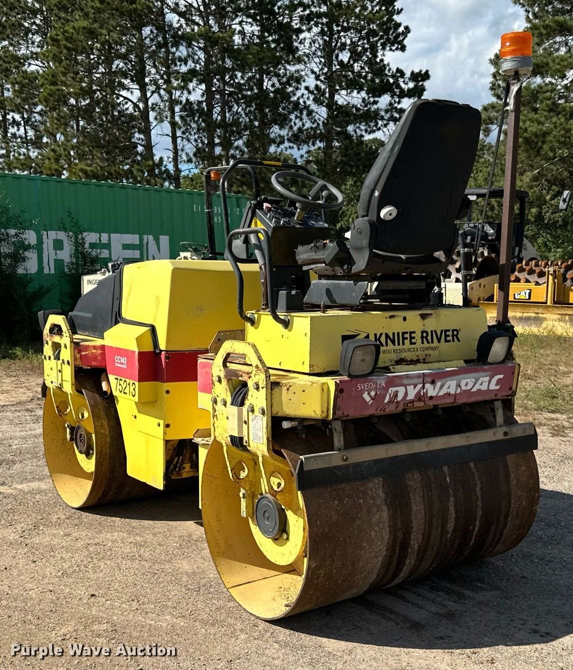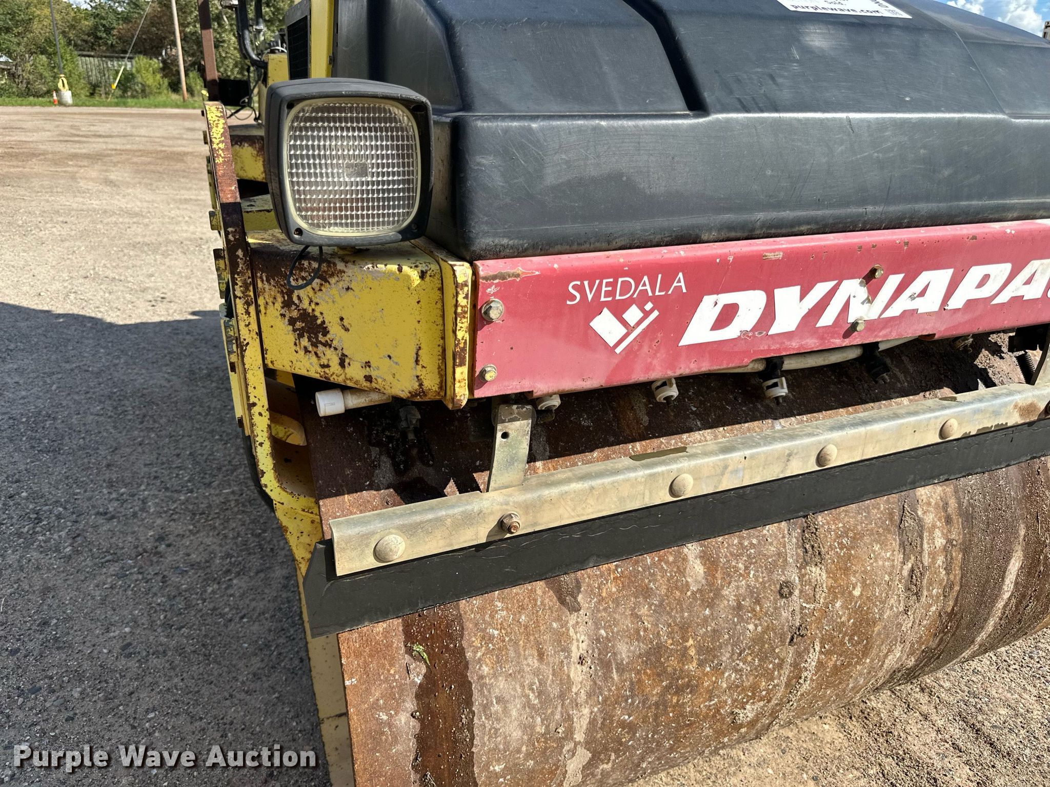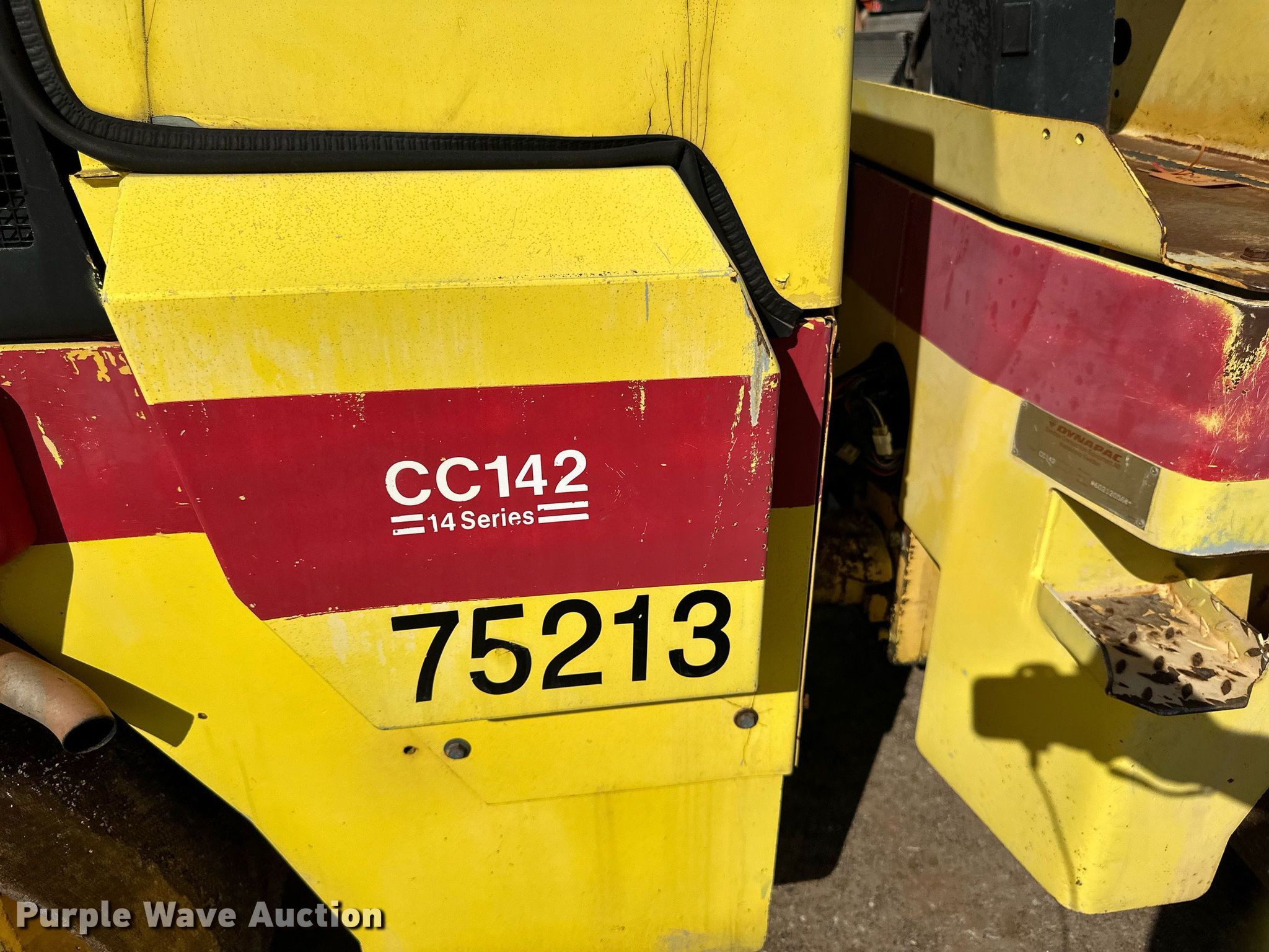 2000 Dynapac CC142 double drum vibratory roller. Hours: 55 on meter, Serial: 60212056. Engine Deutz F3L1011F, Cylinders: 3, Fuel type: Diesel, kW: 30. Transmission Hydrostatic. Features Drum: Smooth, Vibratory system: Single, Double, Front drum Width: 50", Diameter: 31", Rear drum Width: 50", Diameter: 31", Drum scrapers: Front, Rear, Water spray applicator: Front, Rear. Knife River Co.. Sauk Rapids, MN 56379