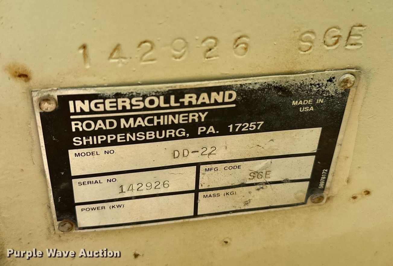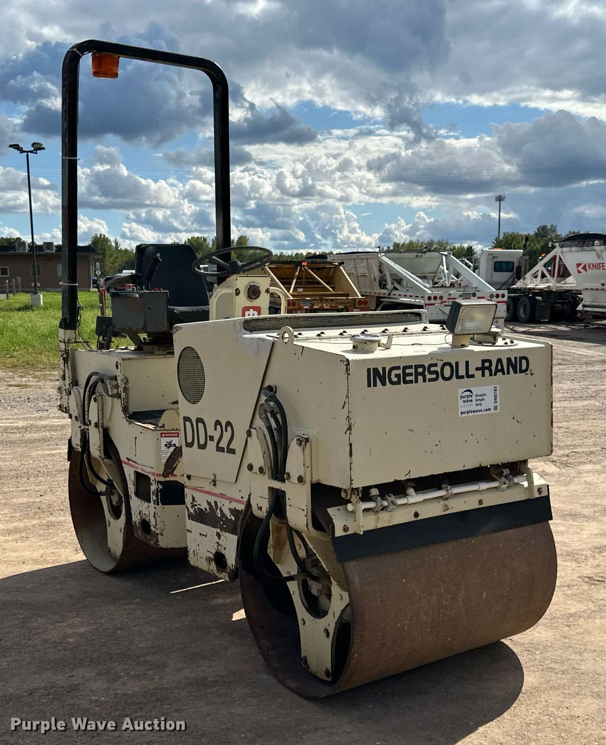 Purple Wave is selling a used Double Drum Roller Compactor in Minnesota. This item is a 1995 Ingersoll Rand DD22 double drum vibratory roller with the following: Hours: 451 on meter, Serial: 142926