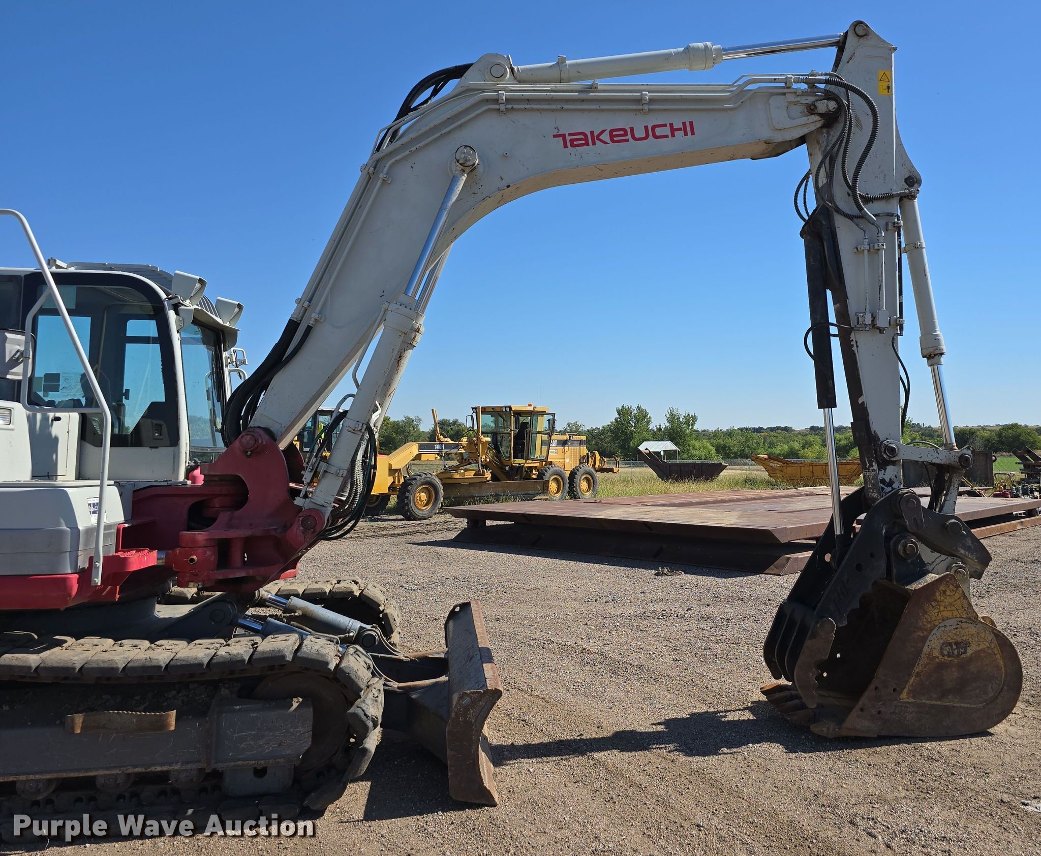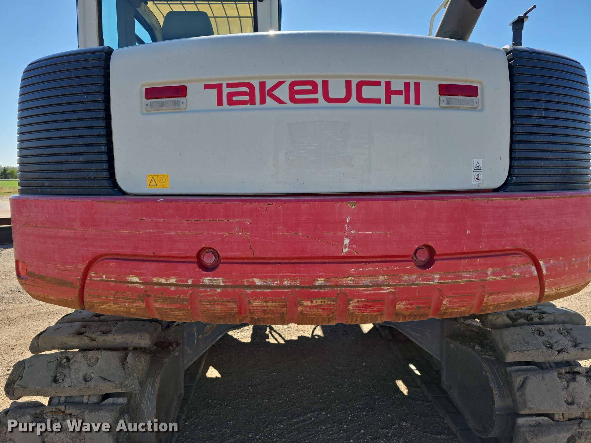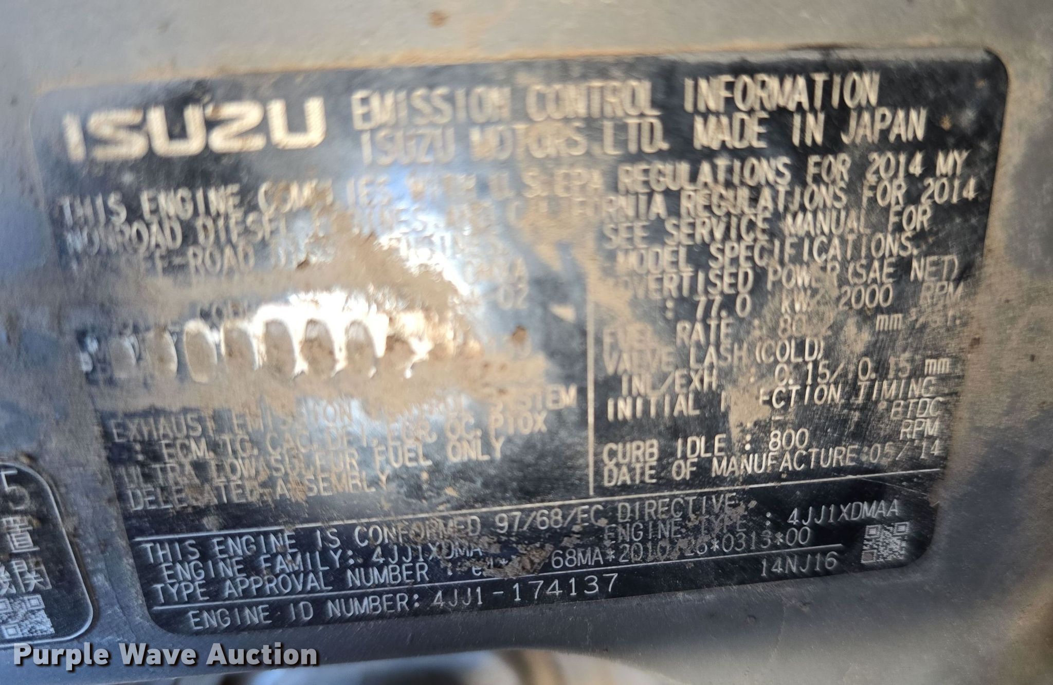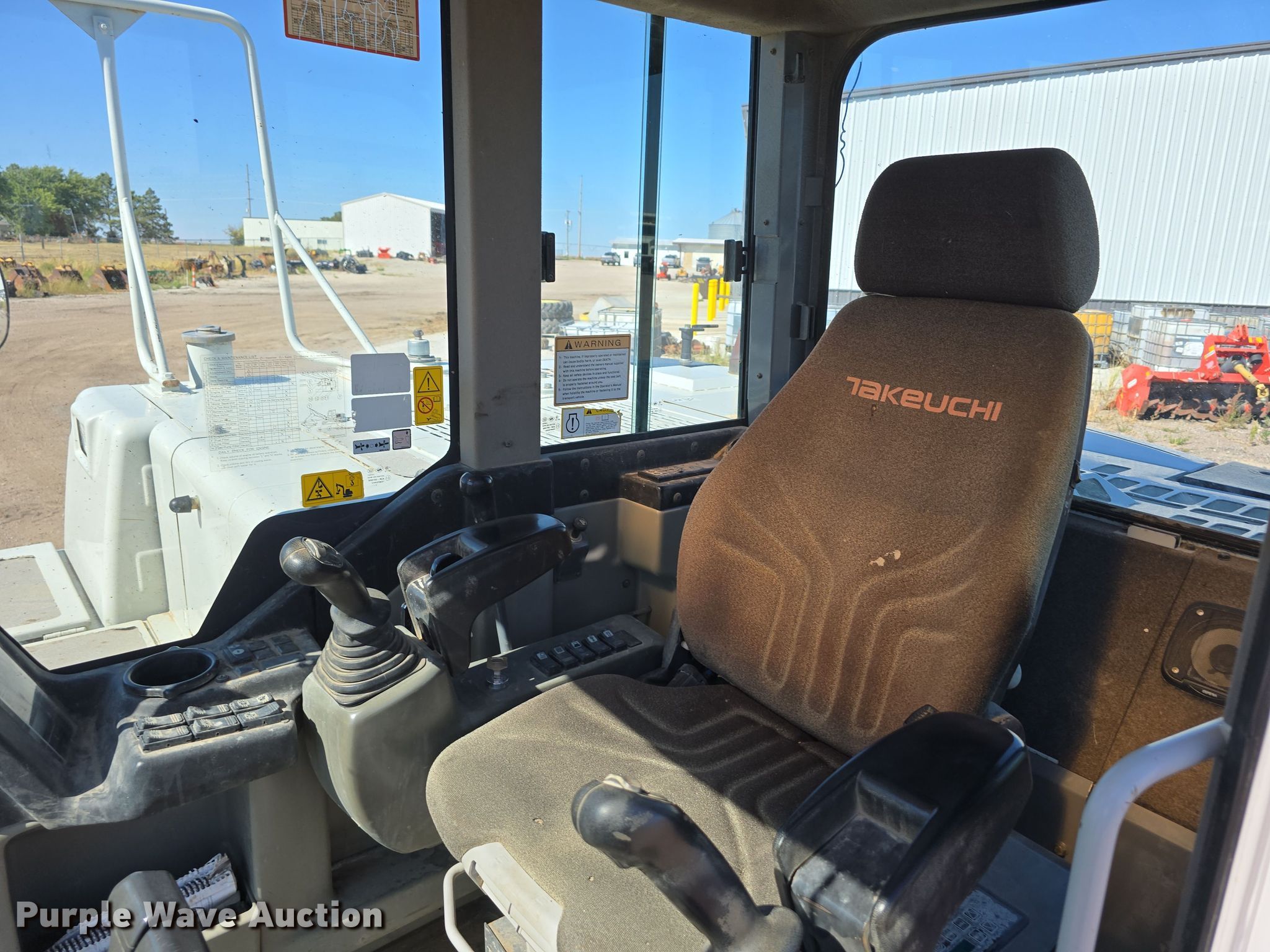 2015 Takeuchi TB1140 Series 2 mini excavator. Hours: 3,809 on meter, Serial: 514400278. Engine Isuzu, Serial: 4JJ1-174137, Cylinders: 4, Fuel type: Diesel, kW: 71.8. Transmission Hydrostatic, Two speed travel. Operators station Enclosed cab, AC, Heat. Features Auxiliary hydraulics Two-way, Counter weights, Removable, Backfill blade Width: 102", Boom Swing, Stick Stick length: 102", Quick coupler: Hydraulic Strickland 7L13GA, Thumb: Hydraulic LAG, Bucket Width: 35", Cutting edge: Weld-on, Teeth: 5. Tracks Width: 20", Steel, Track pads: Rubber. Van Kirk Bros. Contracting. Sutton, NE 68979