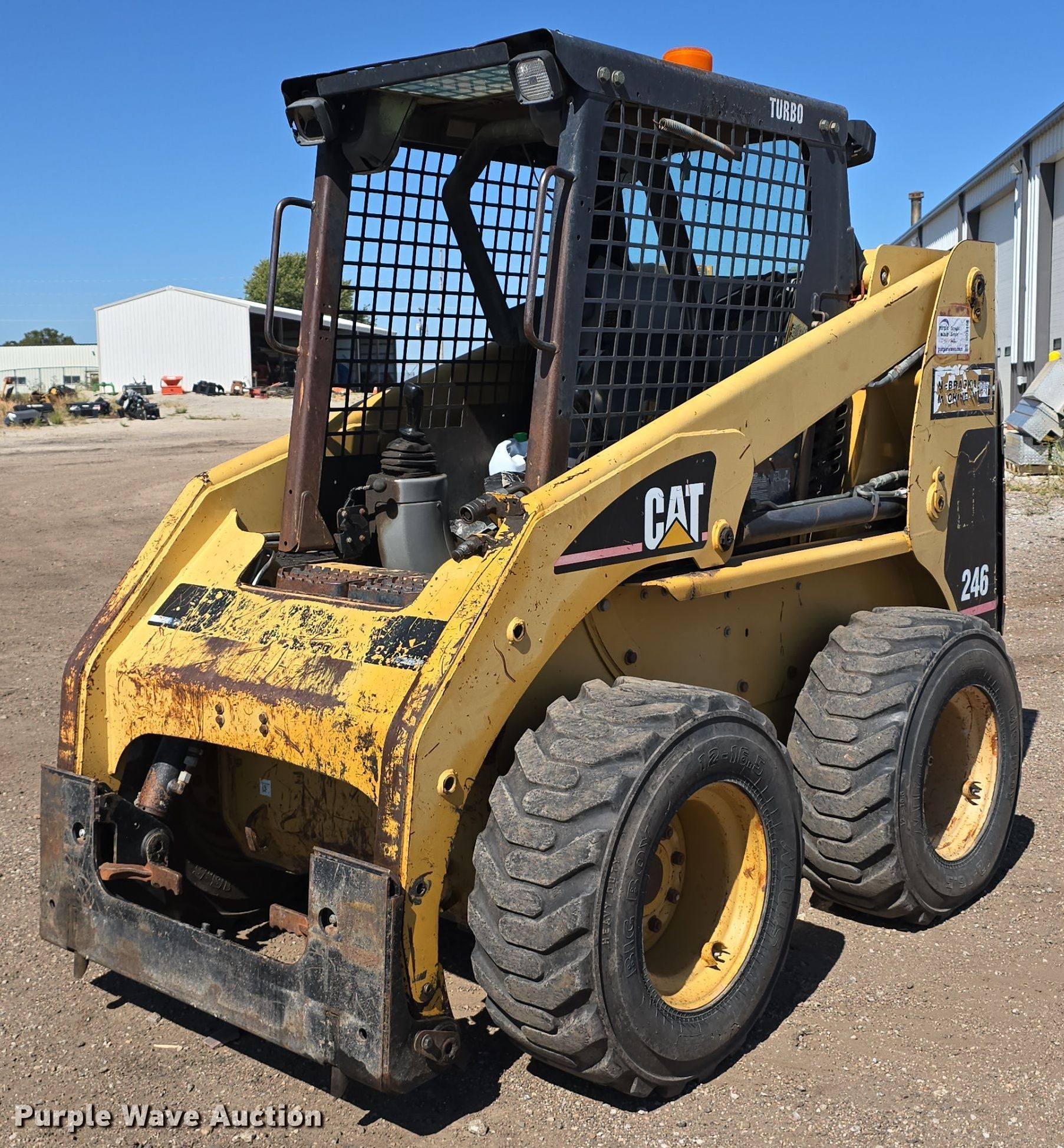 Purple Wave is selling a used Skid Steer Loader in Nebraska. This item is a 2001 Caterpillar 246 skid steer loader with the following: Hours: 7,400 on meter, Serial: CAT00246E5SZ04799
