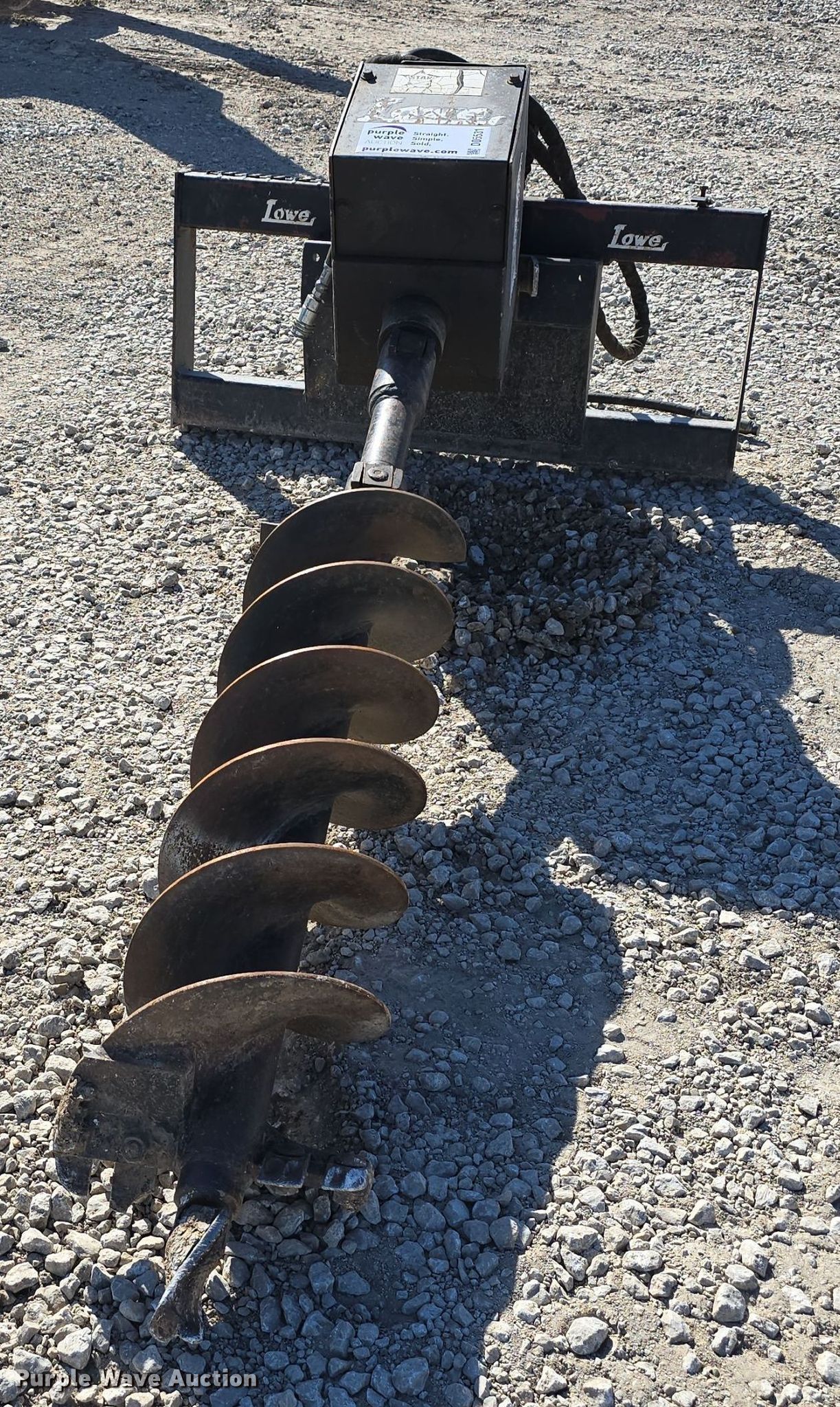 Purple Wave is selling a used Skid Steer Attach. in Iowa. This item is a Lowe Manufacturing Company 1650E skid steer auger with the following: Serial: 7134317, Length: 64", Diameter: 12"