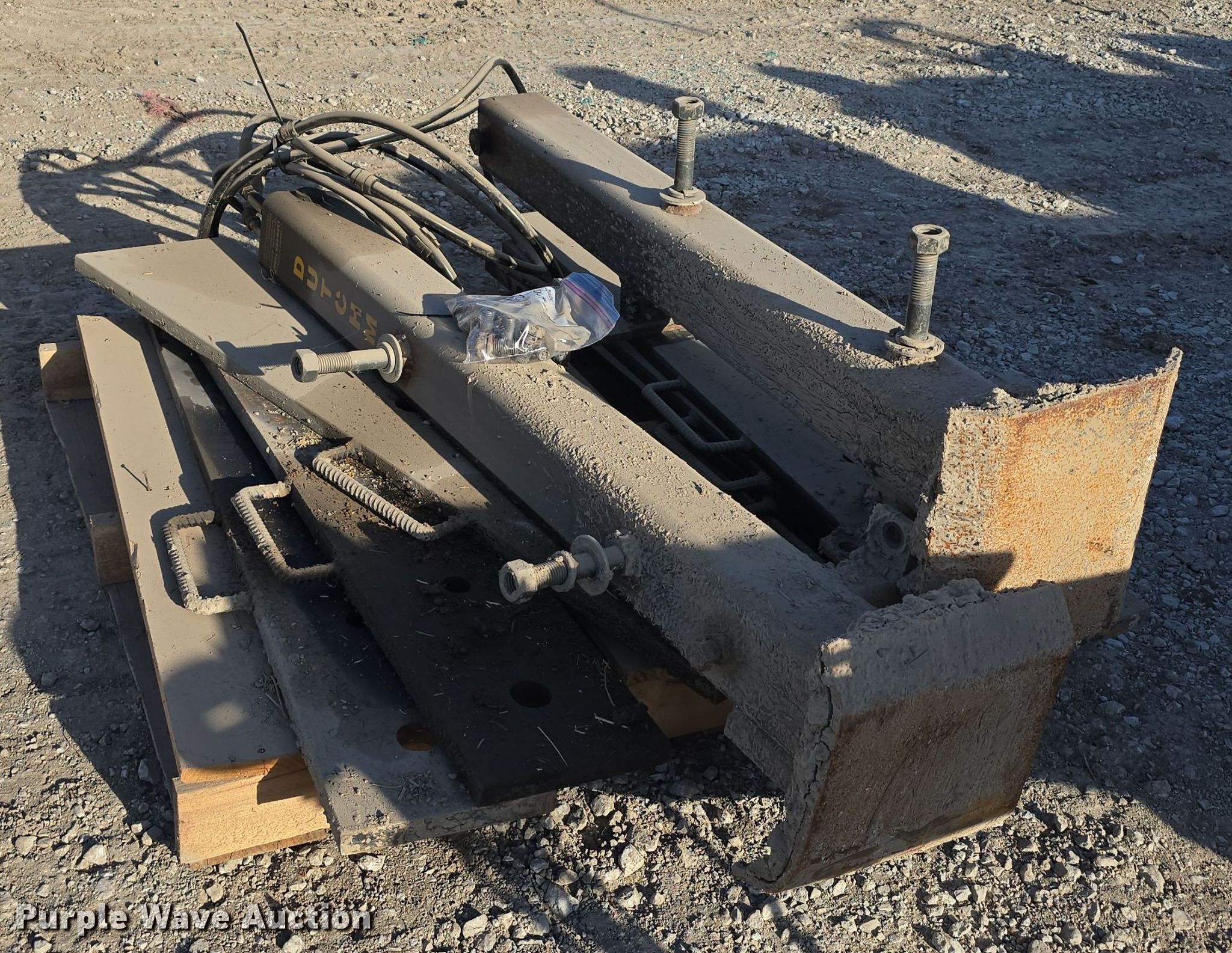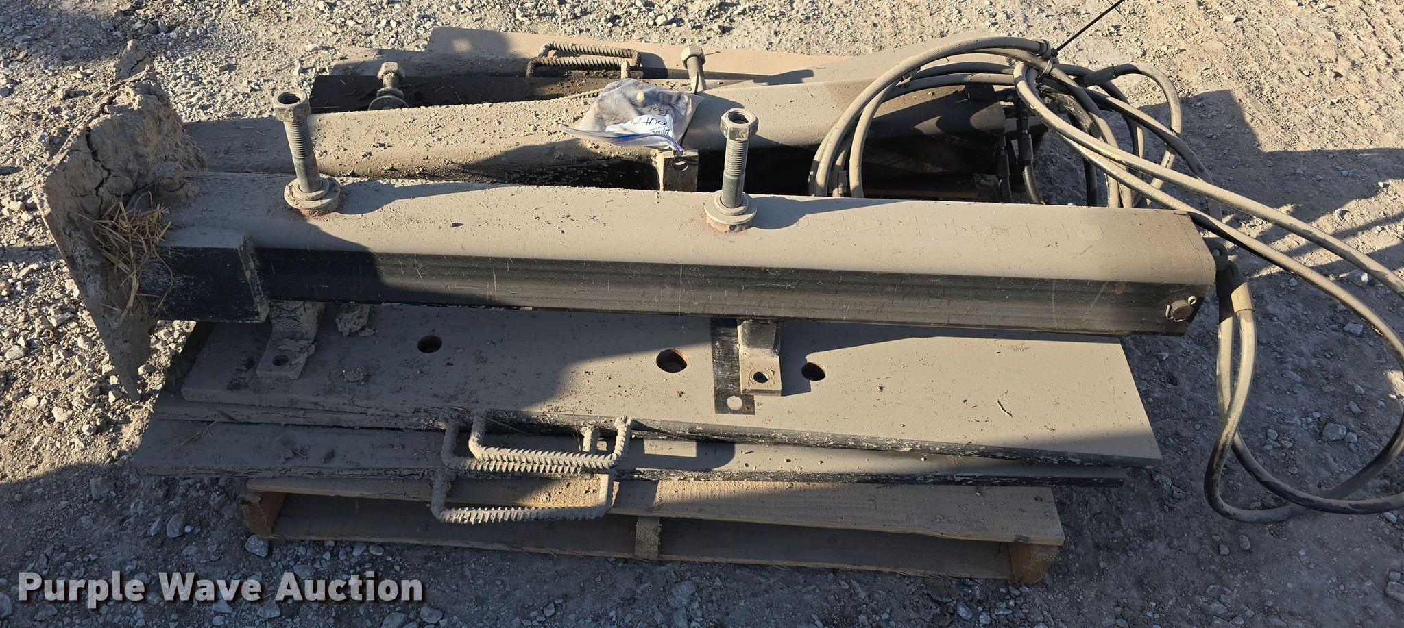 Dutchmaster Nurseries 480 1 skid steer tree spade. Serial: 1931, Hydraulic control valves: 7. Caliber Concrete. Adair, IA 50002