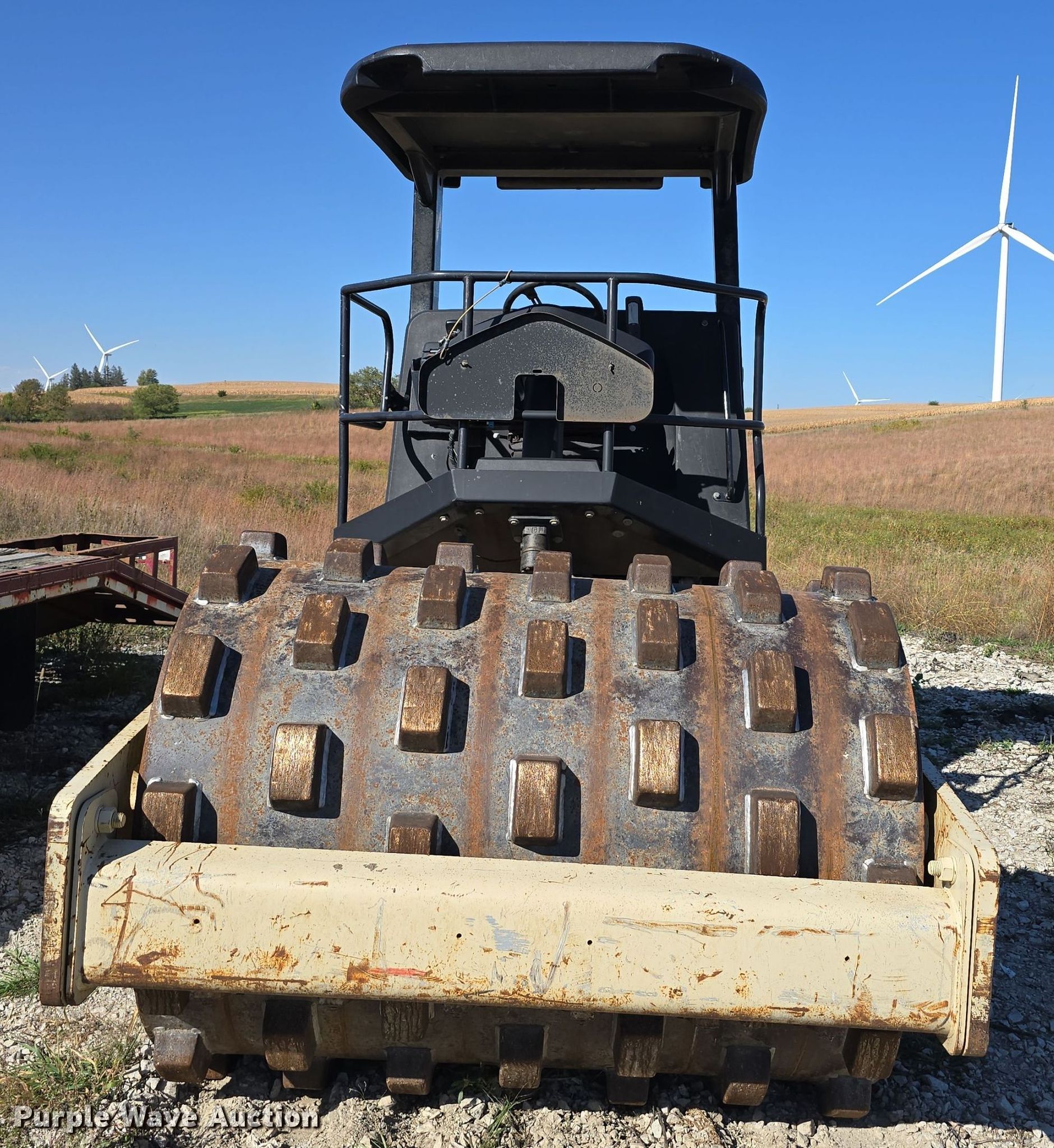 2006 Ingersoll Rand SD77F Series TF single drum vibratory roller. Hours: 1,385 on meter, Serial: 188388. Engine Cummins, Cylinders: 4, Fuel type: Diesel. Transmission Hydrostatic. Features Drum: Padfoot, Vibratory system: Single, Front drum Width: 66", Diameter: 48", Drum scrapers: Front. Tires Size: 14.9-24. Notes Non-operational unit. Caliber Concrete. Adair, IA 50002