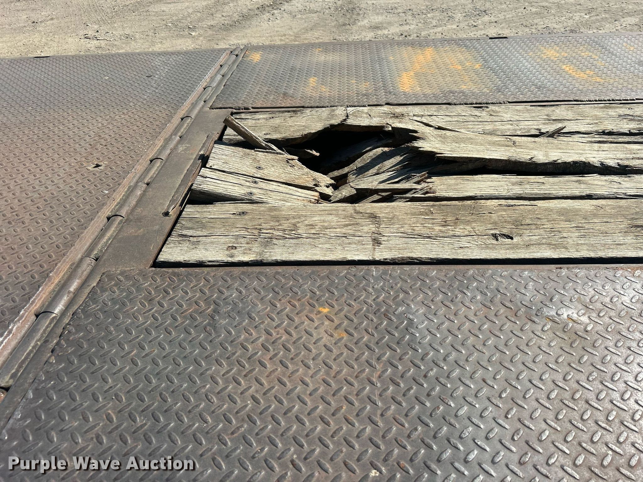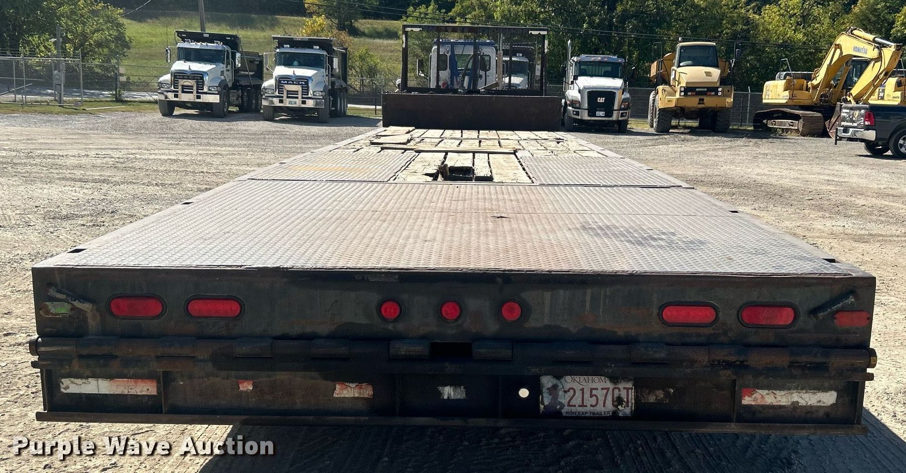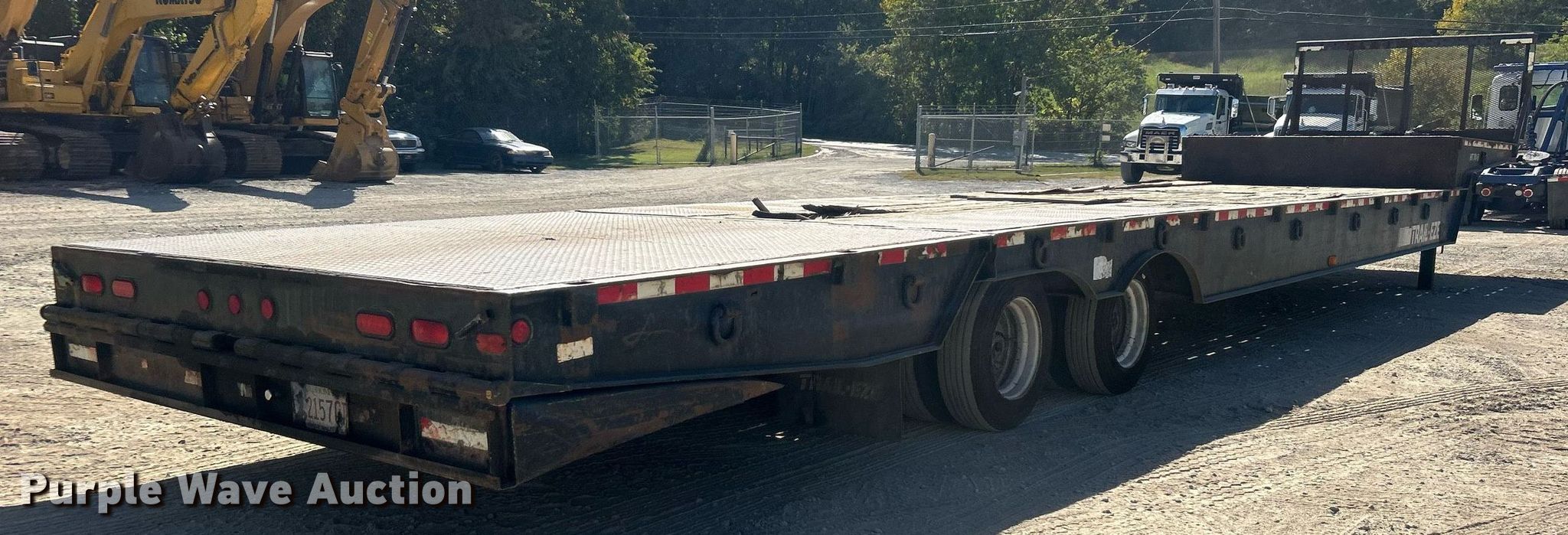 2001 Trail-Eze DHT7048 drop deck hydraulic tail equipment trailer. VIN: 1DA72C7981C015263. Dimensions Overall: 48' L x 102" W, Deck: 28' L x 97" W, Top deck length: 11' 6", Hydraulic tail length: 8', Ramps: Hydraulic Length: 44". Features Deck type: Steel, Wood, Winch Braden. Chassis Landing gear: Dual, Suspension: Air, Brakes: Air, Axles: Tandem, GVWR: 84,880 lbs, GAWR: 18,160 lbs. Tires Steel wheels, Size: 215/75R17.5. Oklahoma title. Title has a lien that will be released following the close of the auction. Title distribution may be delayed up to 30 days from verification of funds. Triangle Construction & Utility. Tulsa, OK 74107